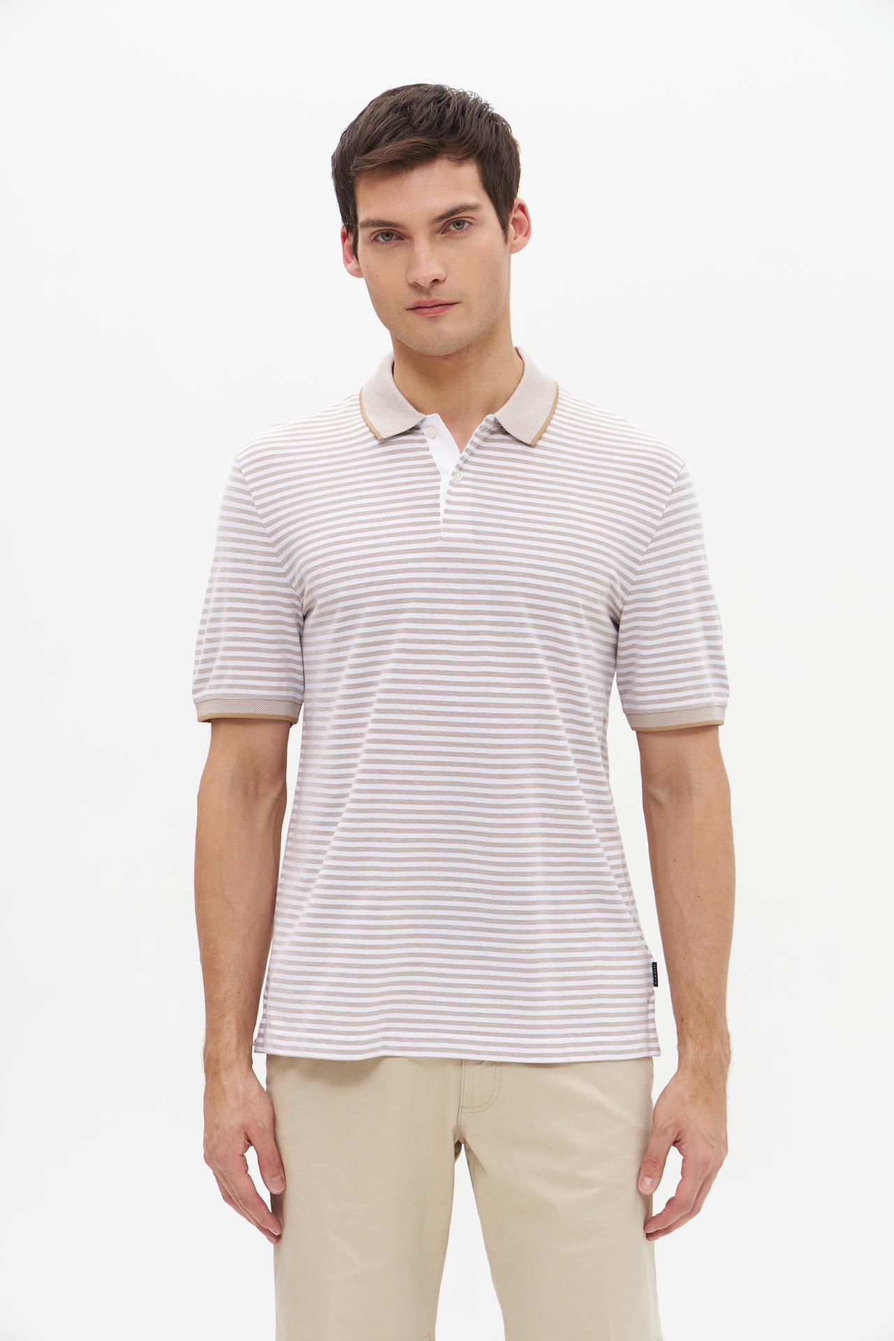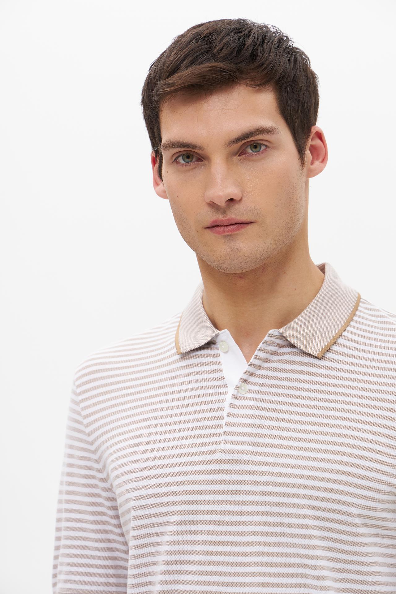 Поло Bugatti бежевое в полоску с контрастным кантом