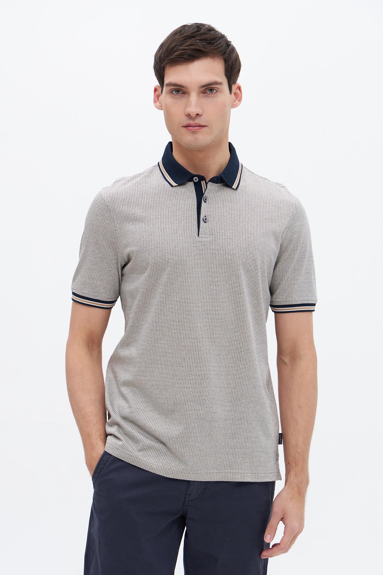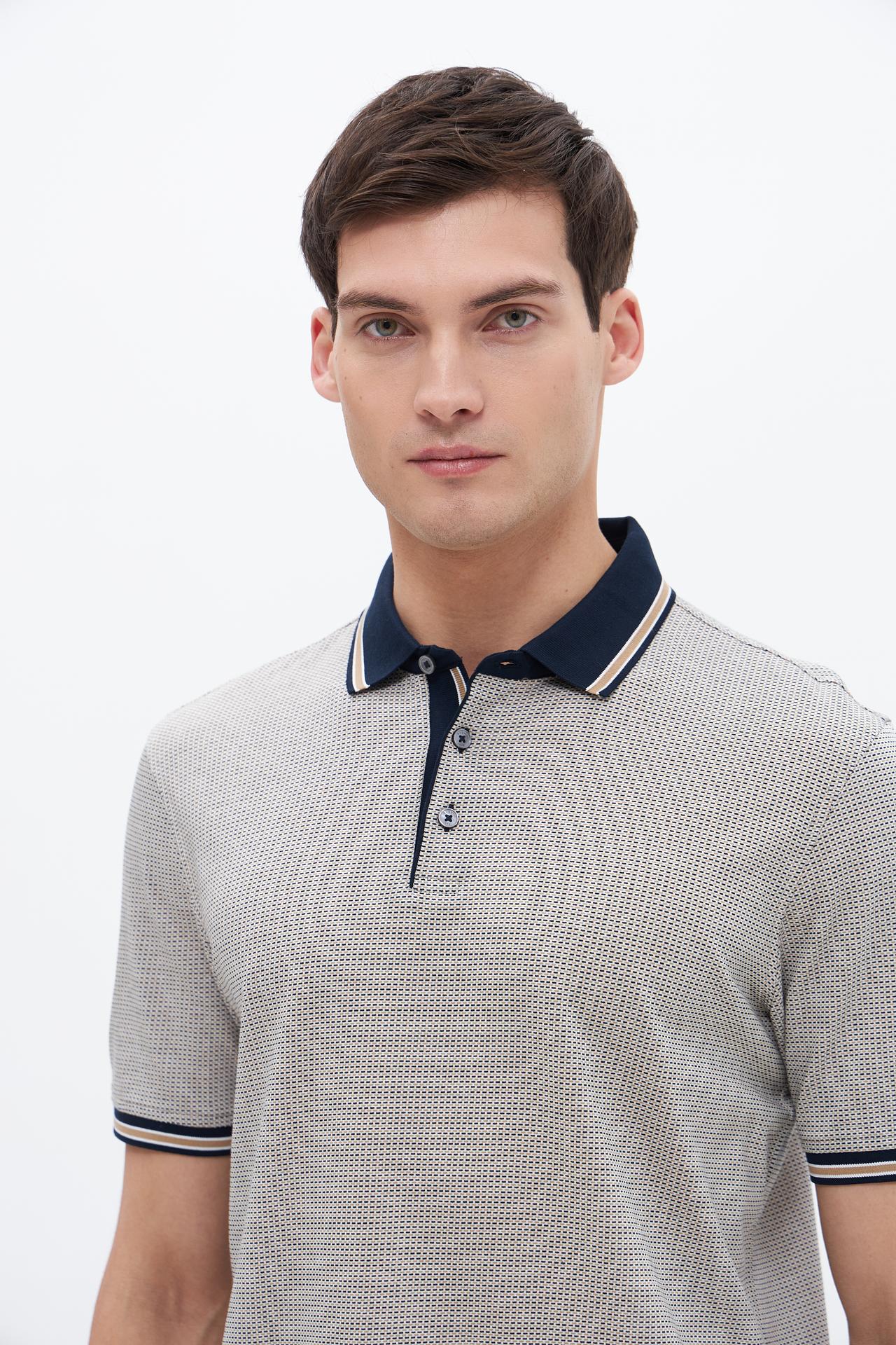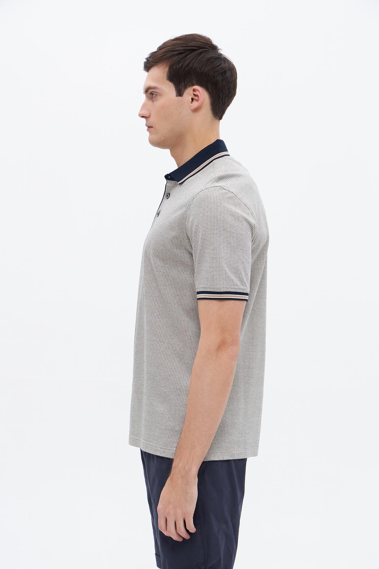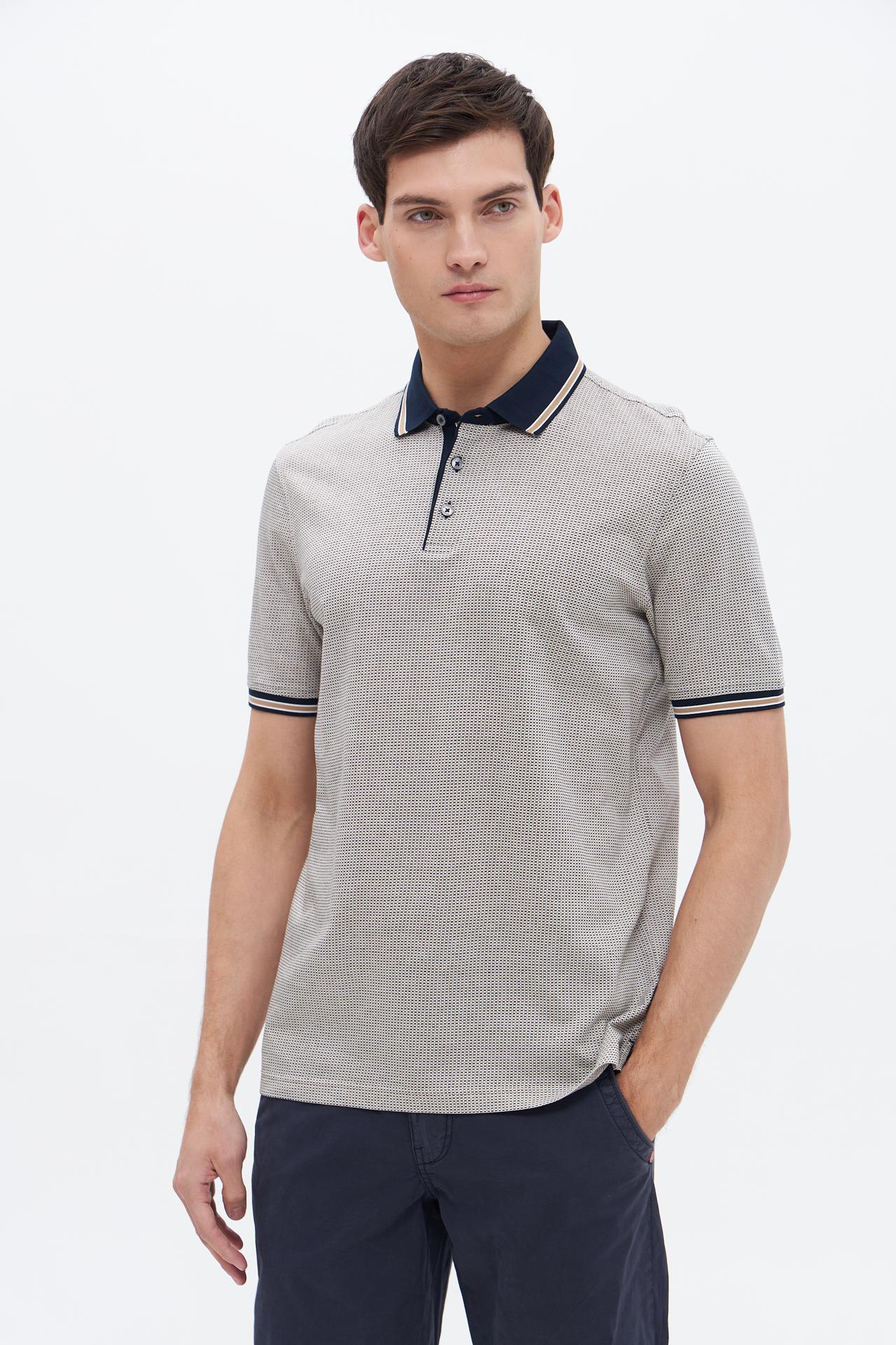 - Дизайн: Поло с коротким рукавом и отложным воротником. Оригинальный принт в мелкую клетку и контрастные детали создают современный и стильный вид.