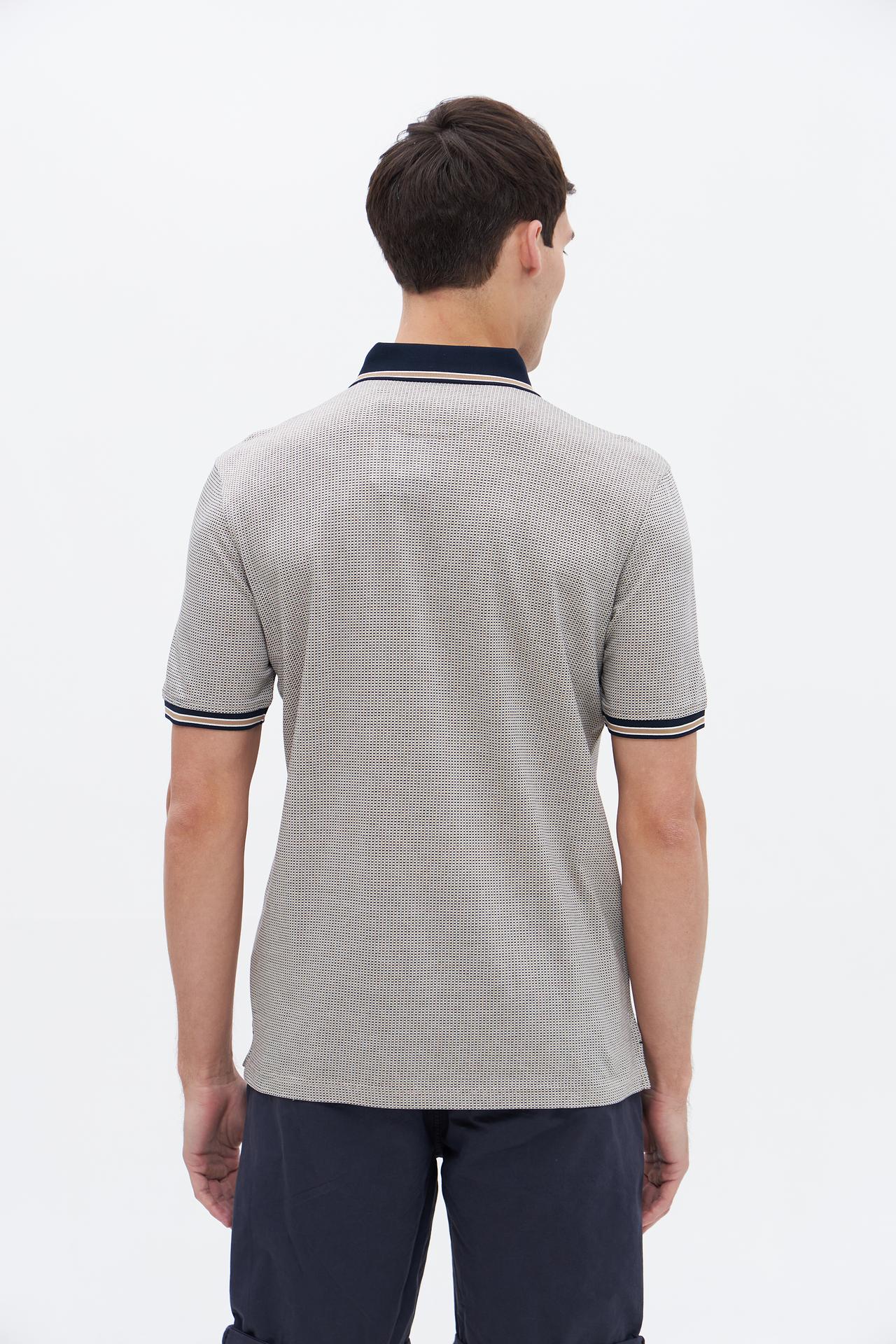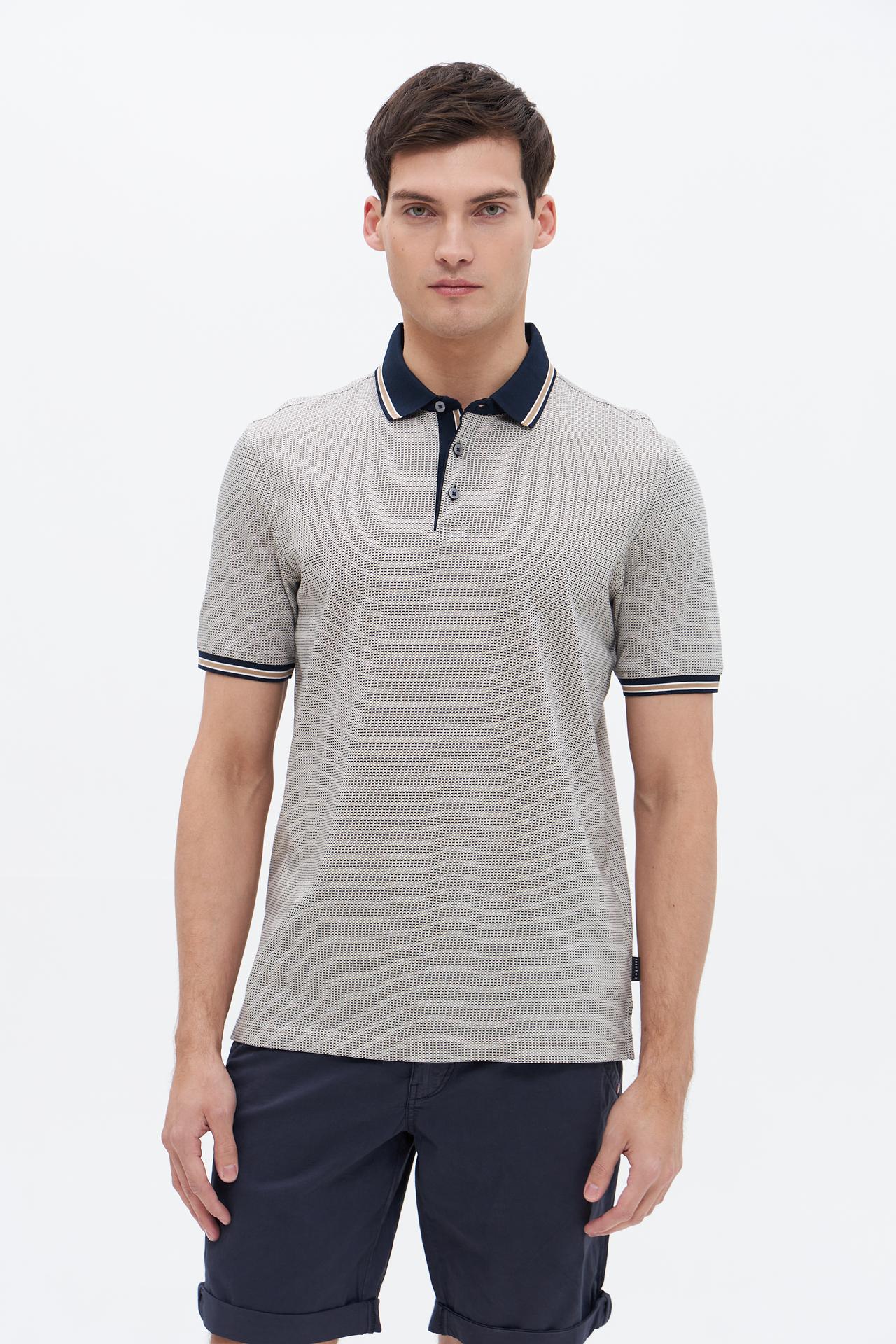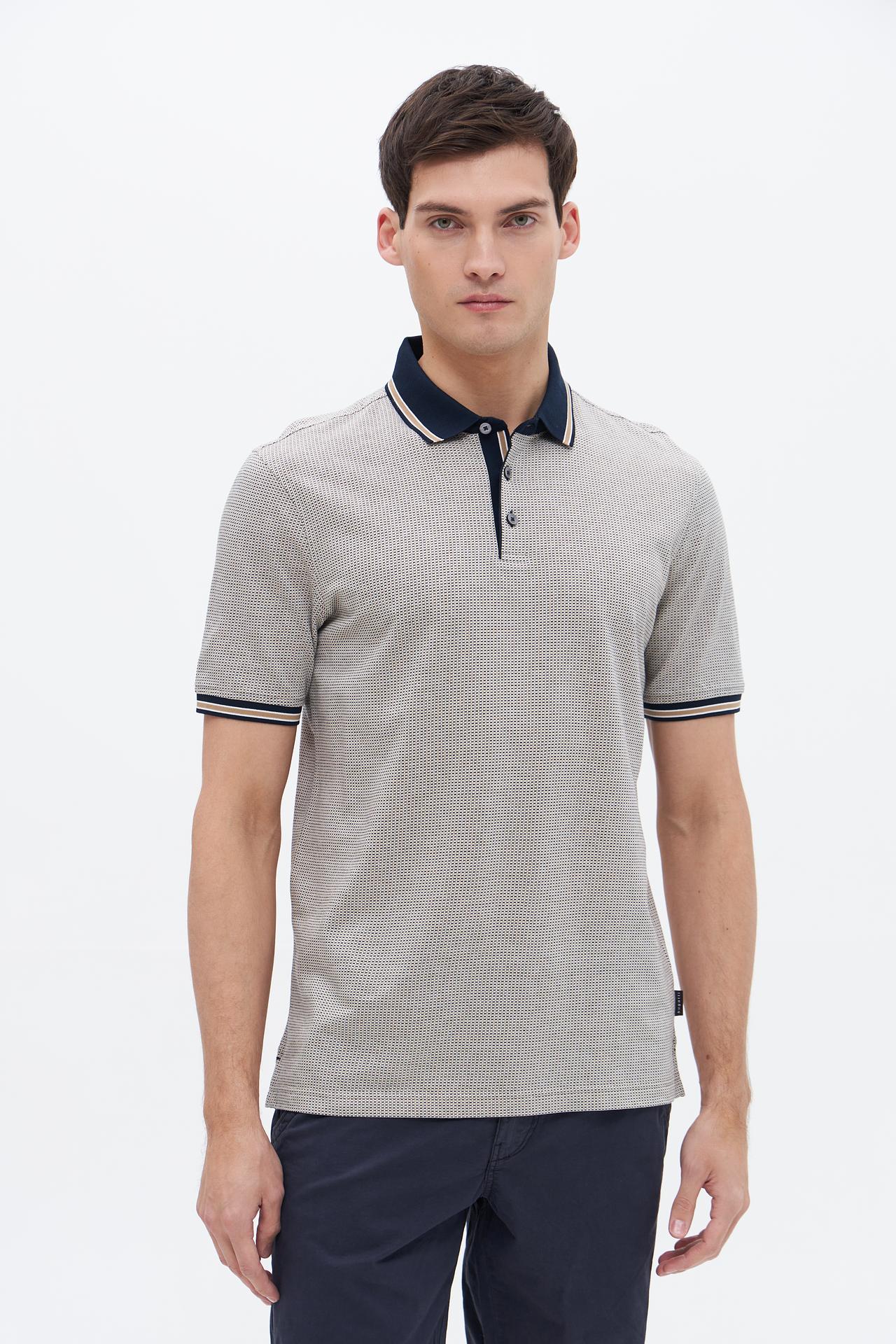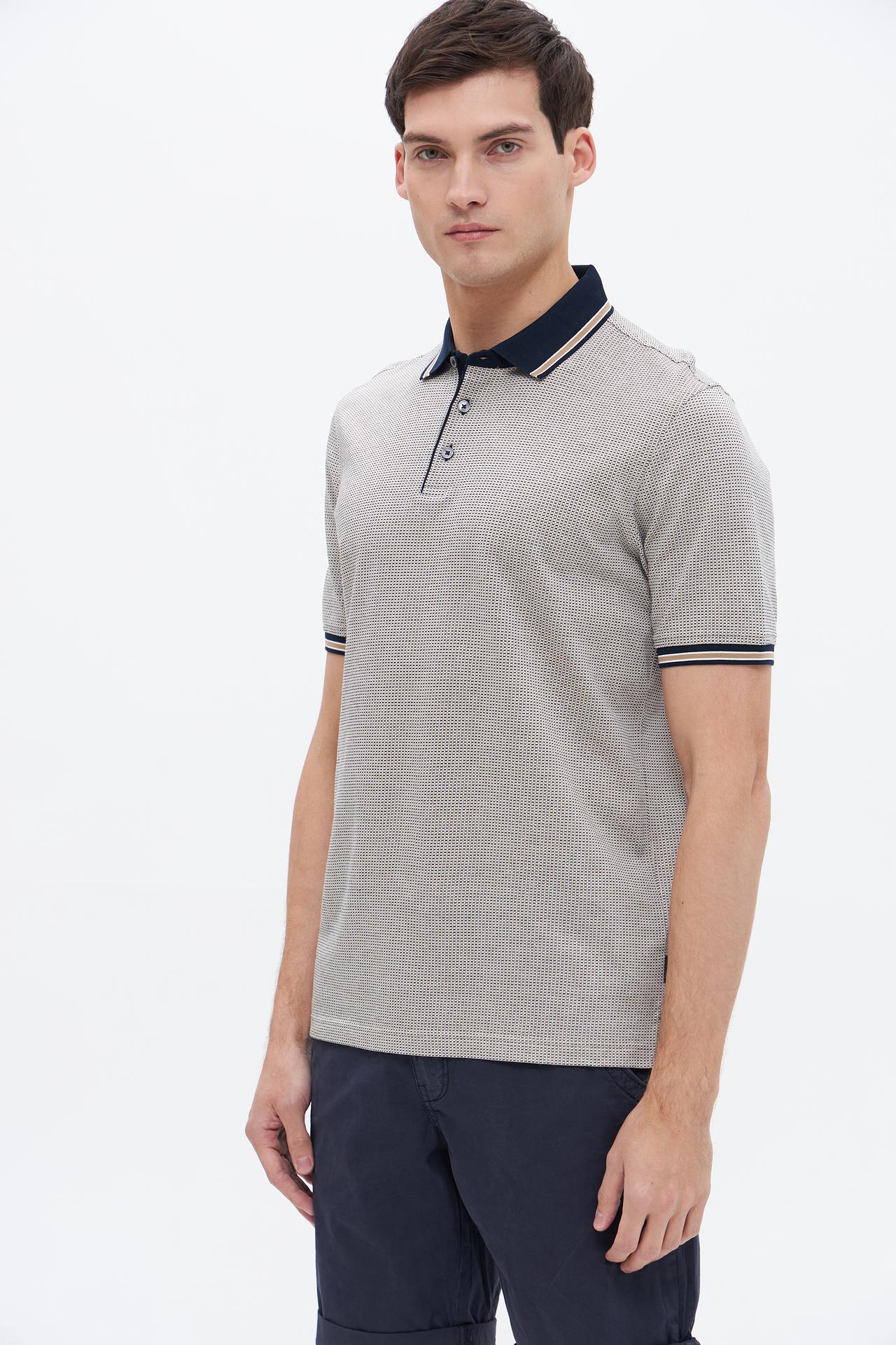 - Дизайн: Поло с коротким рукавом и отложным воротником. Оригинальный принт в мелкую клетку и контрастные детали создают современный и стильный вид.