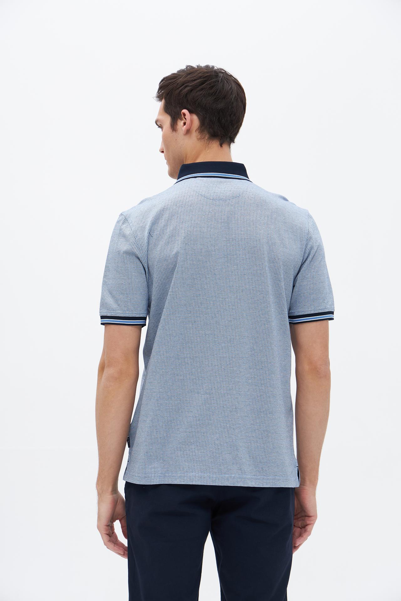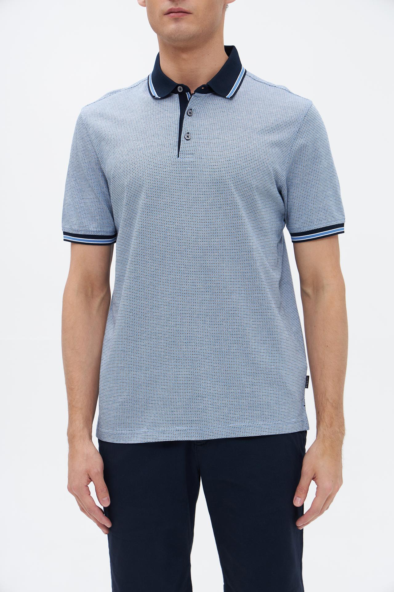 Поло Bugatti серо-голубое с текстурным рисунком