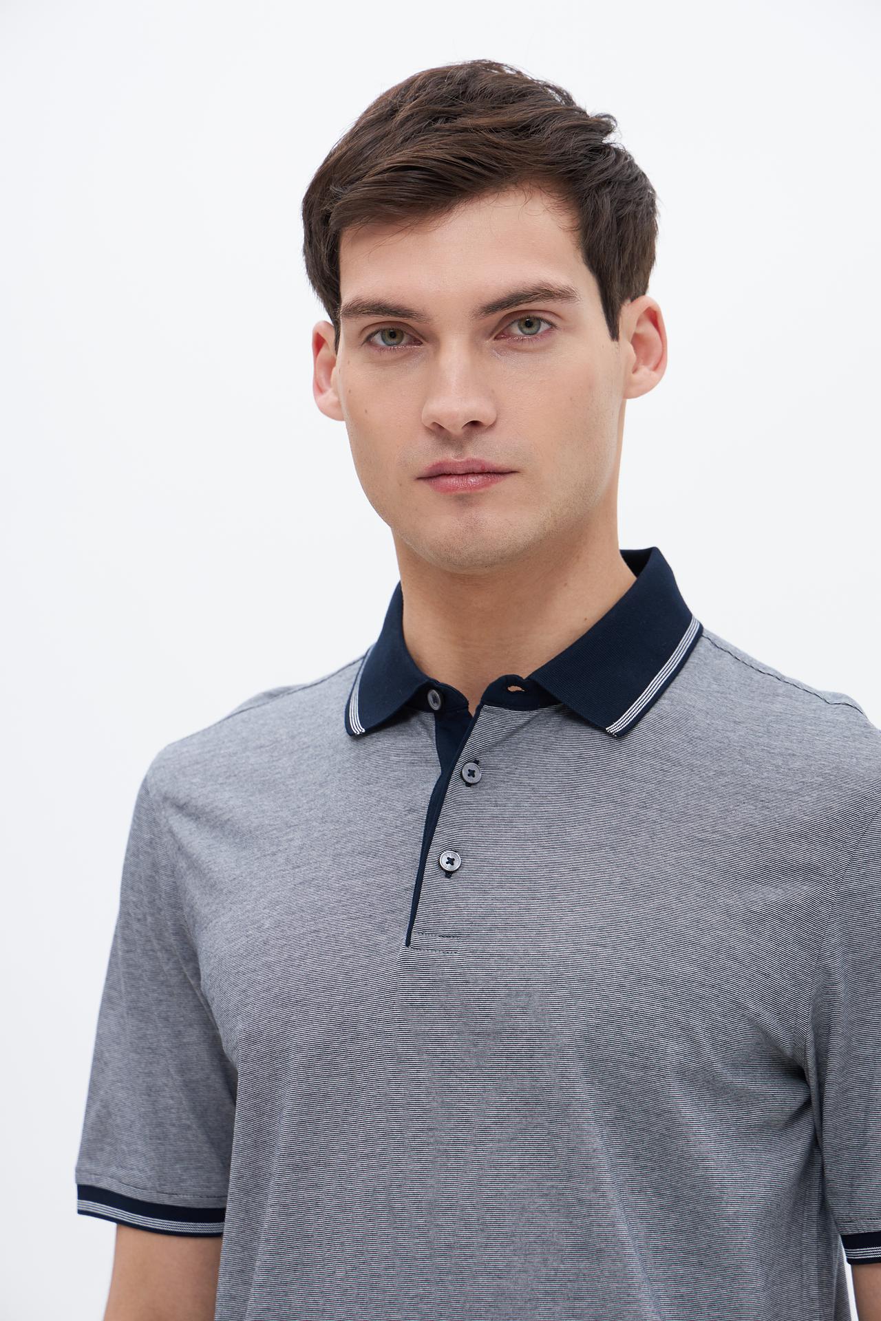 - Дизайн: Классический крой поло с отложным воротником и планкой на пуговицах. Контрастная отделка воротника и манжет добавляет элегантности.