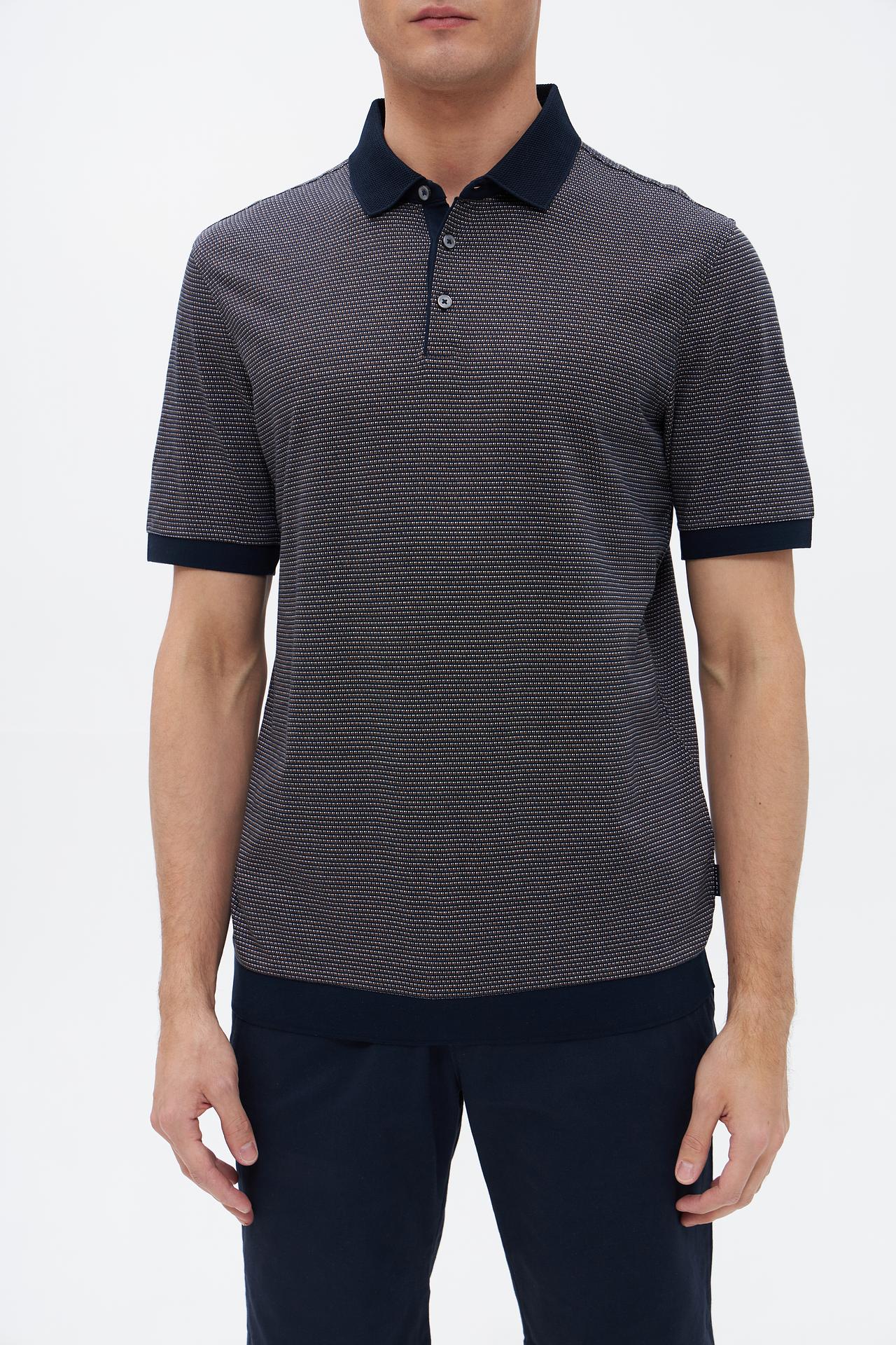 Стильное поло от Bugatti — идеальный выбор для современного мужчины. Модель выполнена из 100% хлопка, что обеспечивает максимальный комфорт и воздухопроницаемость в течение всего дня. Оригинальный мелкий принт в серо-синих тонах добавляет изделию изысканности и делает его универсальным элементом гардероба.