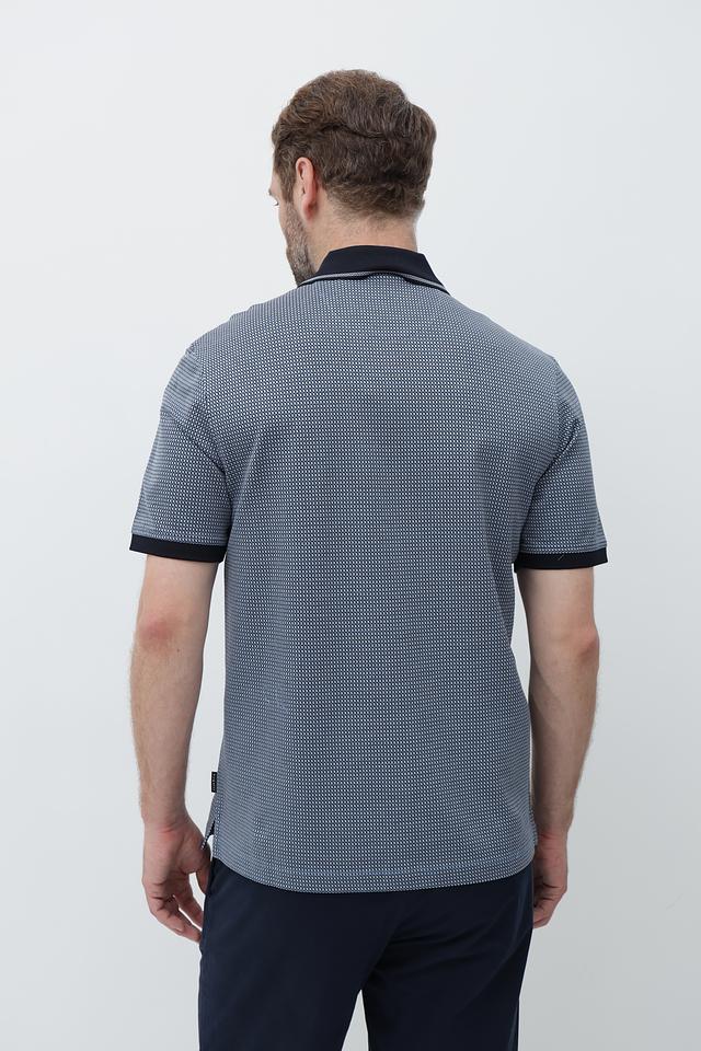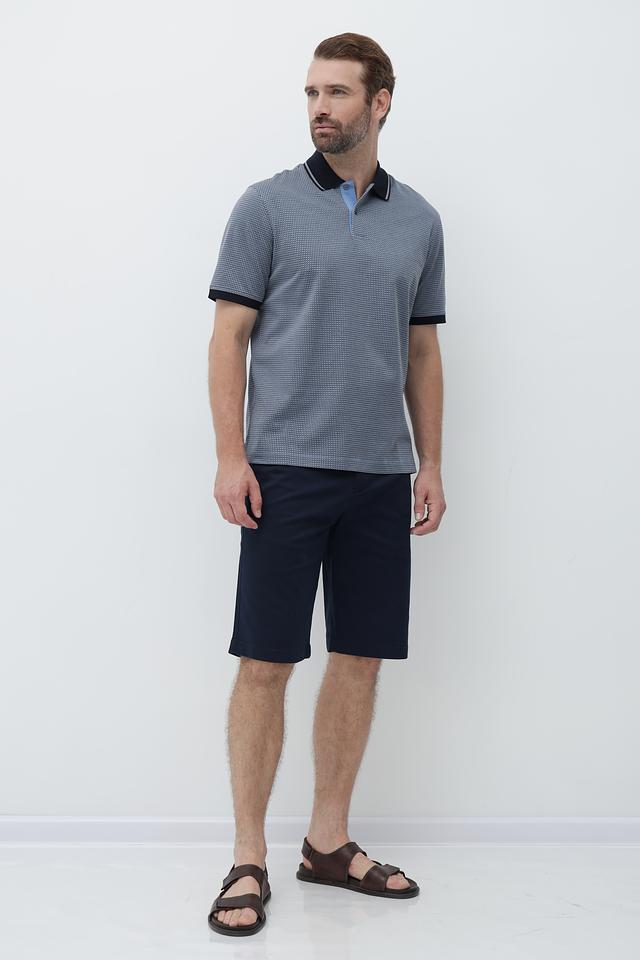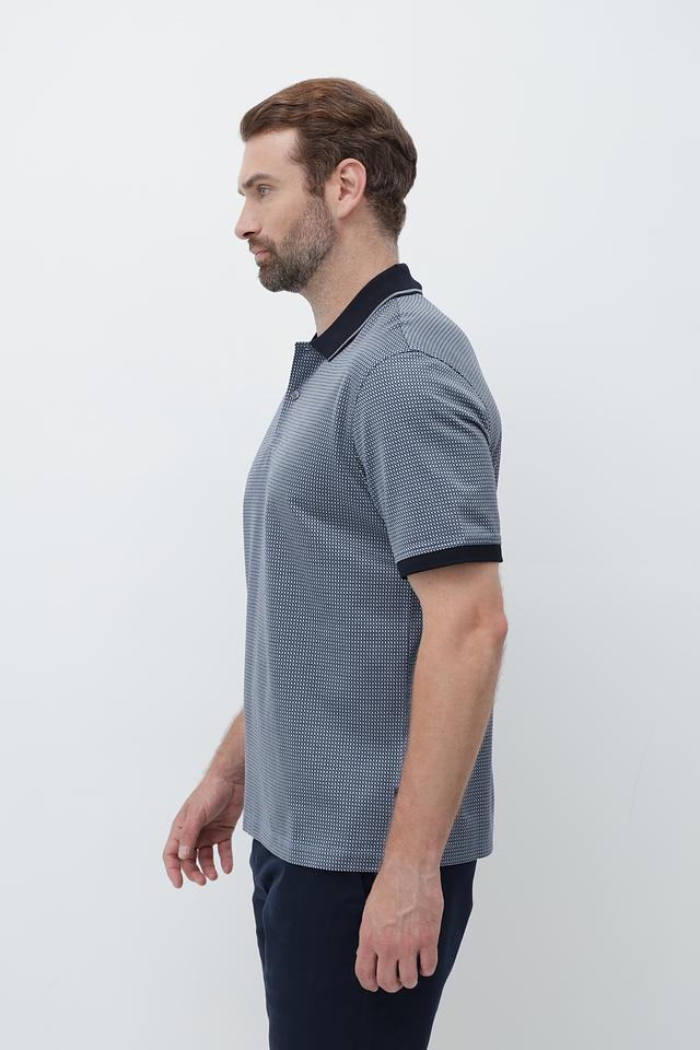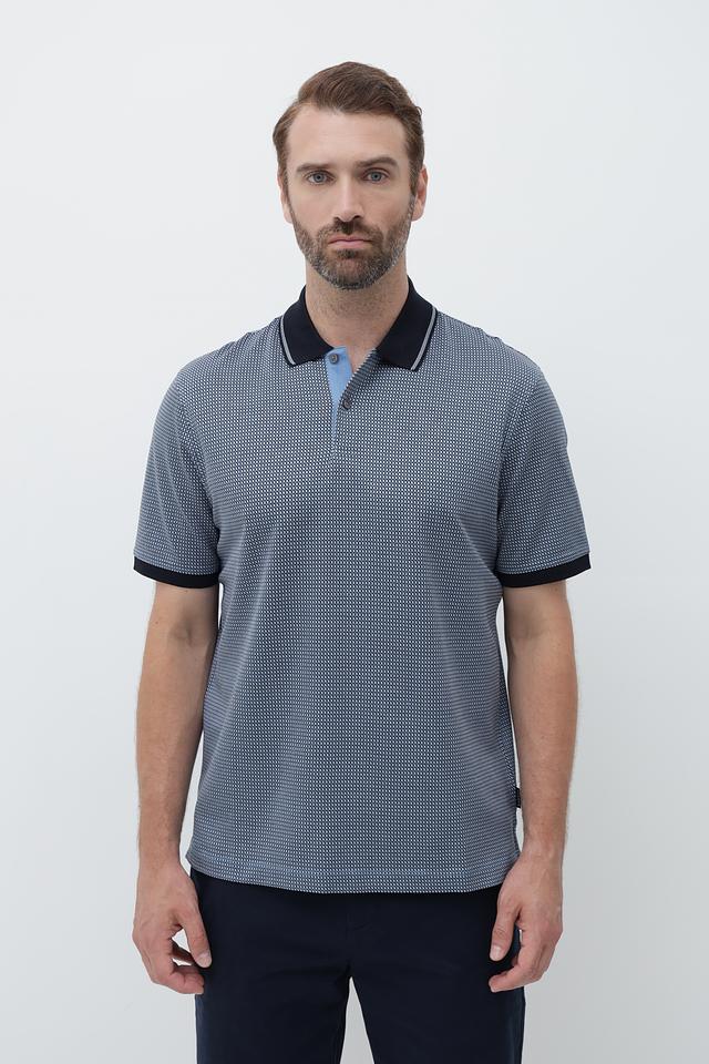 Мужское поло Bugatti синего цвета с геометрическим принтом. Изготовлено из 100% хлопка, имеет короткий рукав и классический крой. Отличный выбор для создания стильного и комфортного образа. Состав: хлопок 100%