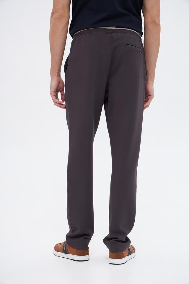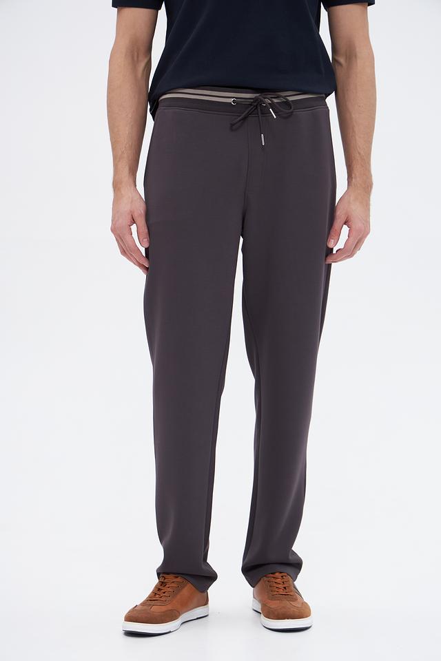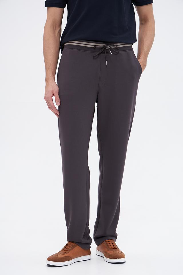 Брюки имеют удобный эластичный пояс с регулируемым шнурком, обеспечивающим надежную посадку. Классический крой и лаконичный дизайн делают эти брюки универсальными и легко сочетаемыми с различной одеждой.