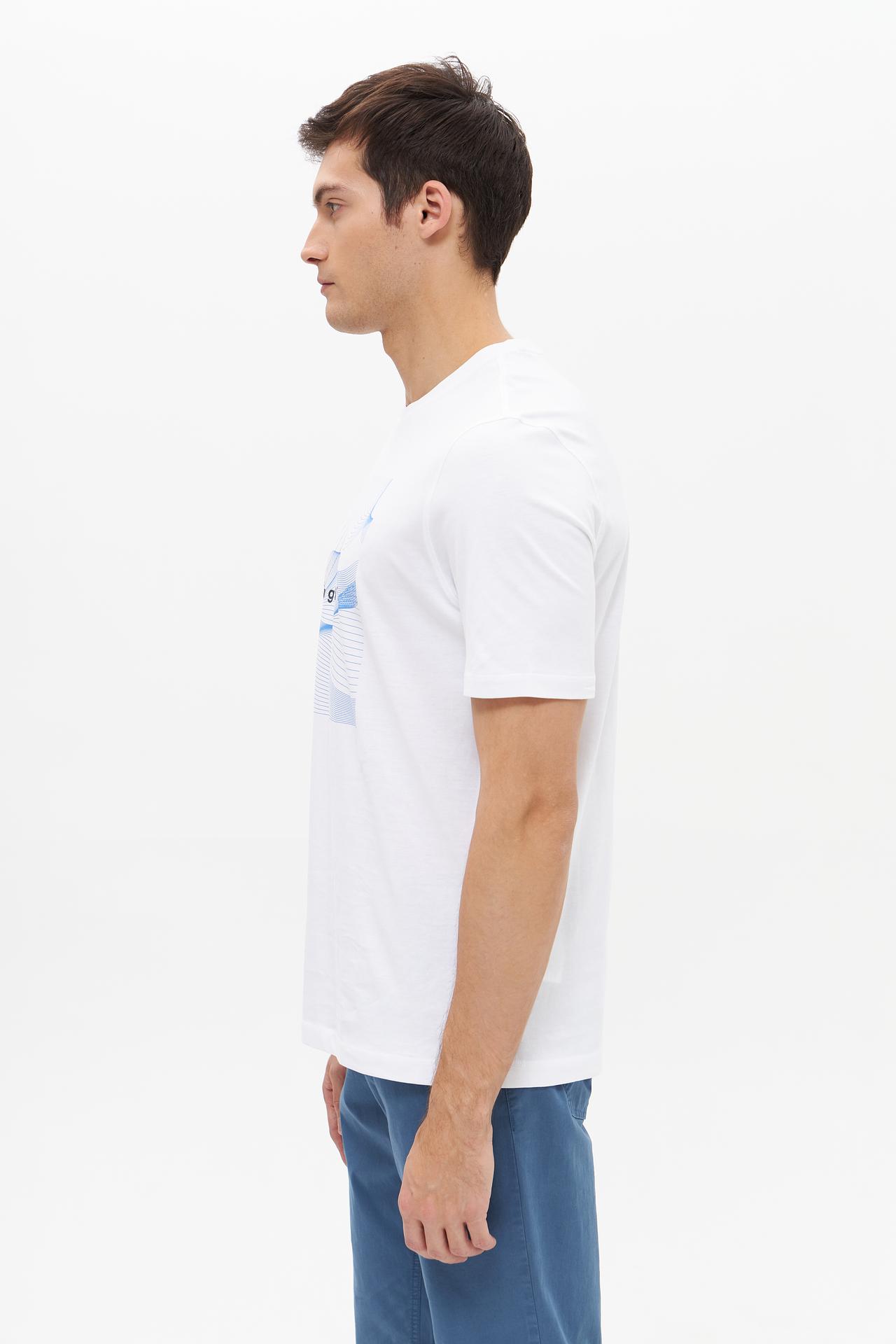 Классическая футболка Bugatti выполнена из 100% хлопка, обеспечивающего максимальный комфорт и воздухопроницаемость. Универсальная модель с короткими рукавами и круглым вырезом горловины идеально подходит для создания стильных повседневных образов. Футболка украшена оригинальным графическим принтом с логотипом бренда, добавляющим ей индивидуальности и современного звучания. Эта футболка станет незаменимой частью вашего гардероба.