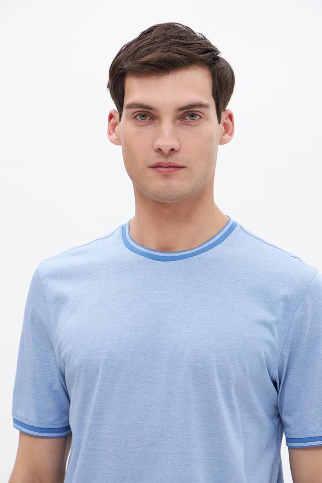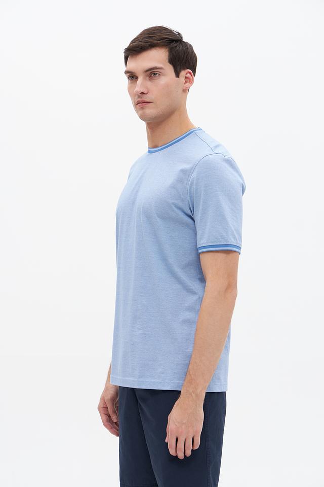 Мужская футболка Bugatti голубого цвета с контрастной отделкой по горловине и рукавам. Изготовлена из 100% хлопка, обеспечивающего комфорт и воздухопроницаемость. Состав: хлопок 100%