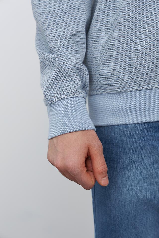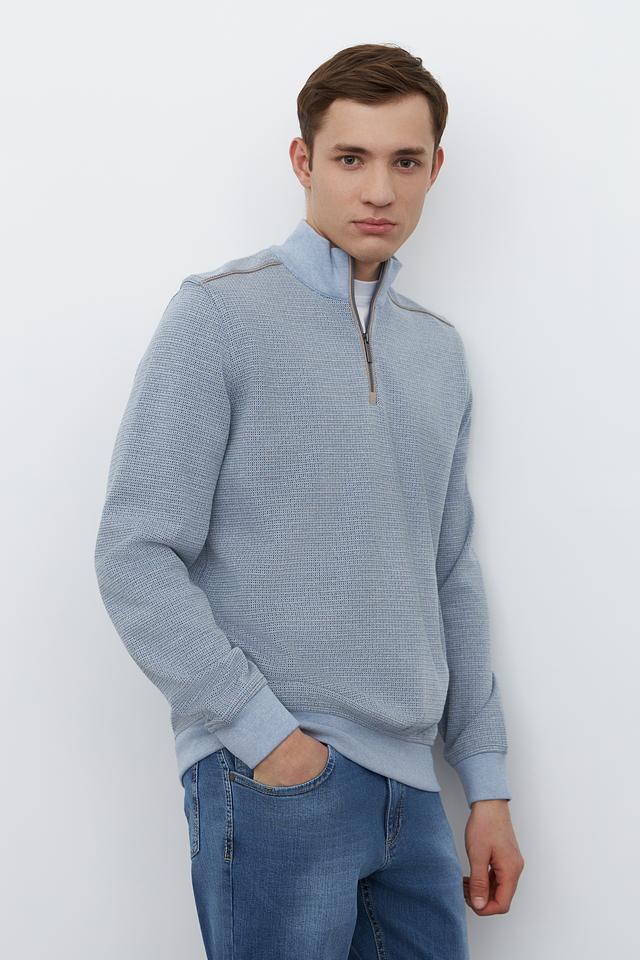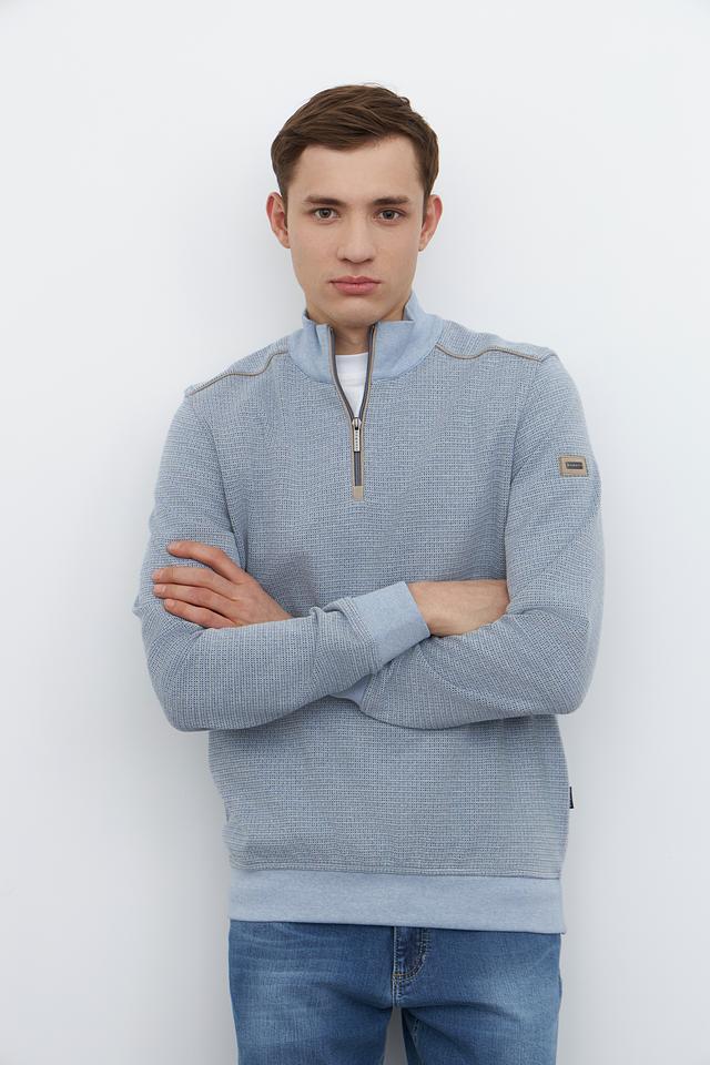 Мужской джемпер Bugatti голубого цвета с короткой молнией на воротнике. Изготовлен из хлопка с добавлением полиэстера для комфорта и долговечности. Состав: хлопок 65%, полиэстер 35%