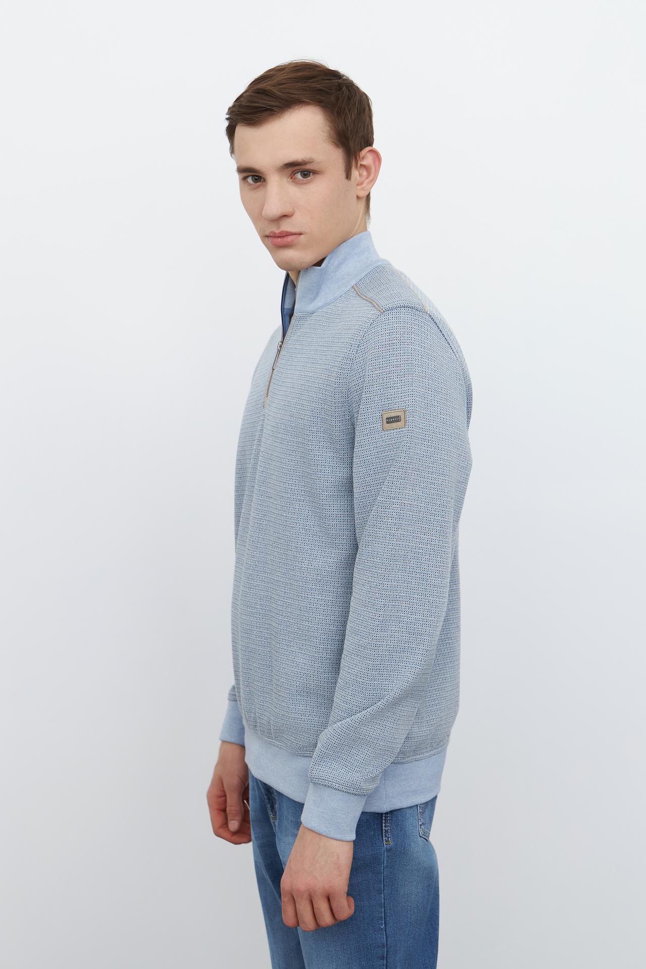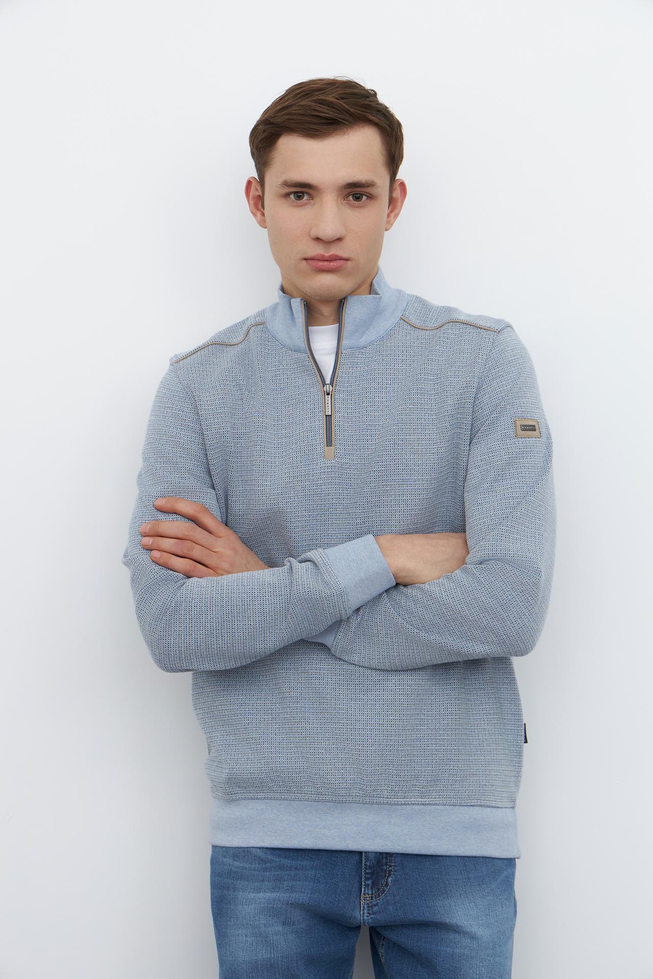 Джемпер Bugatti мужской голубой с молнией и прострочкой