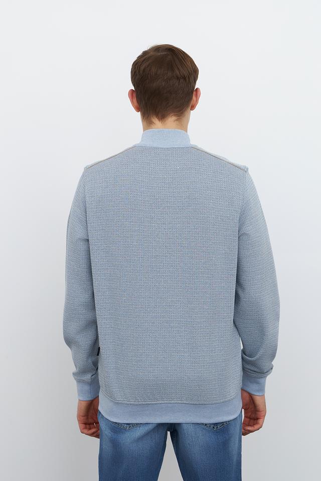 Мужской джемпер от Bugatti выполнен в светло-голубой цветовой гамме. Модель имеет воротник-стойку с короткой молнией, что придает ей современный и стильный вид.