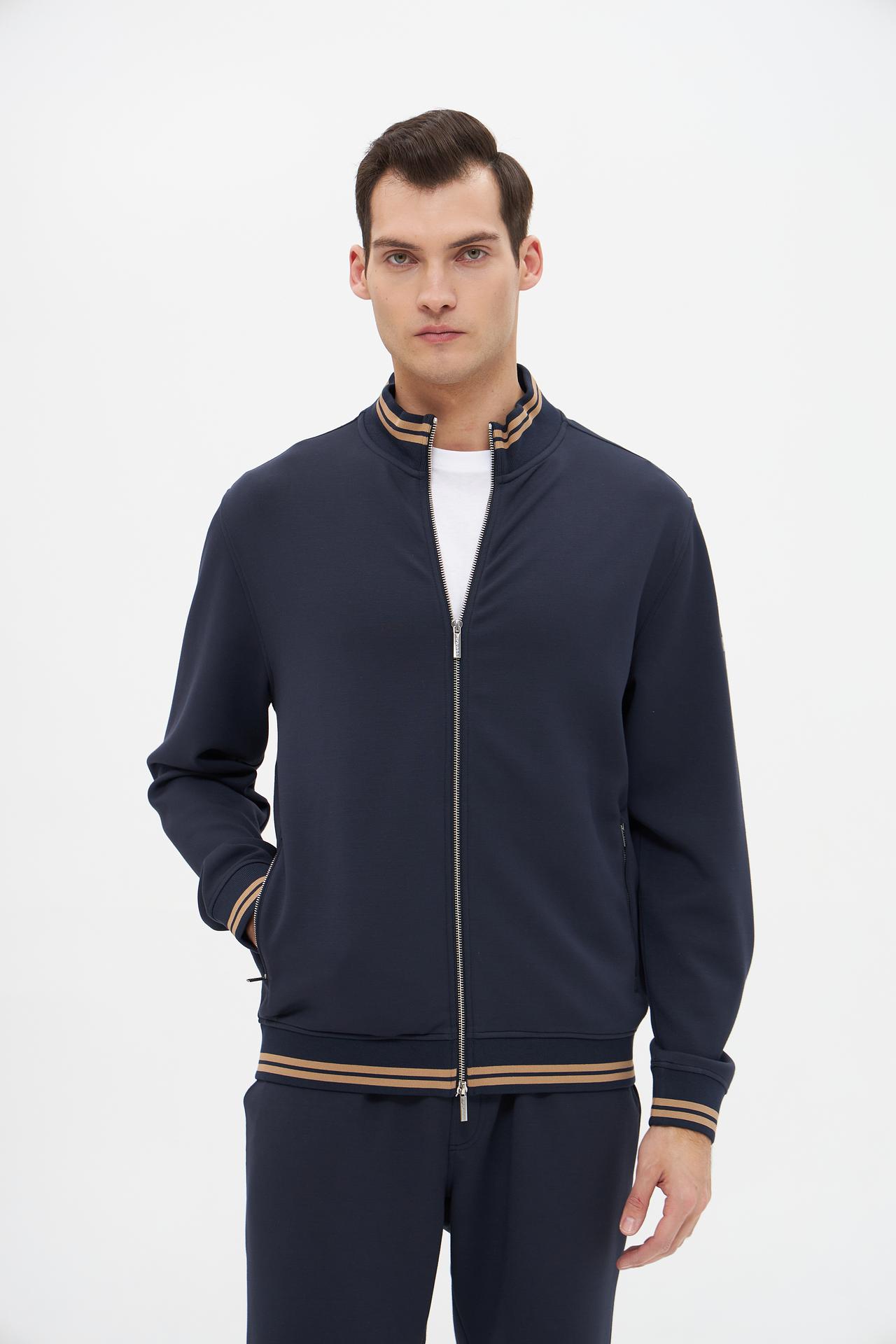 Кардиган Bugatti тёмно-синий с полосками на молнии