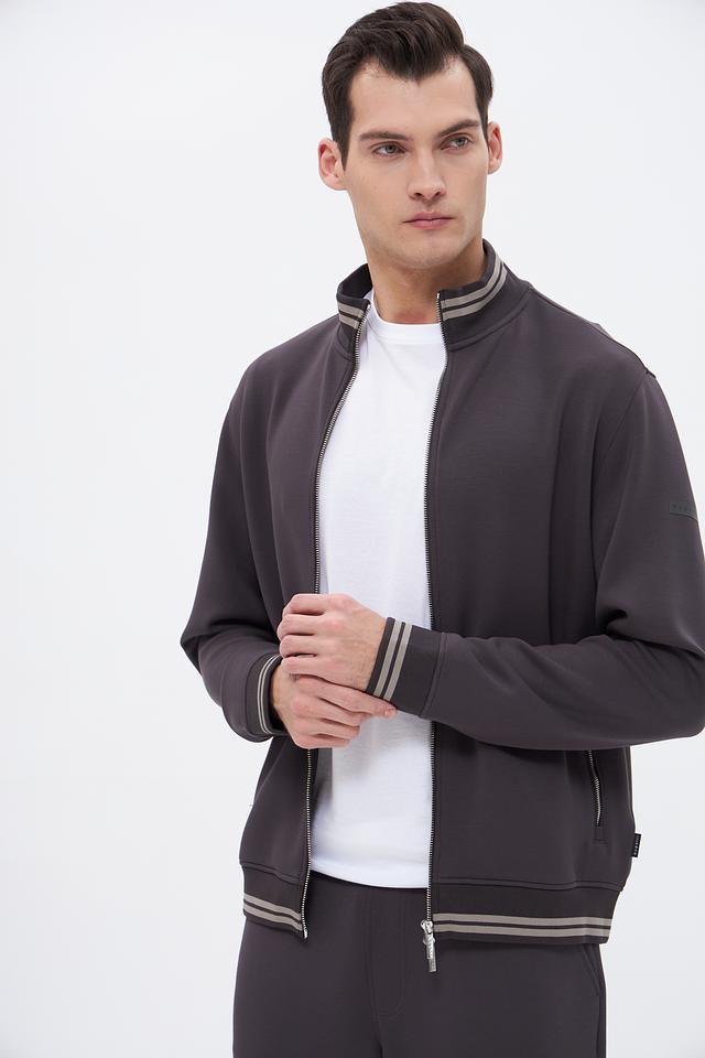 Стильный мужской кардиган Bugatti серого цвета на молнии с отделкой в тон. Модель выполнена из мягкого и приятного к телу трикотажа, идеально подходит для создания комфортных и модных образов. Состав: модал 54%, полиэстер 38%, эластан 8%