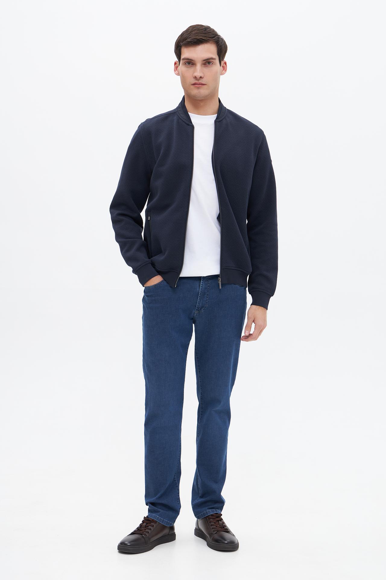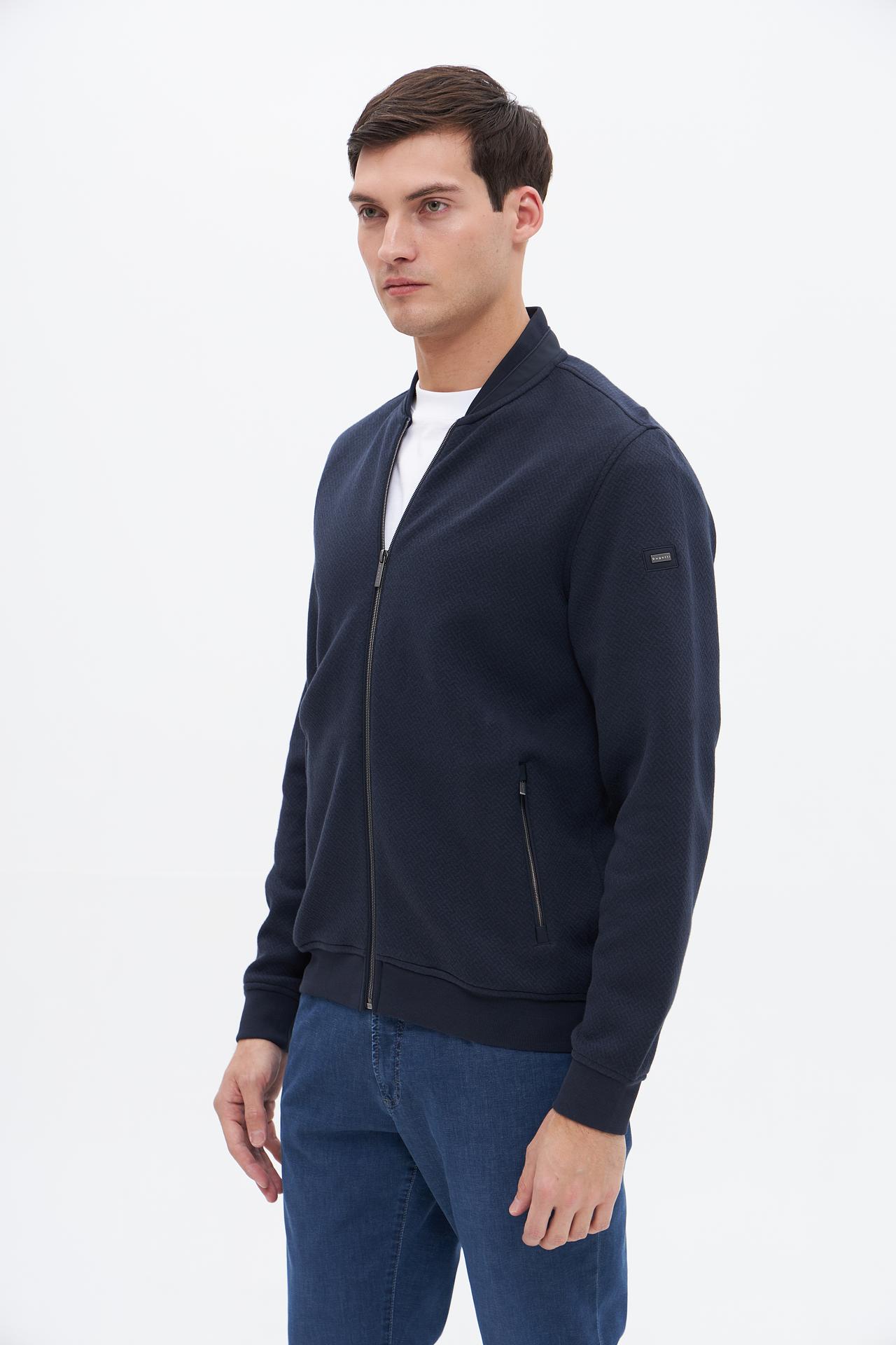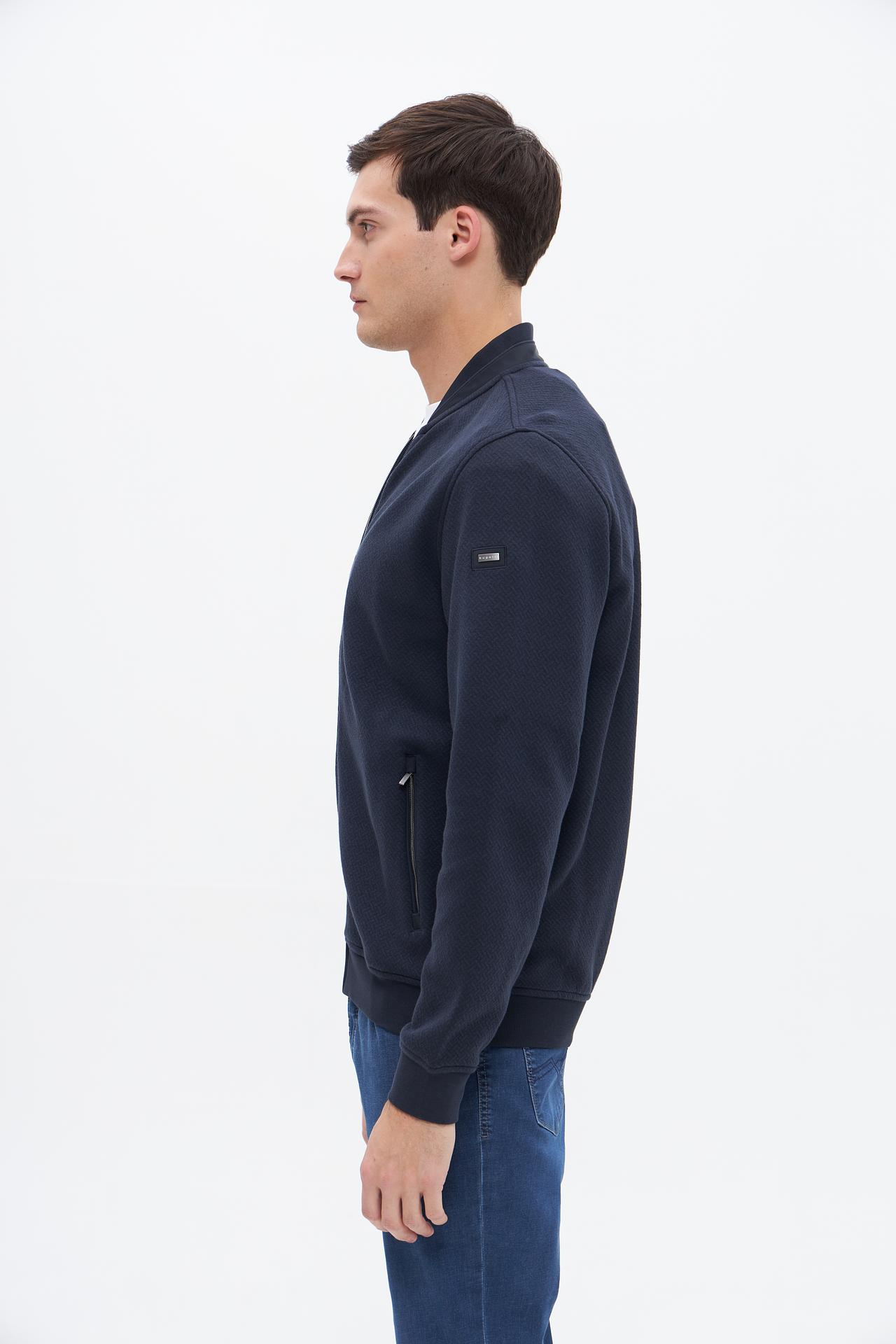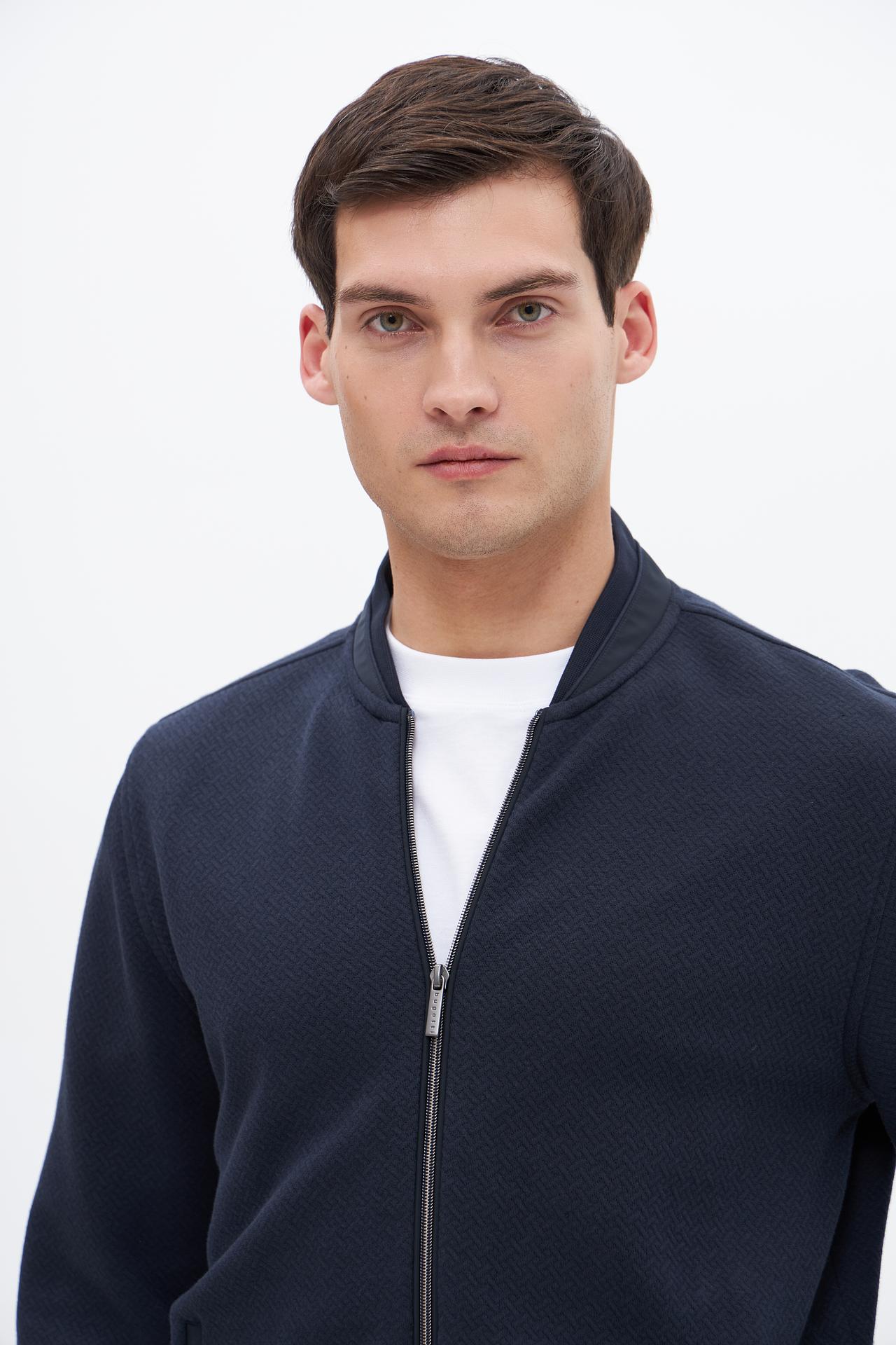 Стильный мужской кардиган от Bugatti – идеальный выбор для создания современного образа. Модель выполнена в темно-синем цвете и отличается минималистичным дизайном, что делает её универсальной для различных повседневных и полуформальных сочетаний. Кардиган застегивается на молнию и имеет удобный воротник-стойку, характерный для бомберов.
