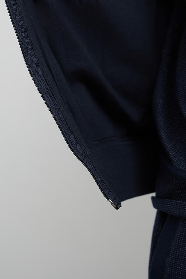 Куртка выполнена из комбинации хлопка (90%) и полиэстера (10%), что обеспечивает комфорт и практичность в носке. Передняя часть куртки имеет стеганую фактуру, а боковые панели и спинка выполнены из трикотажного полотна.