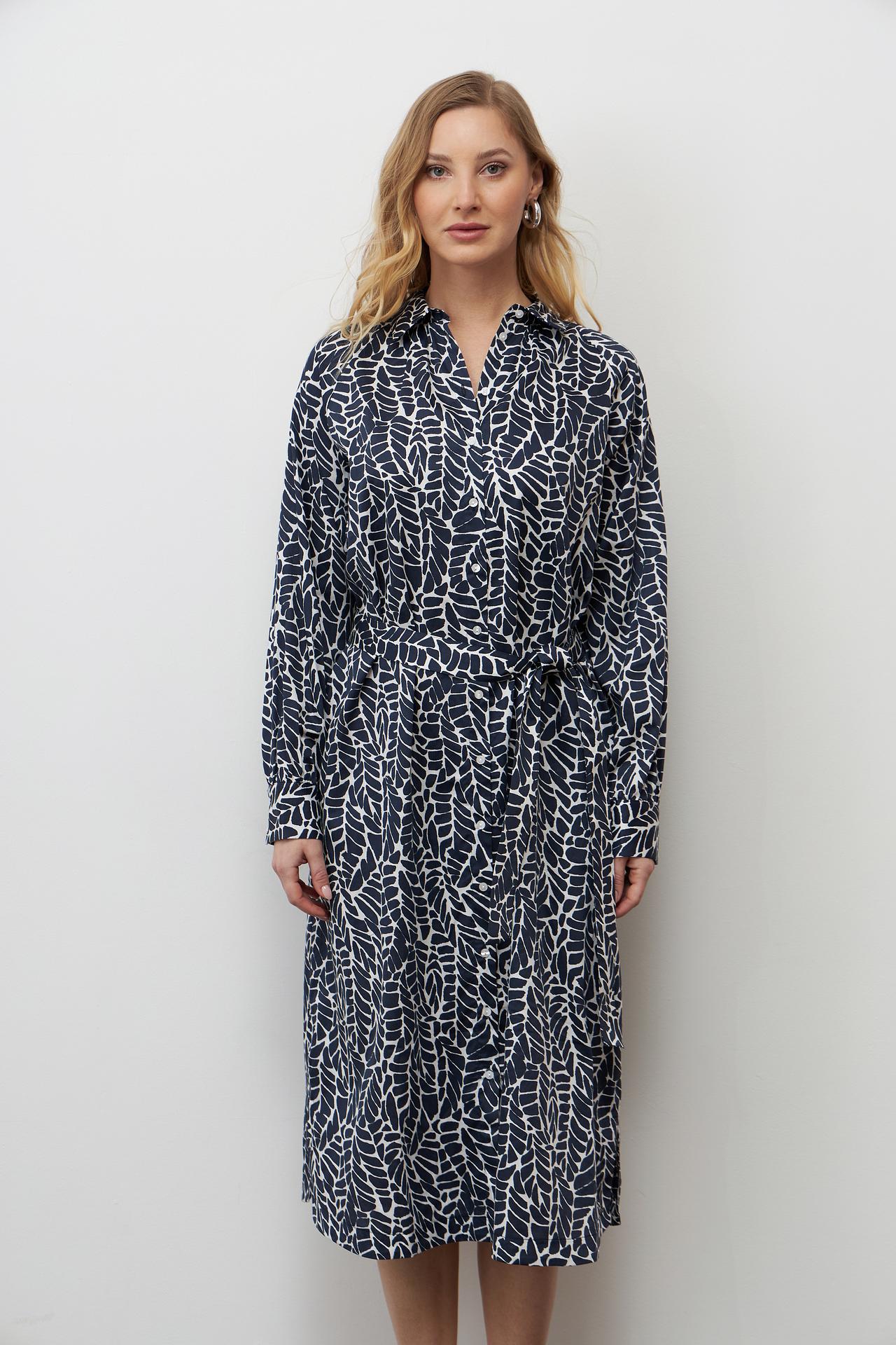 Платье Bugatti рубашечного кроя с принтом тёмно-синее