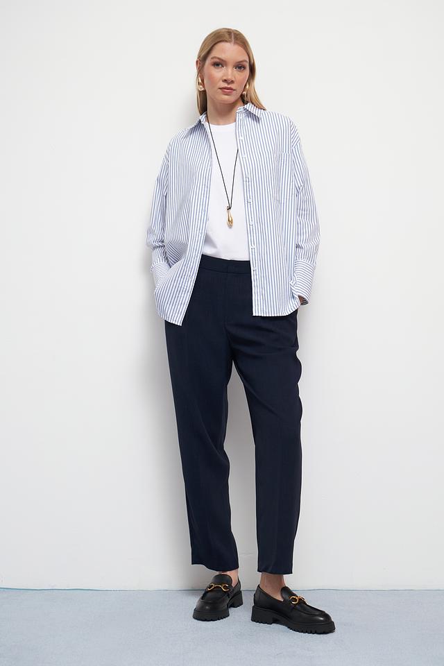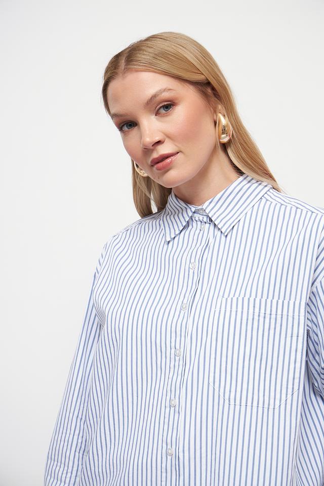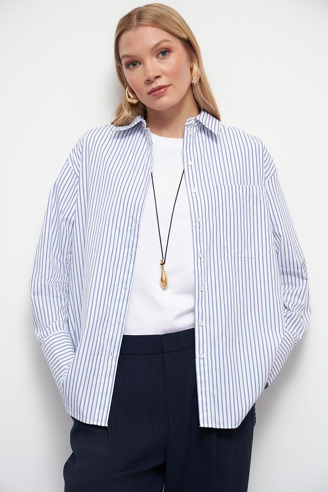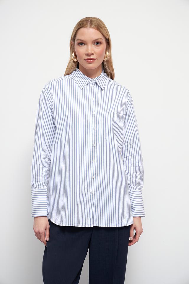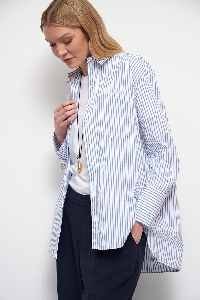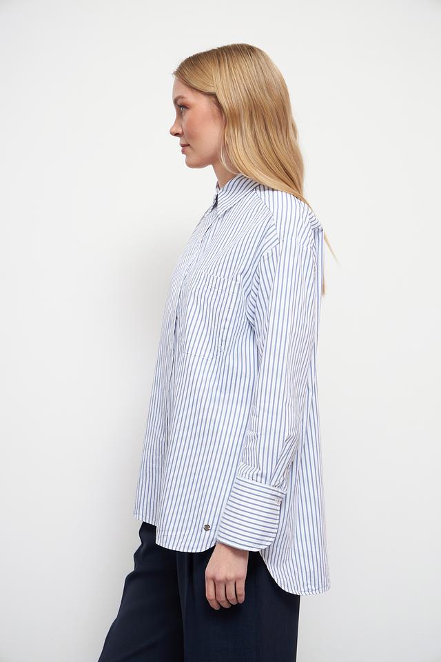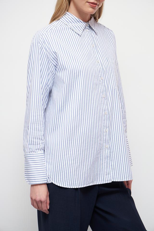 Женская рубашка Bugatti синего цвета в классическую полоску. Изготовлена из 100% хлопка, обеспечивающего комфорт и воздухопроницаемость. Отличный выбор для создания стильного повседневного образа. Состав: хлопок 100%