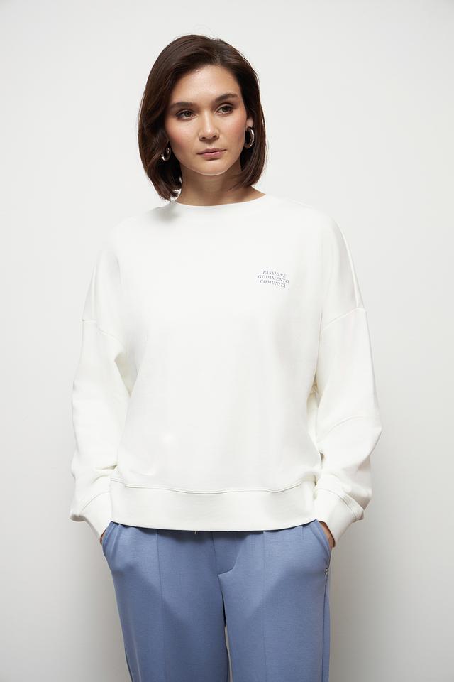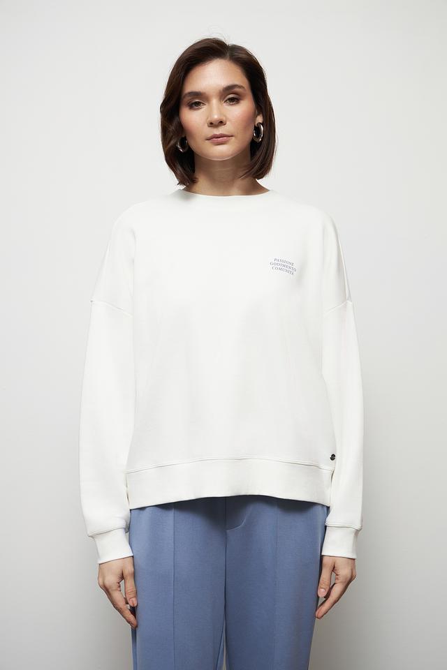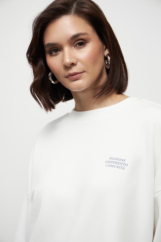 Эта модель идеально подходит для создания повседневных образов. Ее можно сочетать с джинсами, брюками или юбками. Благодаря своему нейтральному цвету, толстовка легко комбинируется с другими элементами одежды.