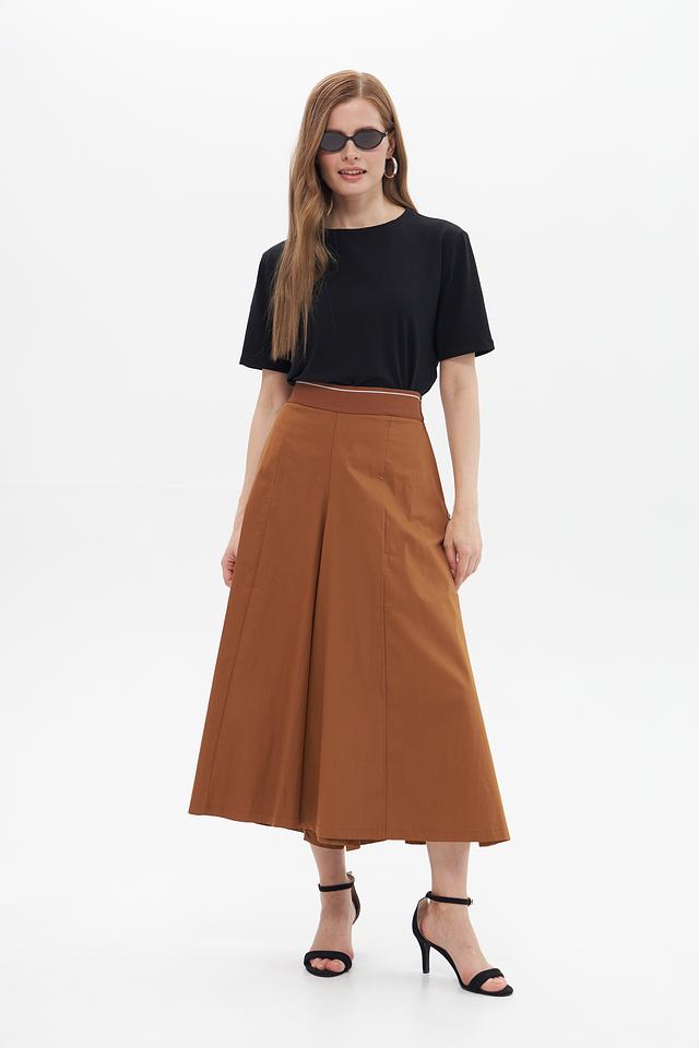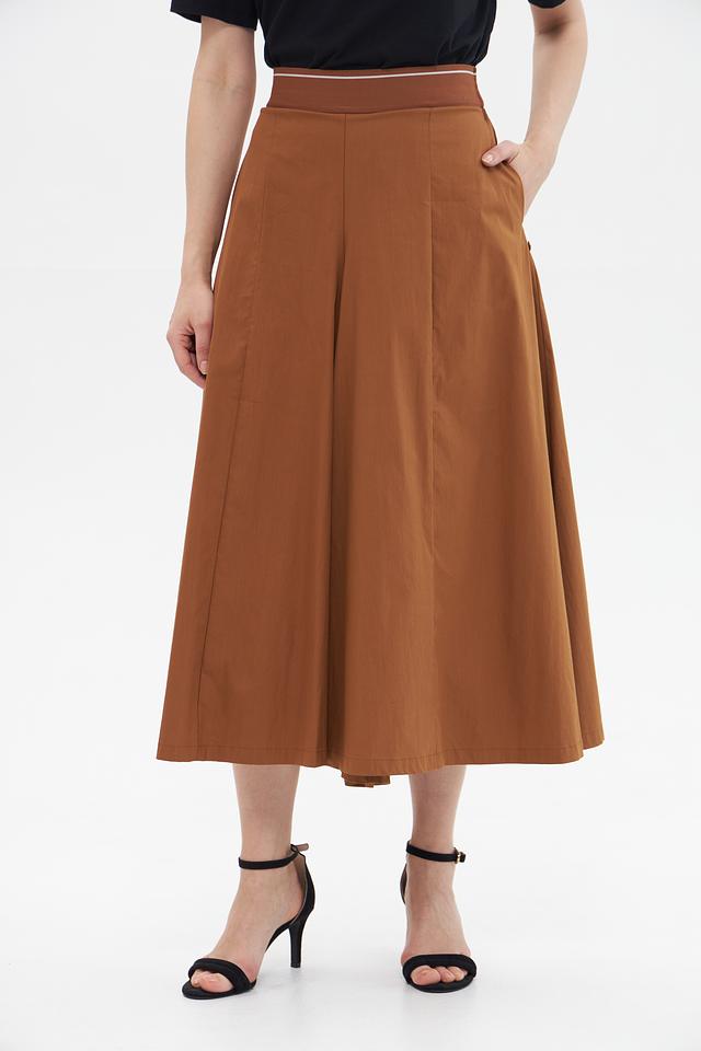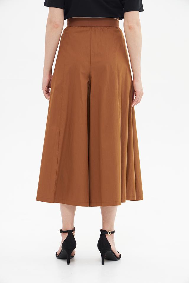 Брюки имеют свободный крой, который обеспечивает свободу движений и создает легкий, непринужденный образ. Высокая посадка подчеркивает талию и визуально удлиняет ноги. Широкие штанины кюлоты добавляют образу современности и оригинальности.