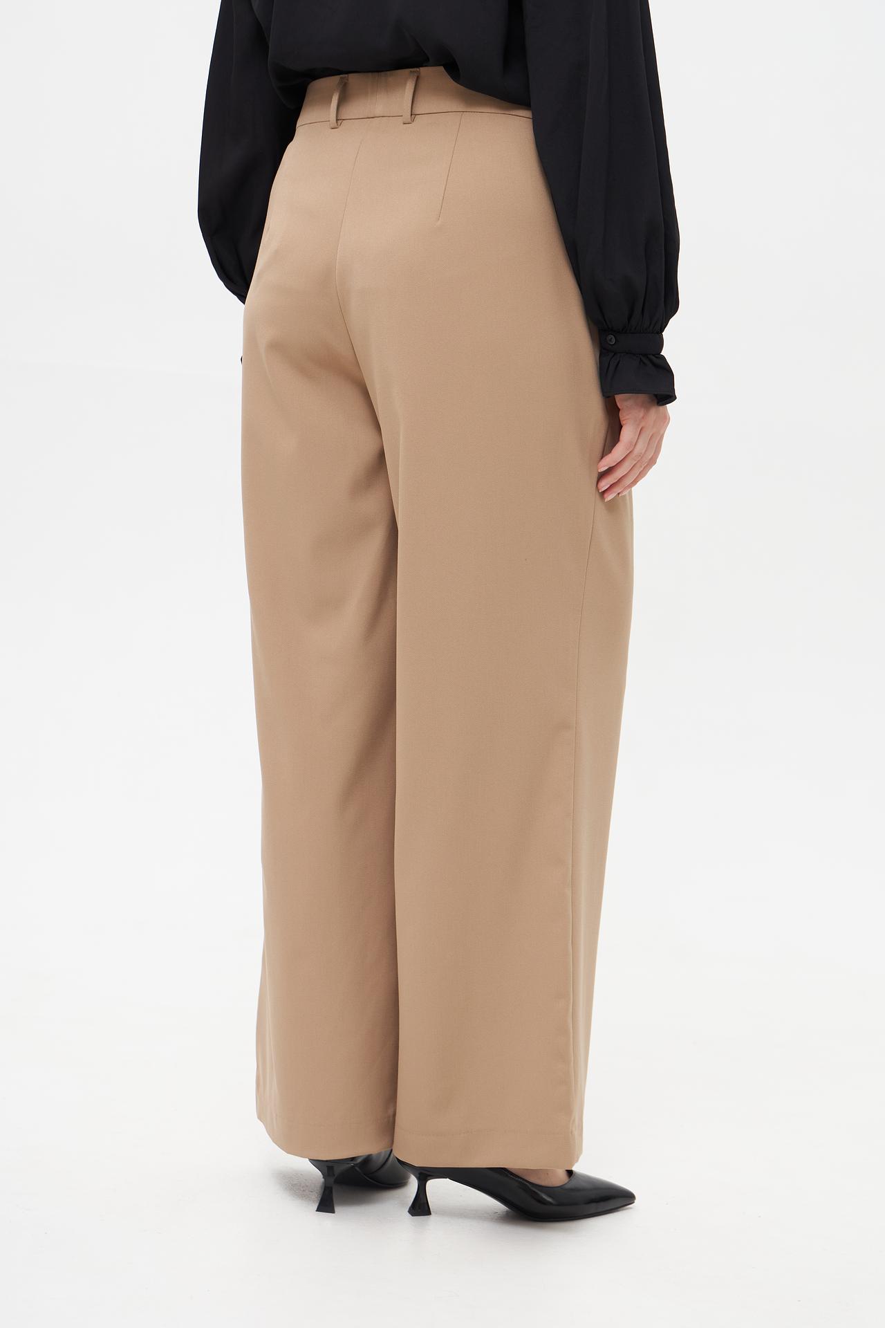 - Функциональные детали: Передние защипы добавляют объема и изящества, а функциональные боковые карманы позволяют держать необходимые мелочи под рукой. Пояс со шлевками для ремня дополняет классический дизайн.