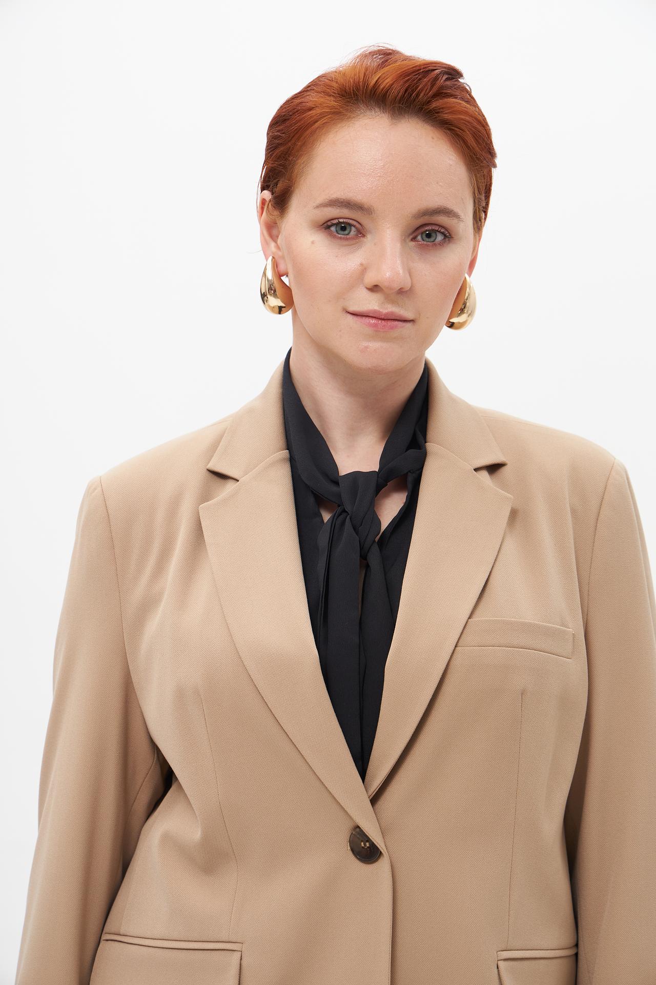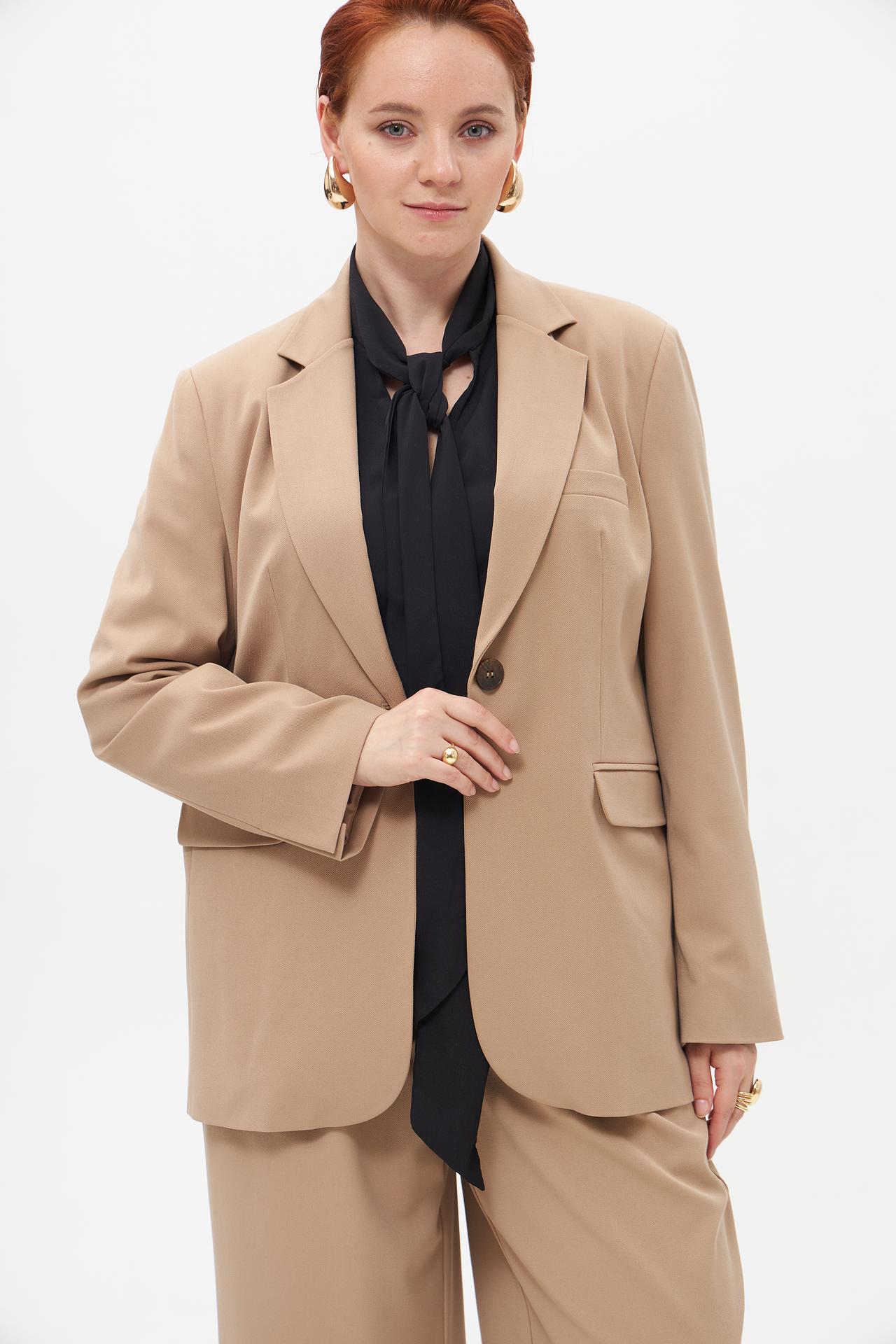 - Универсальный дизайн. Бежевый жакет легко комбинируется с различными элементами одежды, от строгих брюк до джинсов, позволяя создавать множество стильных ансамблей для офиса или свободного времени. Это базовая вещь в капсульном гардеробе.