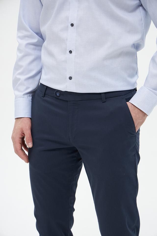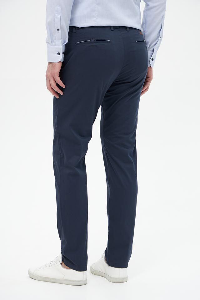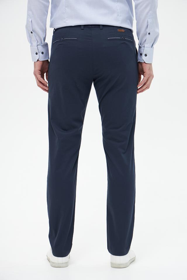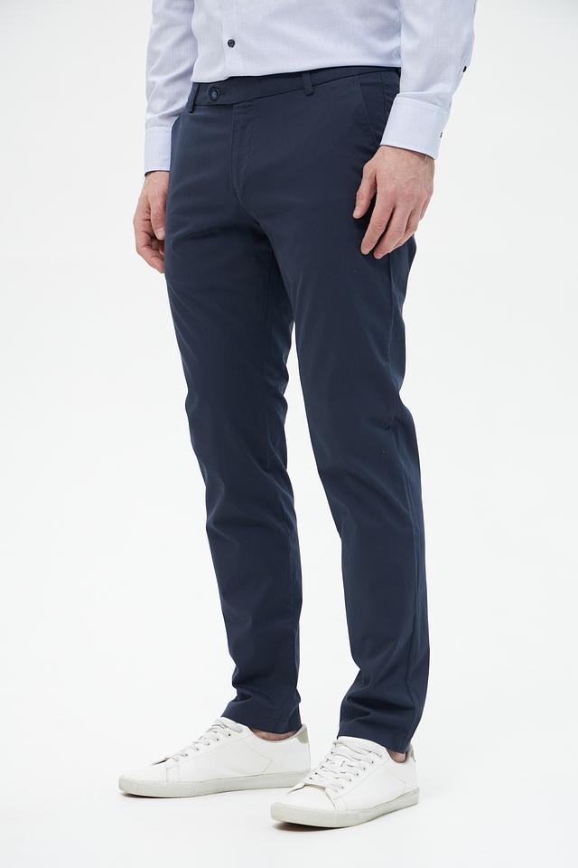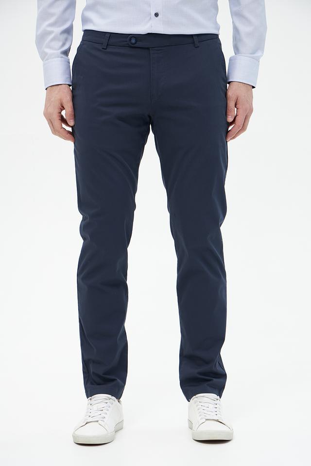 Брюки выполнены из высококачественного хлопка с добавлением эластана, что придает им мягкость, комфорт и небольшую эластичность. Ткань приятна на ощупь и хорошо держит форму. Цвет брюк – насыщенный темно-синий, который легко сочетается с различными элементами гардероба.