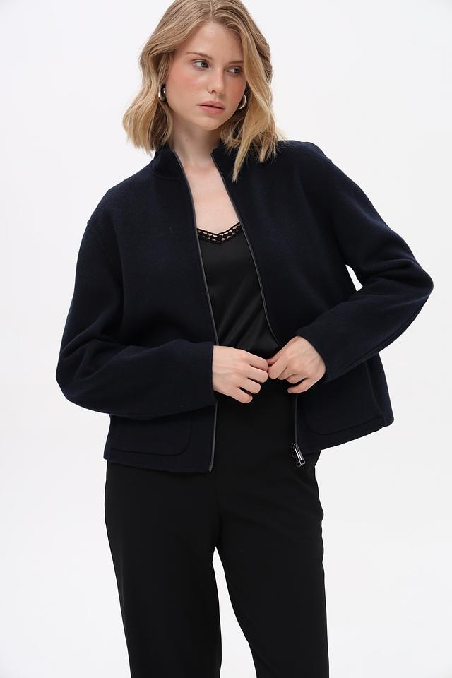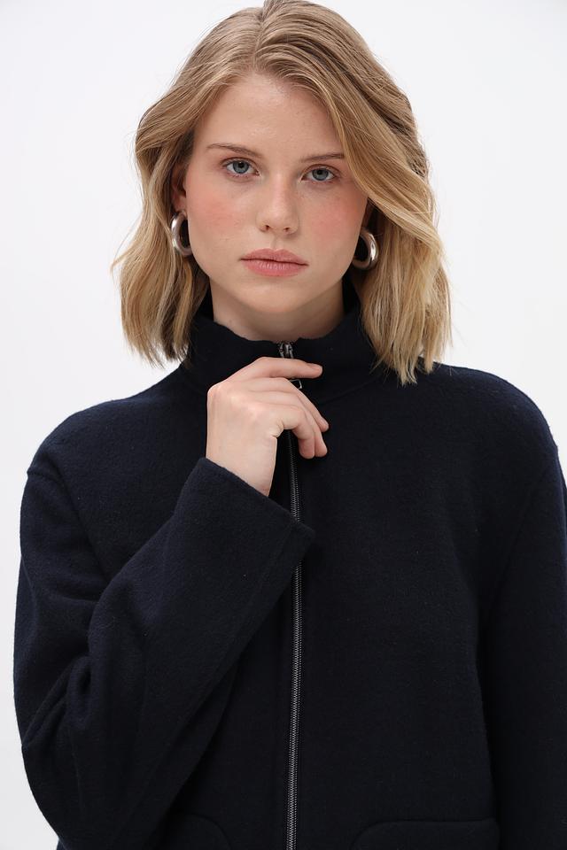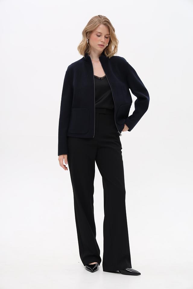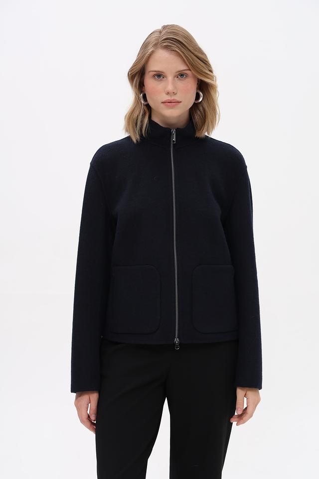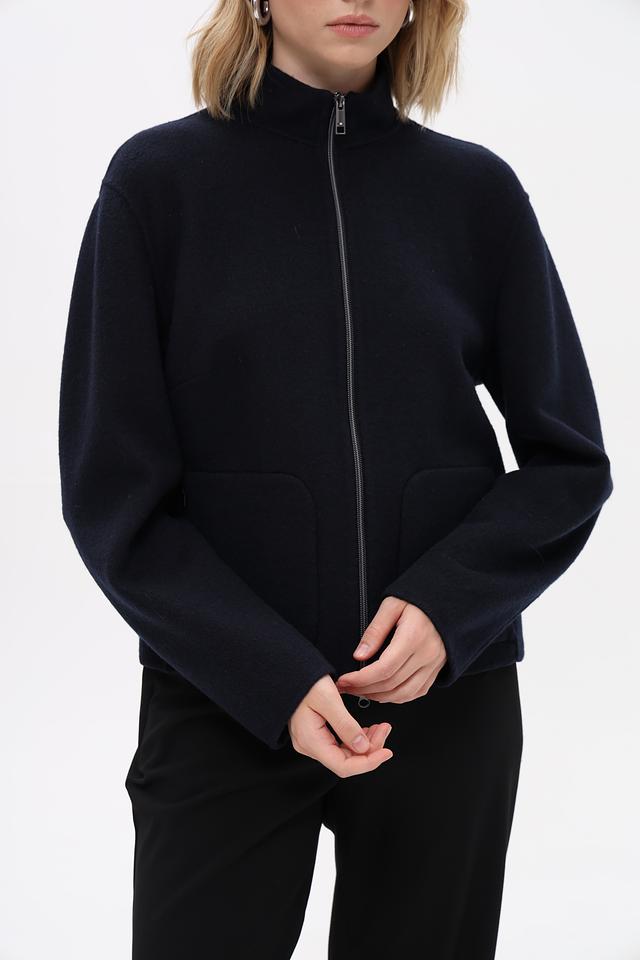 Куртка выполнена из сочетания 50% шерсти и 50% полиэстера, что обеспечивает комфорт и тепло в прохладную погоду. Застежка – молния. Высокий воротник-стойка защищает шею от ветра.