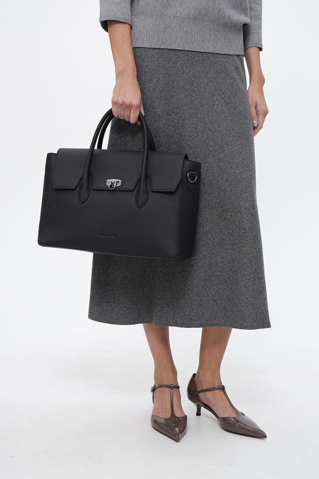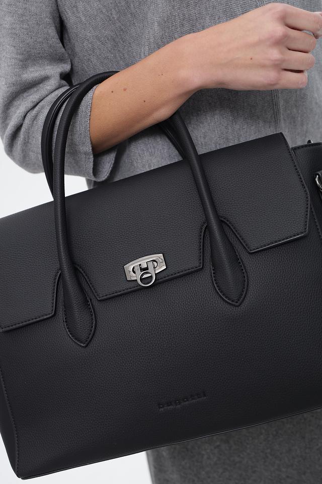 Сумка оснащена двумя удобными ручками для ношения в руке и съемным регулируемым плечевым ремнем для ношения на плече или через плечо. Застежка-перекидка с металлической пряжкой обеспечивает надежную защиту содержимого.