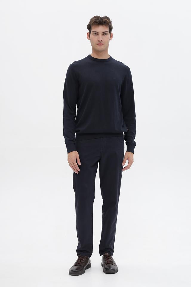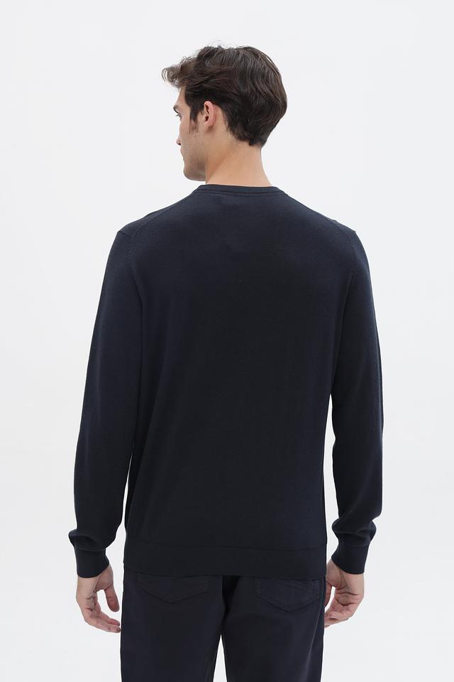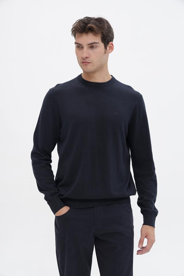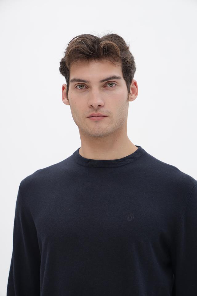 Цвет джемпера – насыщенный темно-синий, который легко сочетается с различными элементами одежды. Отсутствие ярких деталей и логотипов делает этот джемпер универсальным и подходящим для создания различных образов. Он идеально подойдет для повседневной носки, а также для создания более формальных образов в сочетании с брюками и пиджаком.