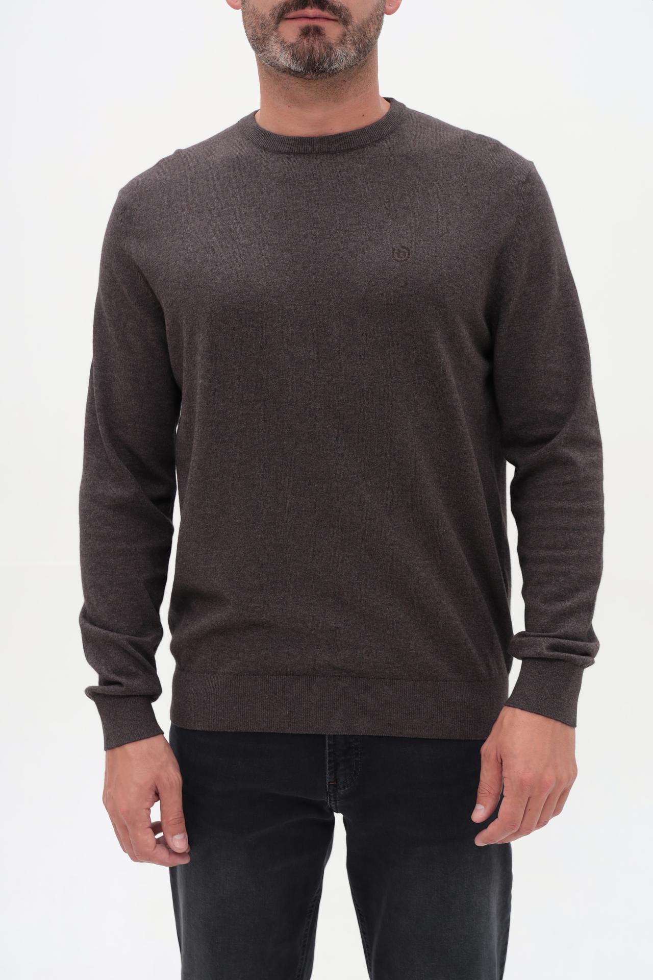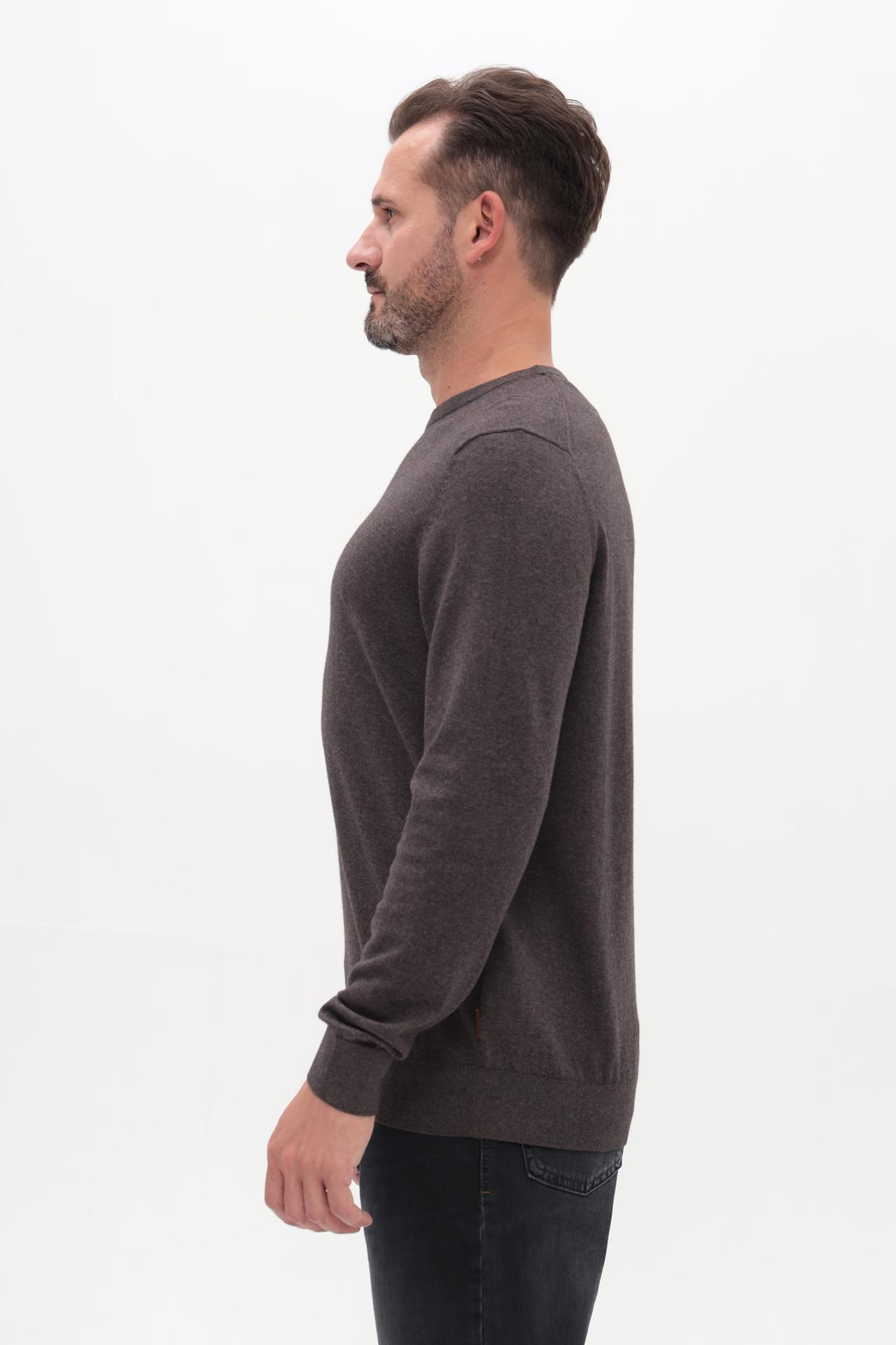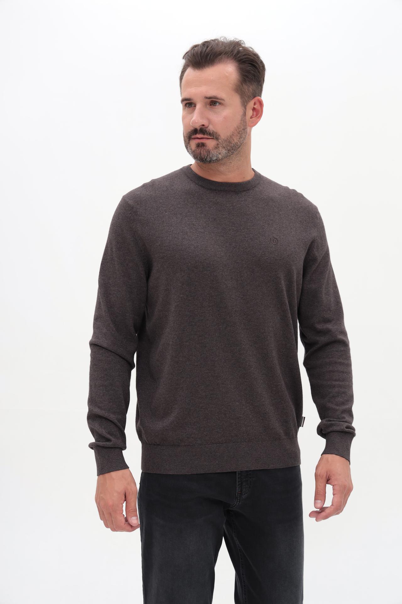 Мужской джемпер Bugatti классического кроя — незаменимая вещь в базовом гардеробе. Модель прямого силуэта с круглым вырезом горловины и длинными рукавами комфортно садится по фигуре, не сковывая движений. Универсальный коричневый цвет легко сочетается с джинсами и брюками.