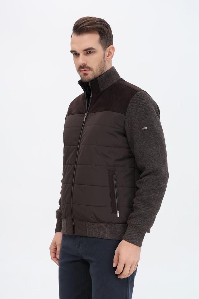 Мужская куртка Bugatti коричневого цвета с комбинированным дизайном. Выполнена из шерсти и полиакрила, отличается стильным сочетанием стеганого и вязаного полотна. Состав: полиакрил 70%, шерсть 30%