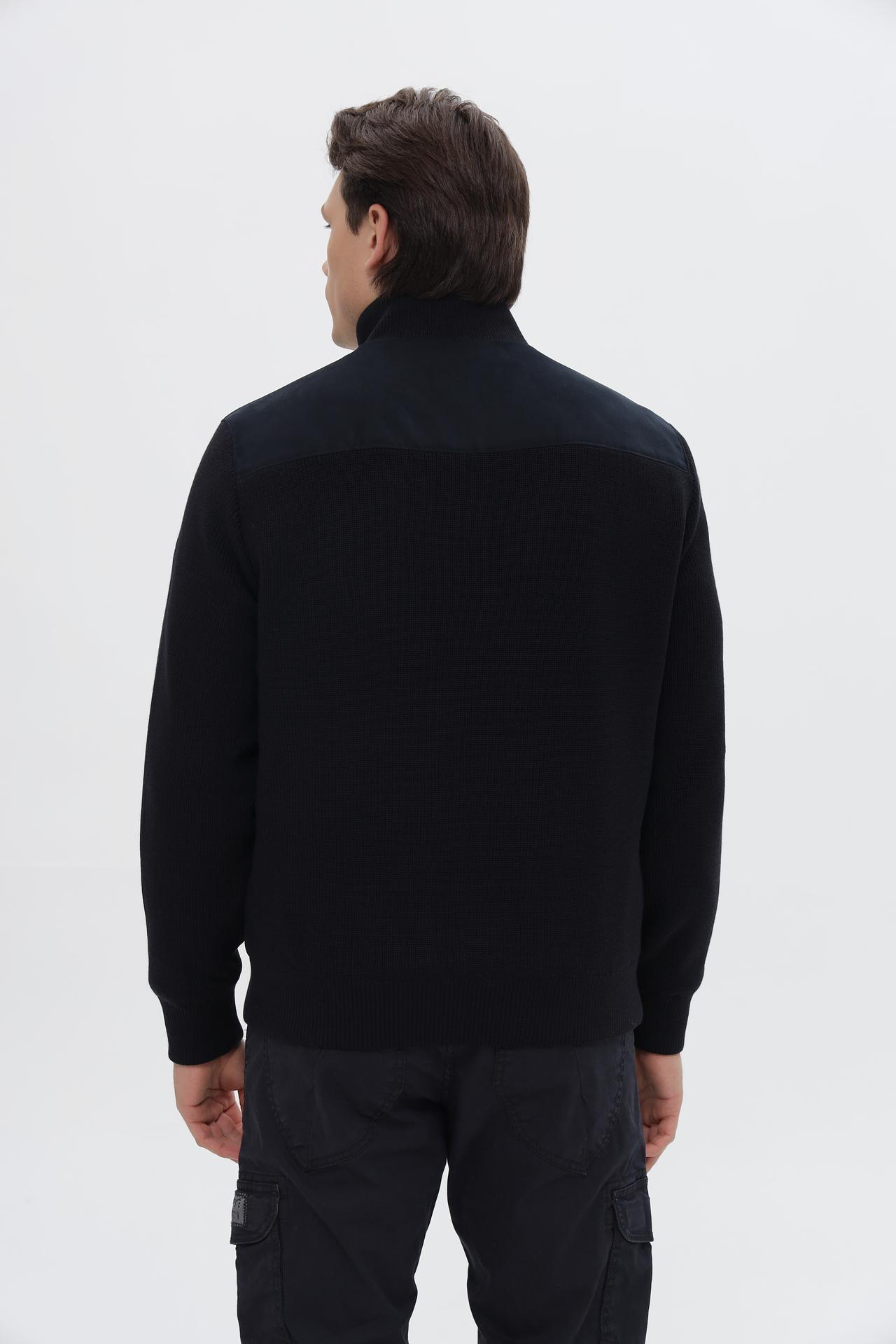 Верхняя часть куртки выполнена из качественной ткани, а рукава и воротник отделаны вязаными элементами, что придает изделию особый шарм и обеспечивает дополнительное тепло.