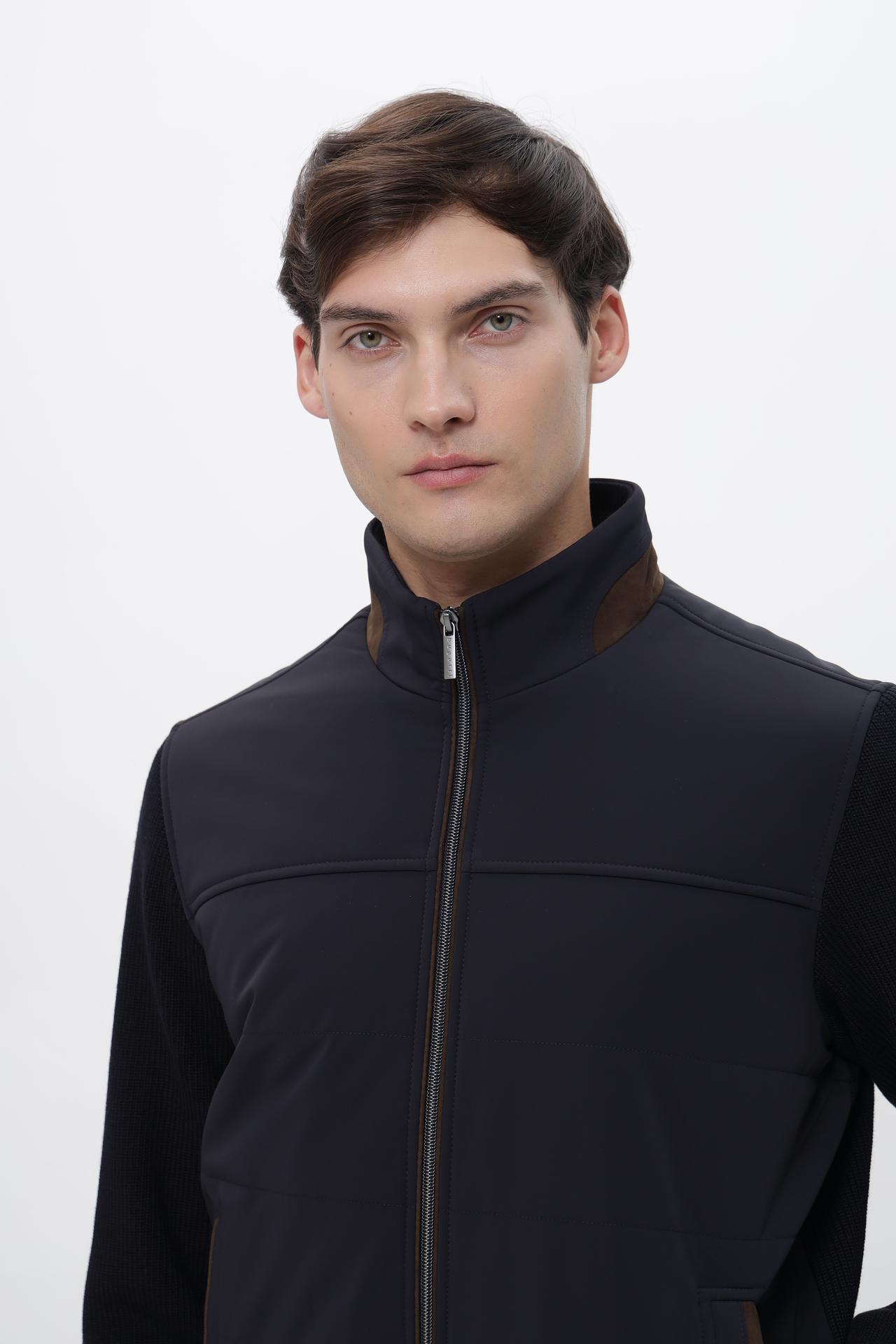 - Дизайн: Современный крой с контрастными трикотажными рукавами и отделкой воротника создает динамичный образ.