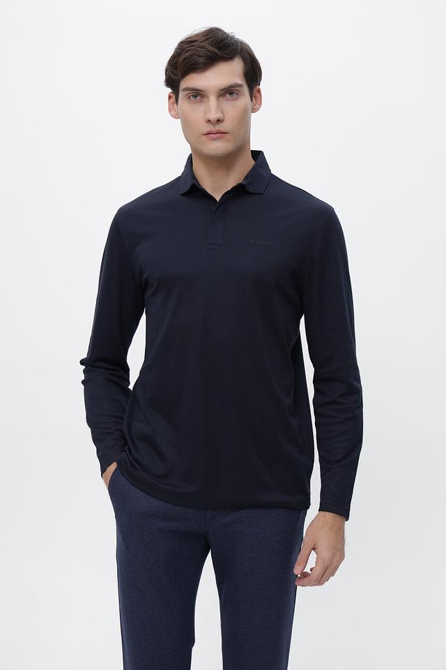 Мужское поло Bugatti тёмно-синего цвета с длинным рукавом выполнено из сочетания хлопка и полиэстера. Удобный крой и лаконичный дизайн делают эту модель отличным выбором для повседневной носки. Состав: полиэстер 50%, хлопок 50%