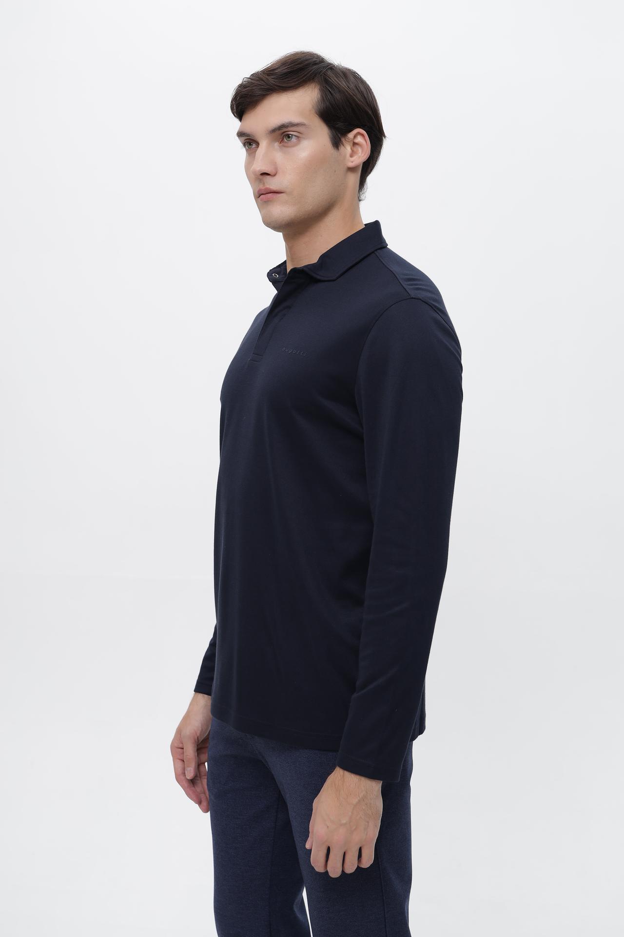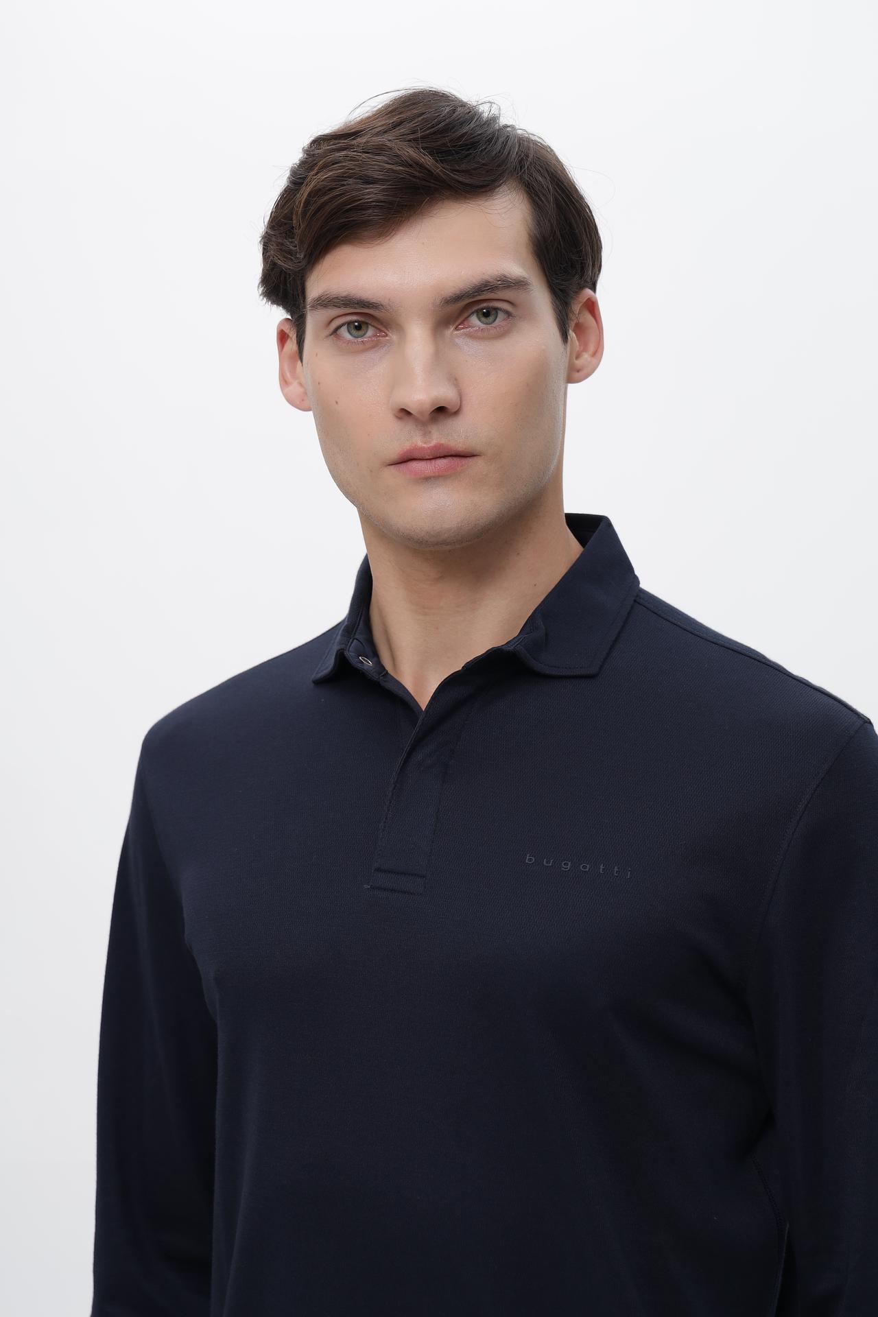 Классическое поло Bugatti с длинным рукавом - идеальный выбор для создания элегантного и современного образа. Модель выполнена в универсальном темно-синем цвете, который легко сочетается с различными элементами гардероба. На груди присутствует тиснение логотипа бренда, добавляющее изысканности.