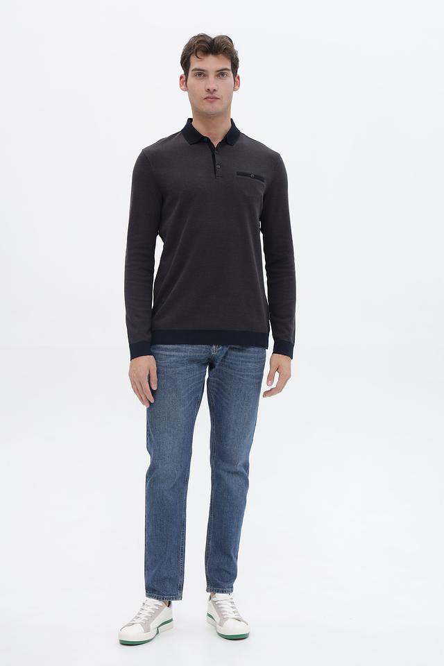 Мужской джемпер Bugatti графитового цвета с воротником-поло и длинными рукавами. Изготовлен из сочетания полиэстера и хлопка, обеспечивая комфорт и практичность. Отличается стильным дизайном и удобной посадкой. Состав: полиэстер 60%, хлопок 40%
