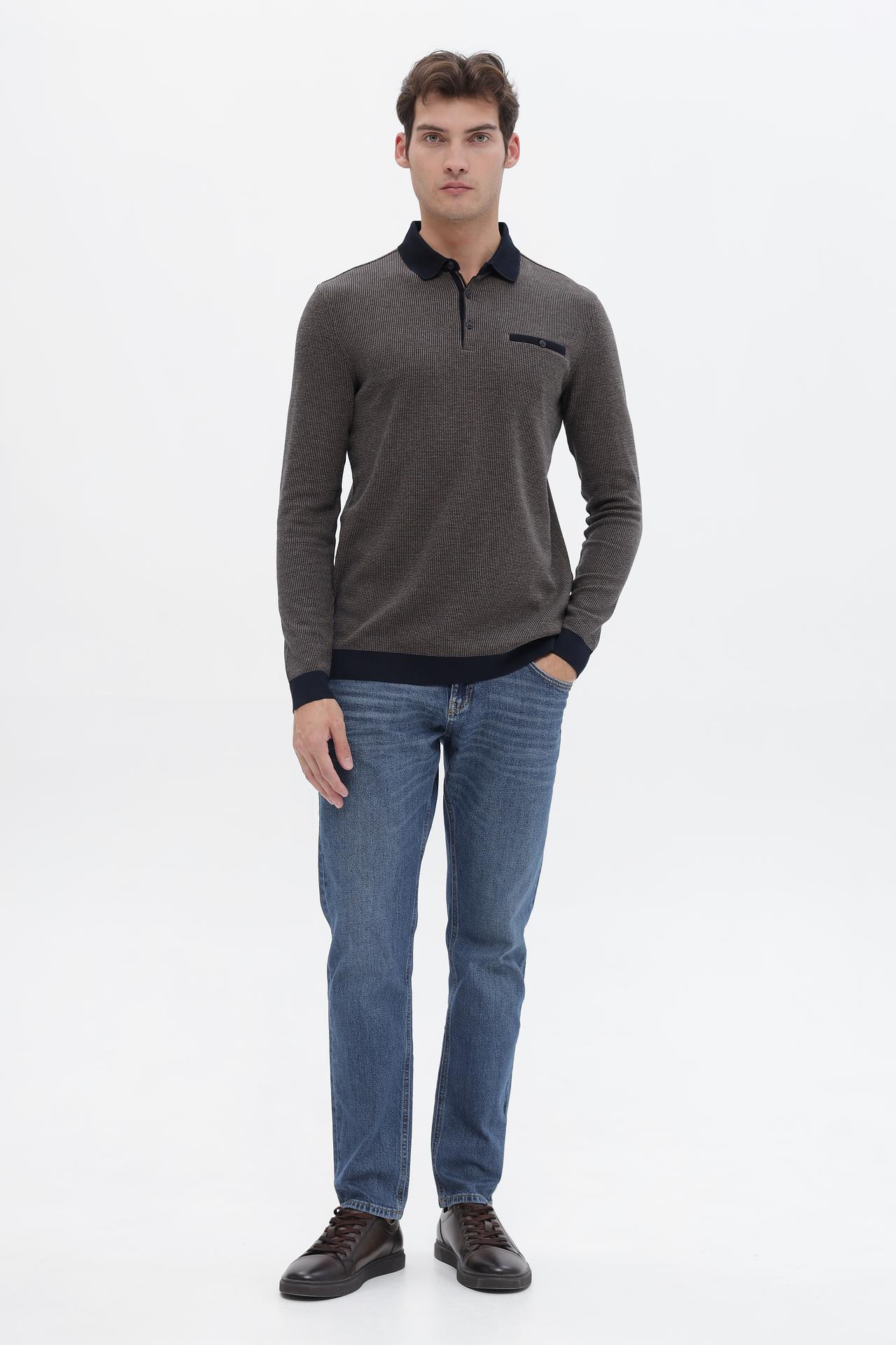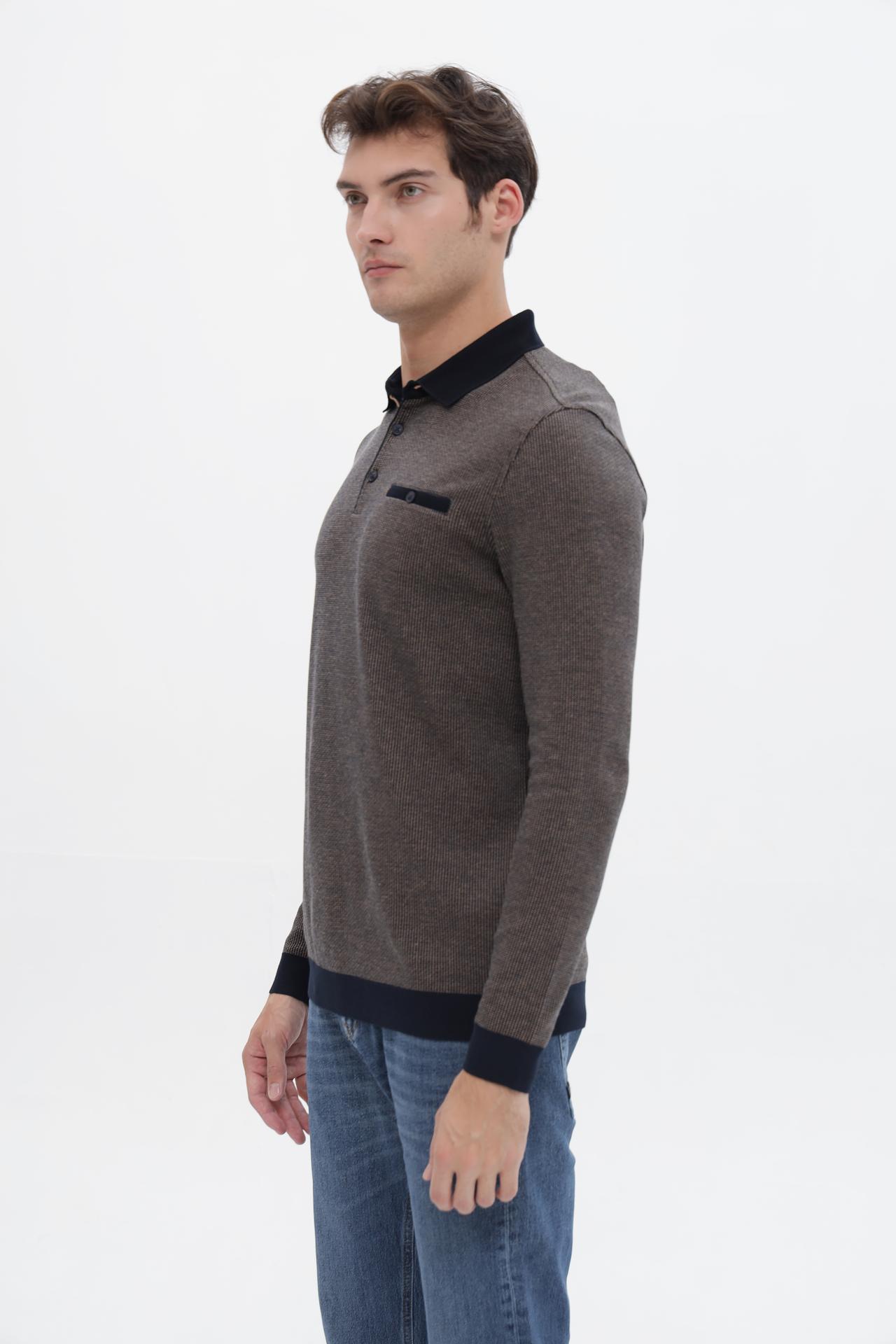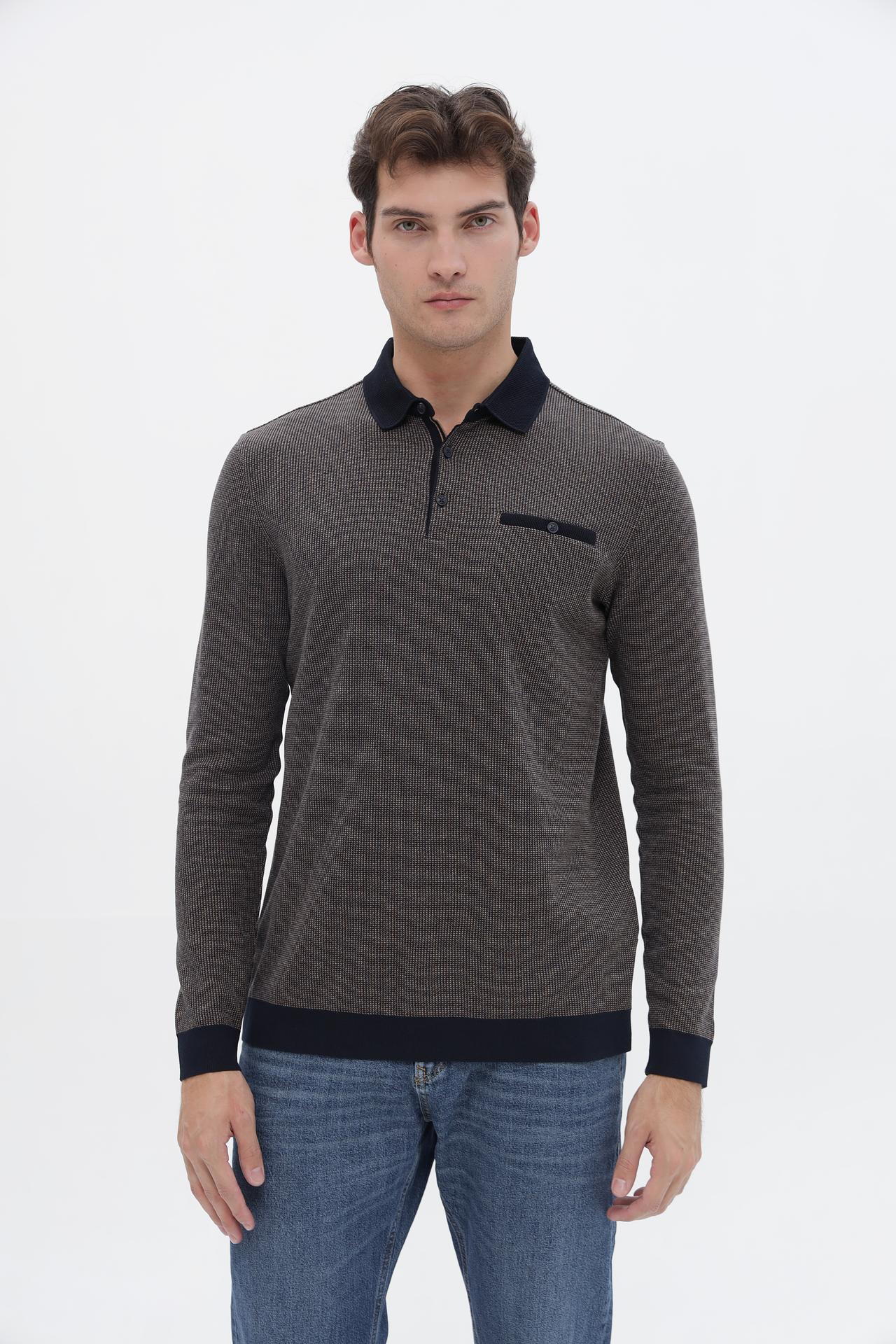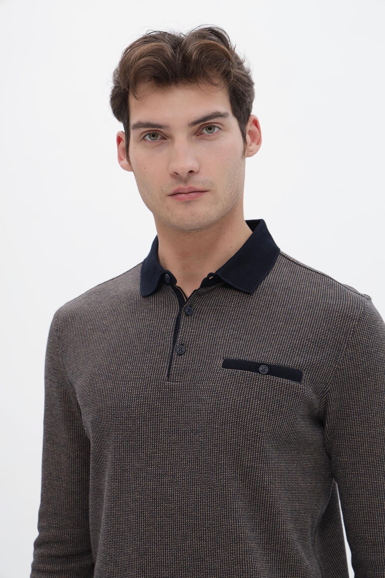 - Дизайн: Модель выполнена в классическом стиле поло с длинным рукавом, имеет аккуратный воротник и планку с пуговицами. Нагрудный карман добавляет функциональности и стиля.