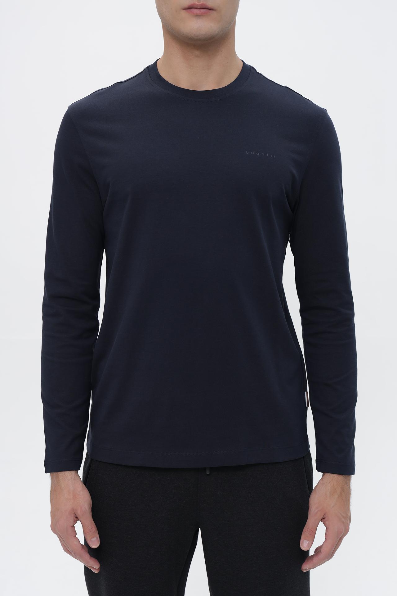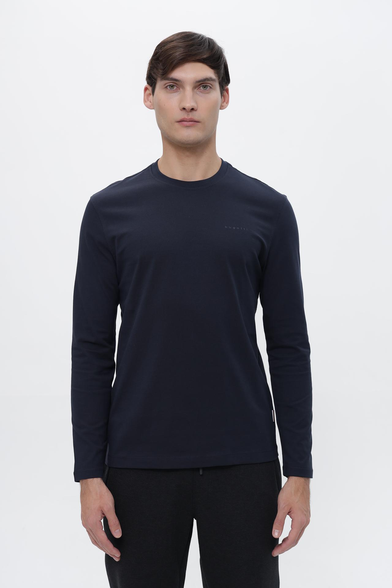 - Дизайн: Лаконичный крой с длинным рукавом и круглым вырезом горловины. На груди расположен небольшой тисненый логотип бренда Bugatti, добавляющий изысканности. Модель подходит как для повседневных образов, так и для создания более элегантных сочетаний.
