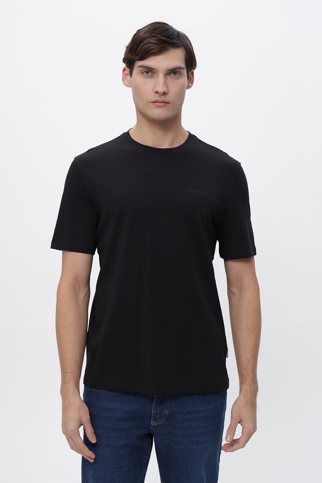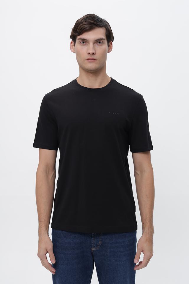Мужская футболка Bugatti классического кроя выполнена в насыщенном чёрном цвете. Изготовлена из высококачественного 100% хлопка, обеспечивающего комфорт и воздухопроницаемость.
