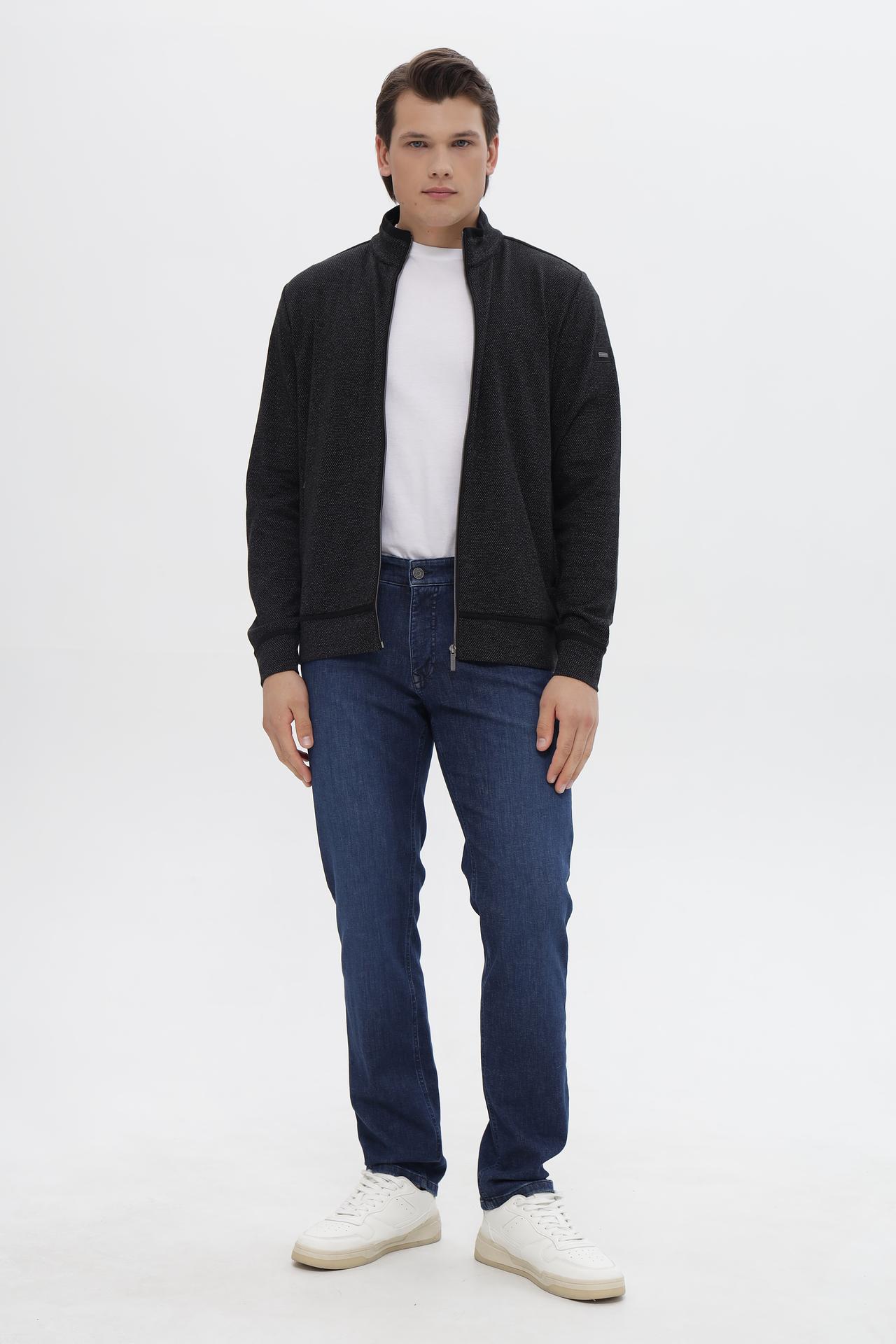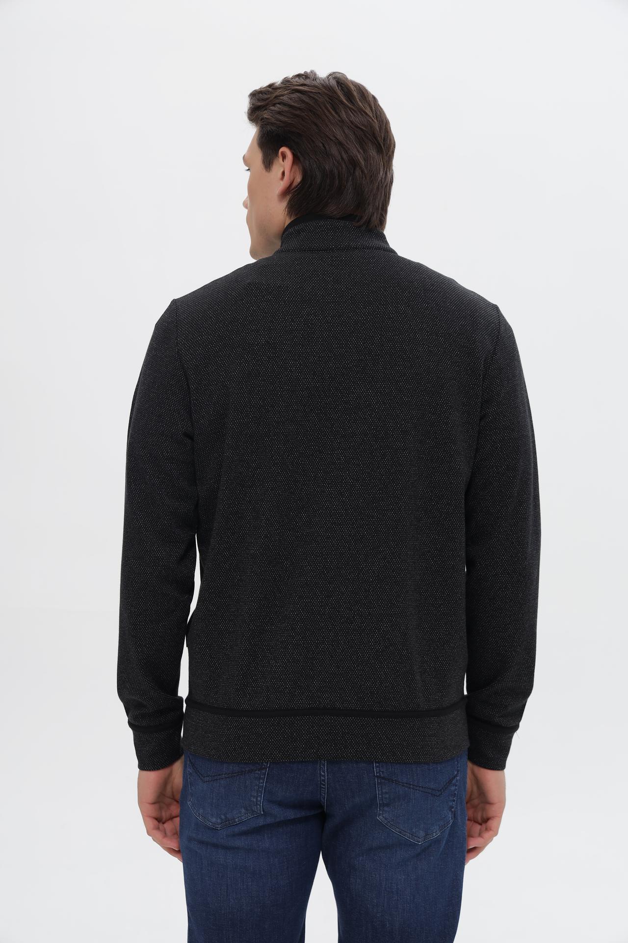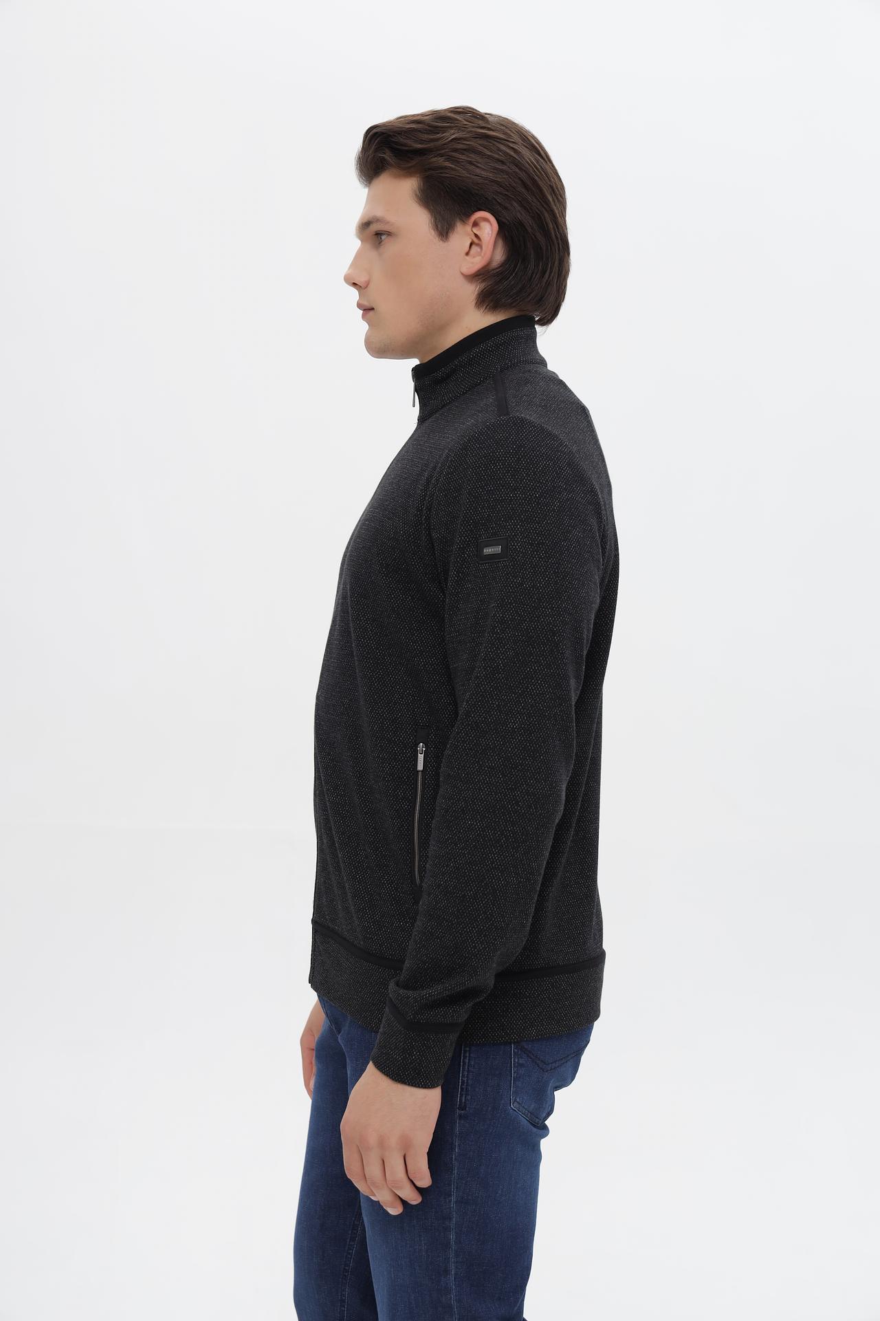 - Дизайн: Классический крой с воротником-стойкой и застежкой на молнию. Минималистичный дизайн и ненавязчивый узор делают кардиган универсальным, подходящим как для повседневных, так и для более официальных образов.
