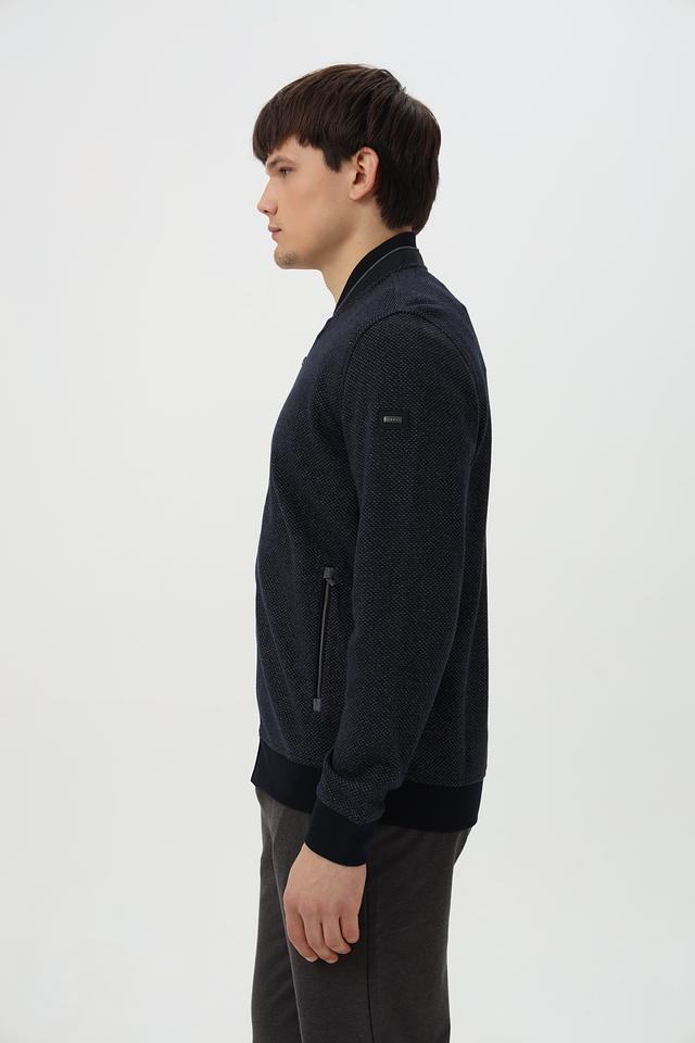 Мужской кардиган Bugatti тёмно-синего цвета с оригинальной текстурой. Изготовлен из хлопка с добавлением полиэстера и эластана для комфорта и износостойкости. Состав: хлопок 87%, полиэстер 10%, эластан 3%