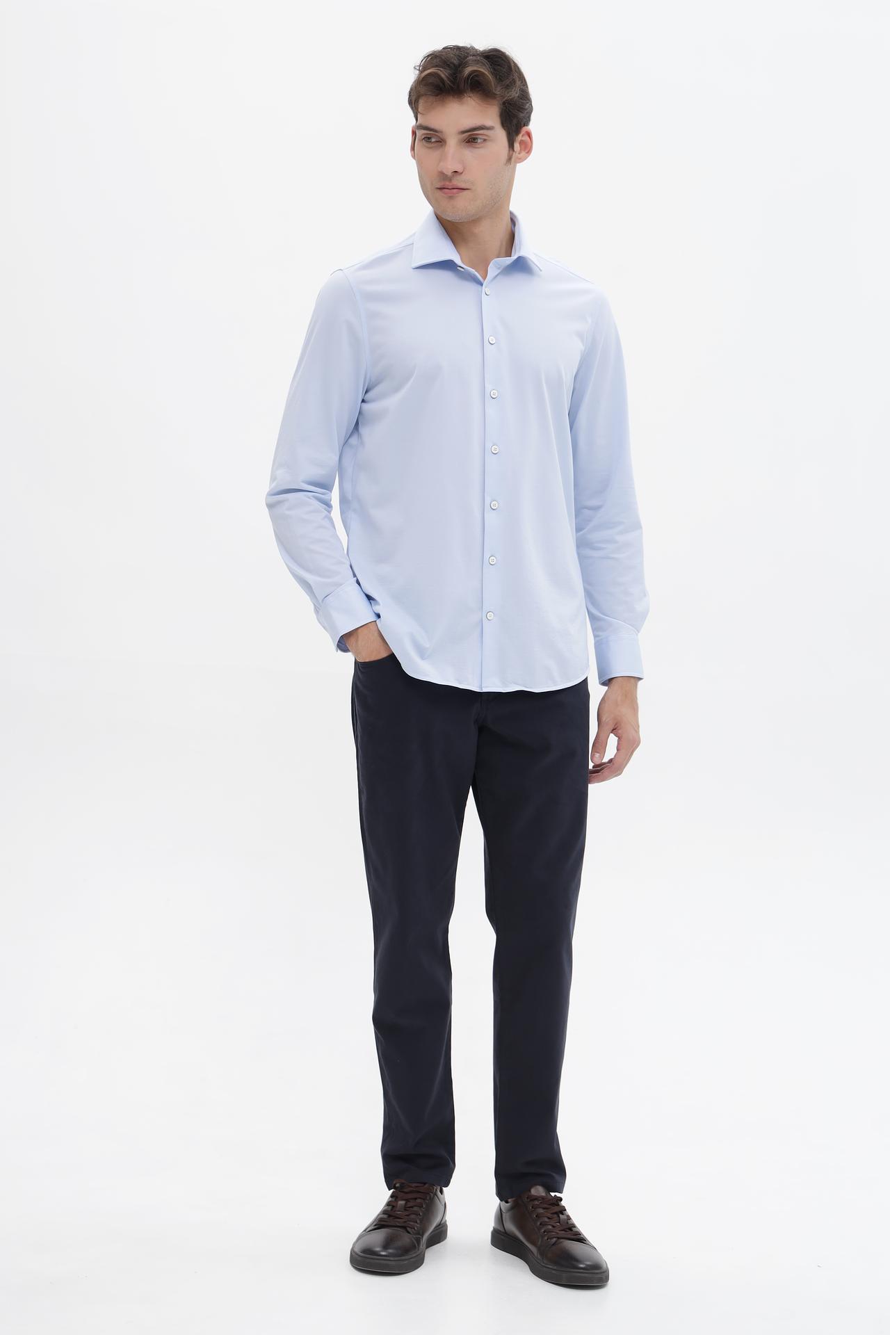 - Крой: Классический крой обеспечивает идеальную посадку по фигуре, не сковывая движений. Рубашка прекрасно смотрится как заправленной в брюки, так и навыпуск.