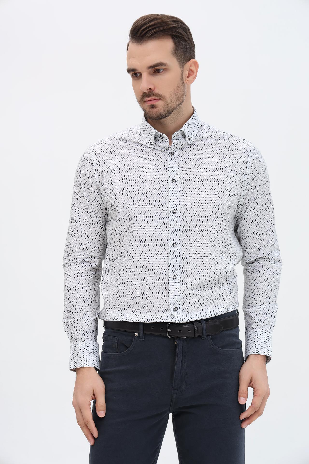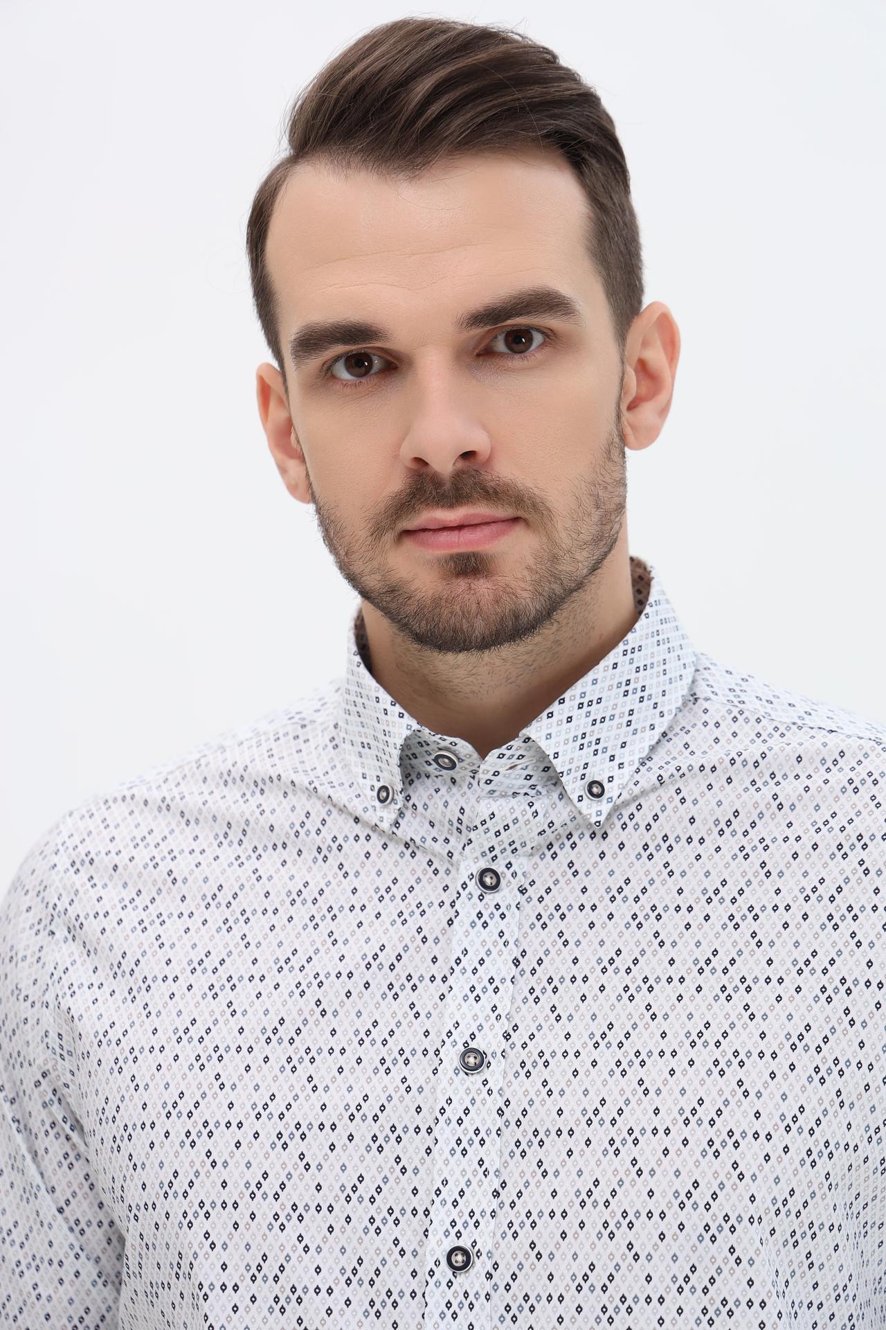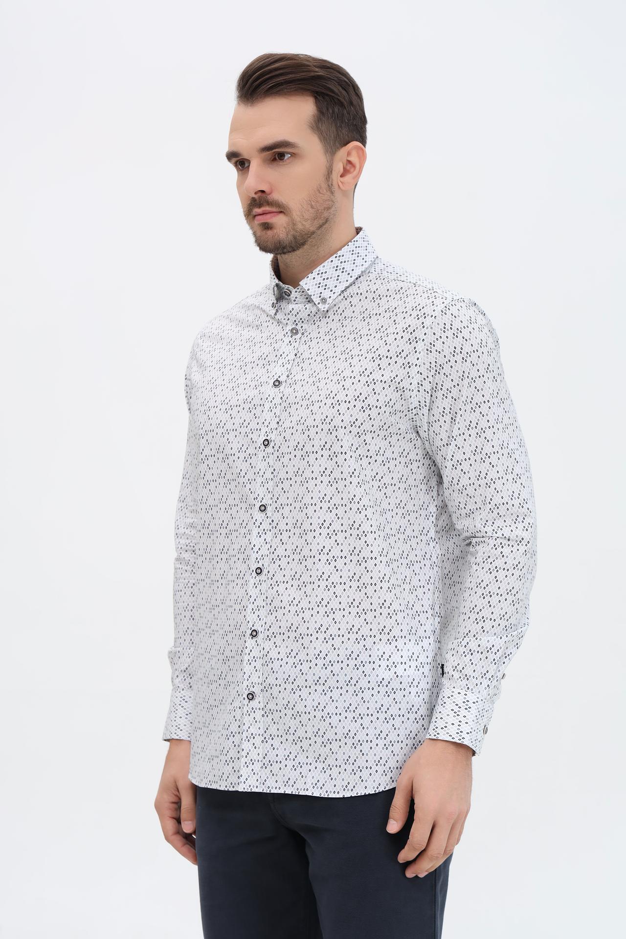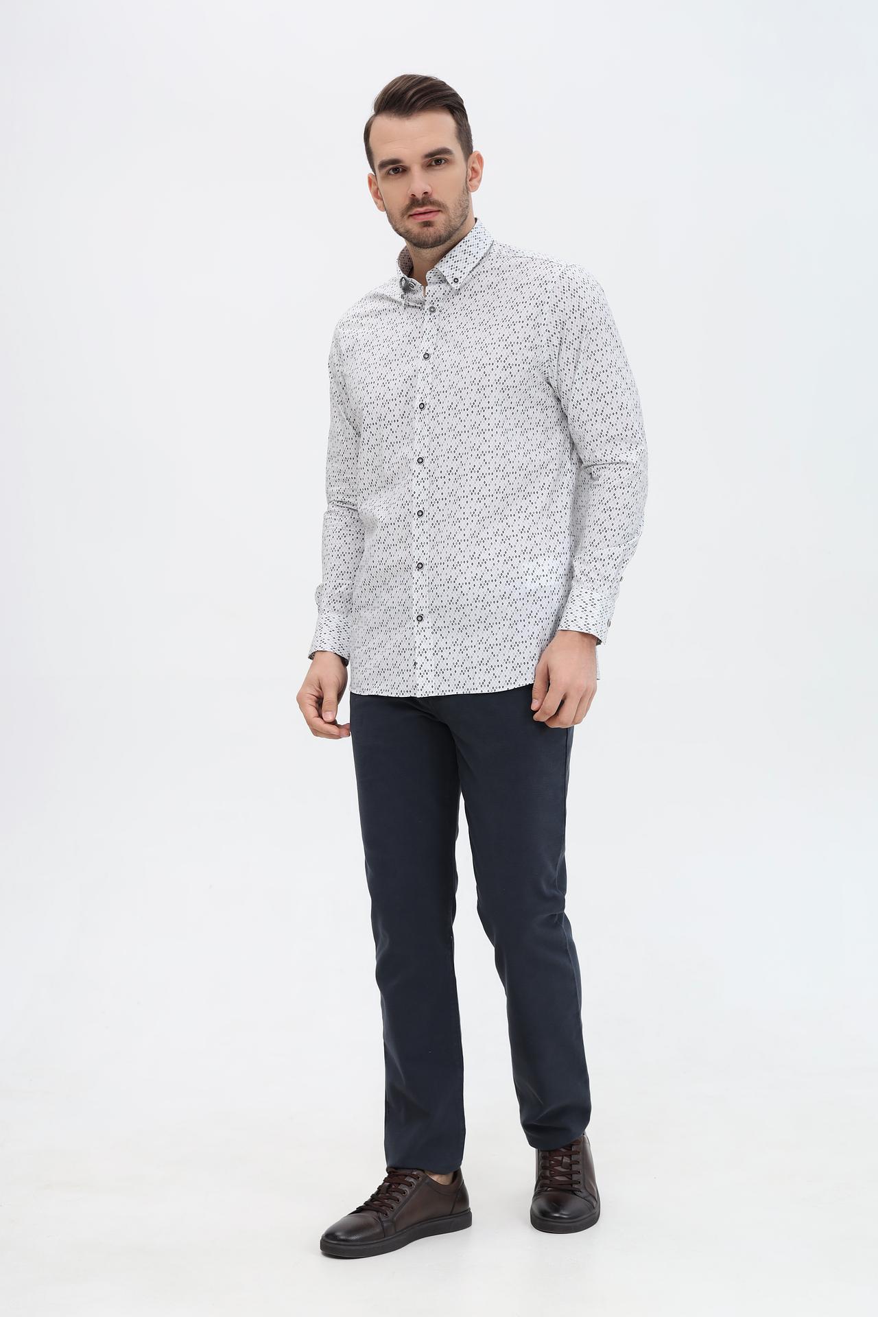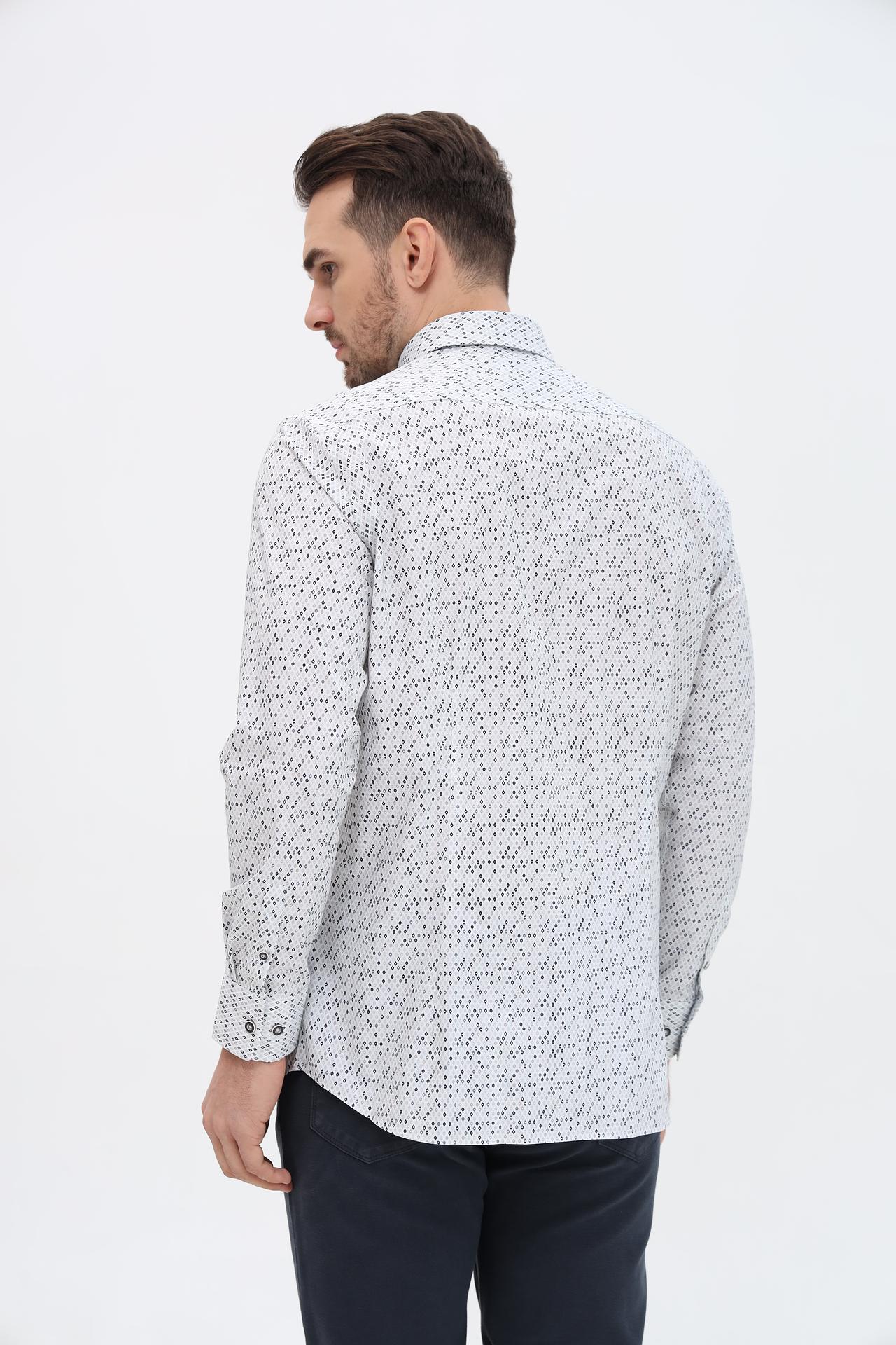 - Дизайн: Рубашка с длинным рукавом и классическим воротником. Неброский, но стильный принт делает эту модель универсальной для различных ситуаций.