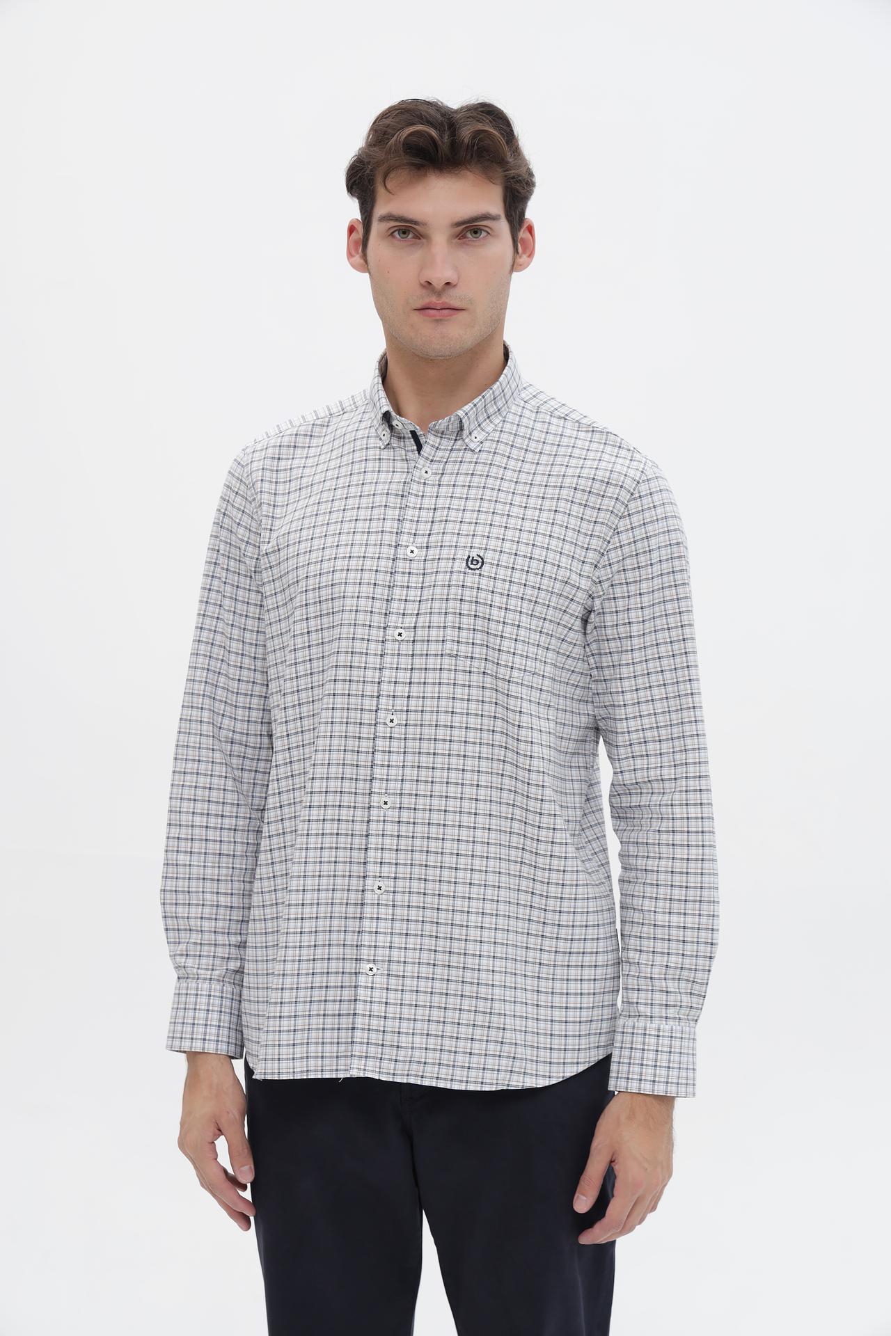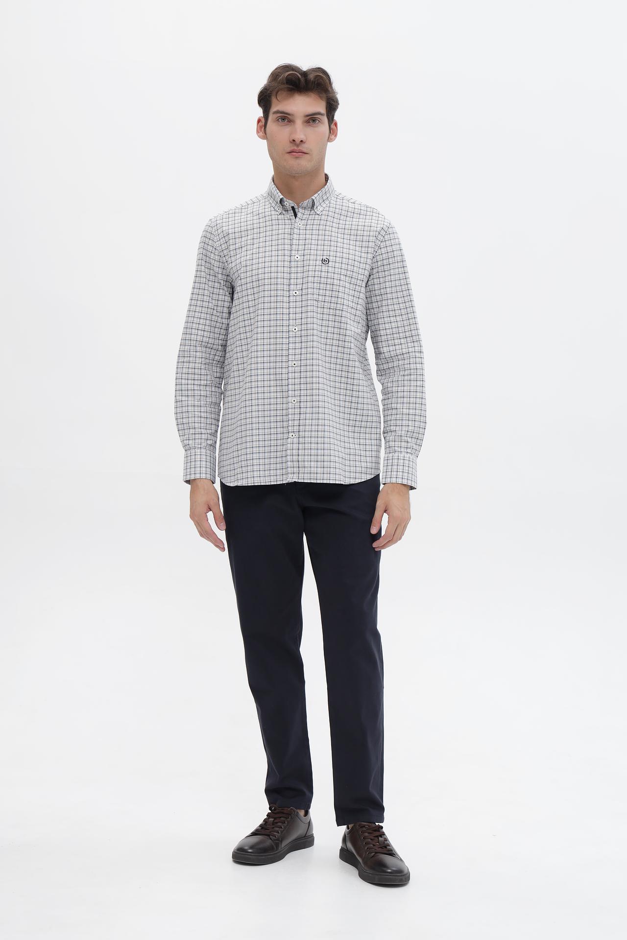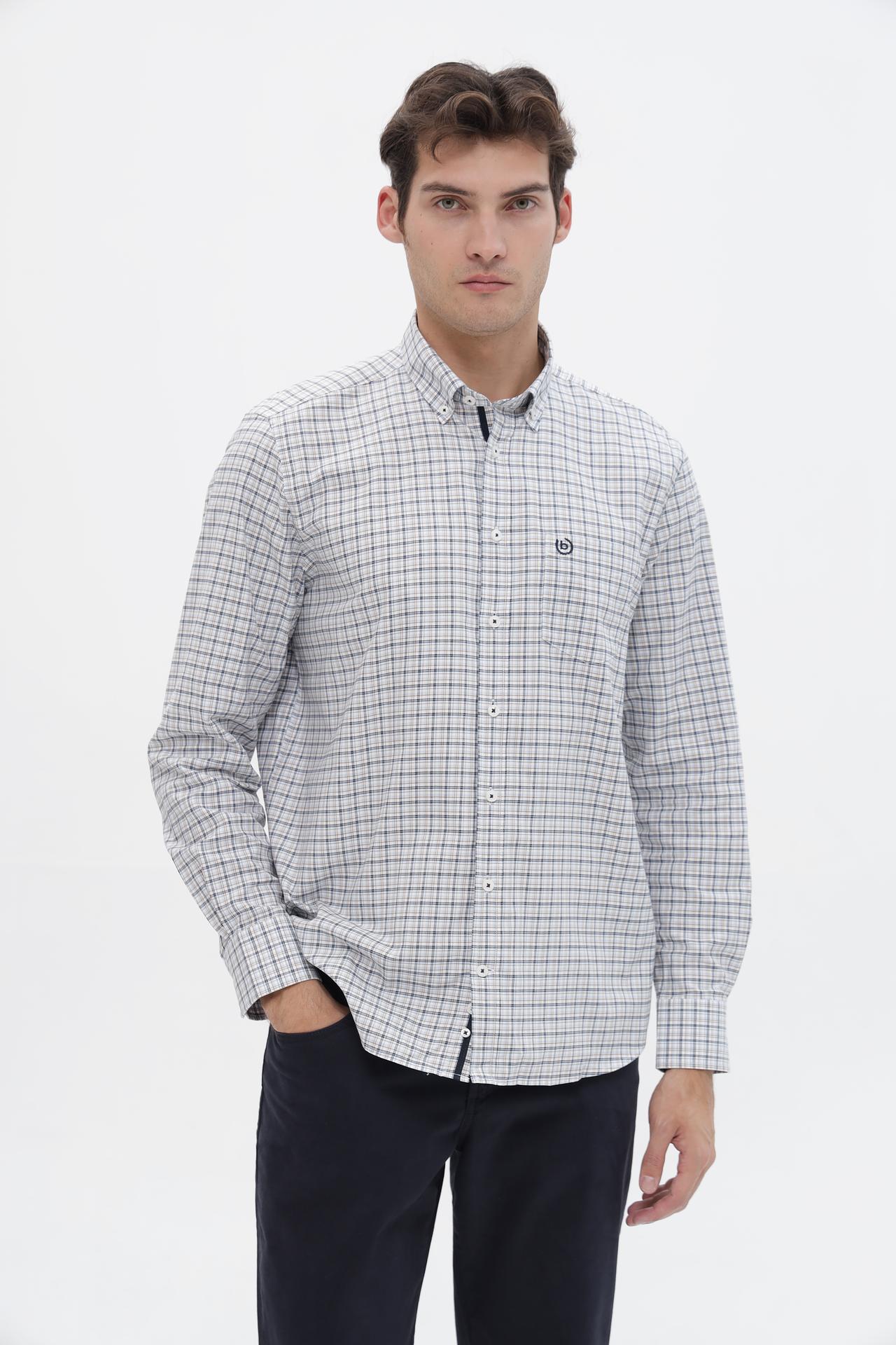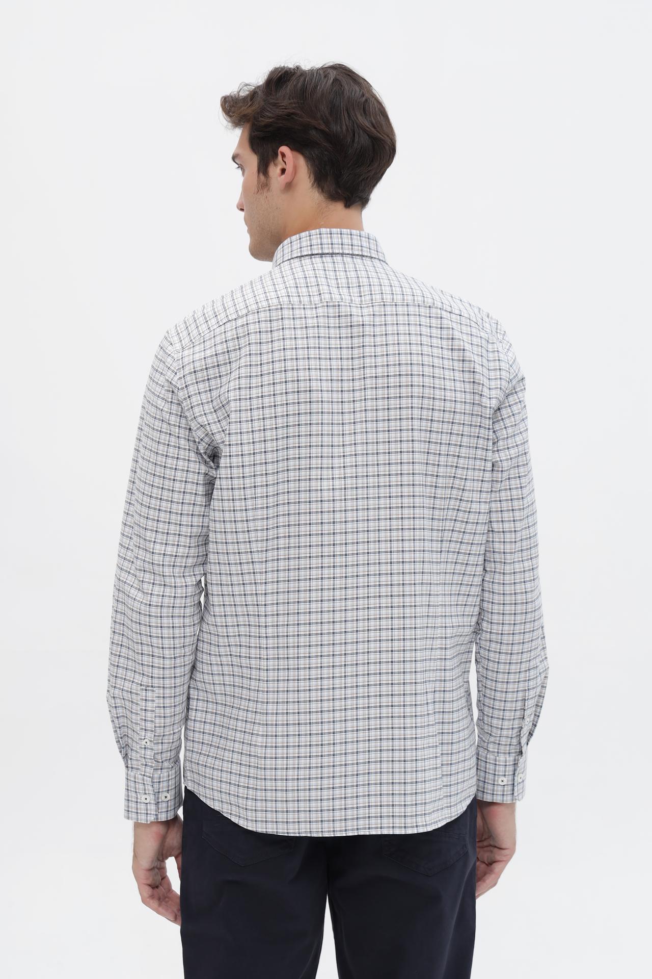 - Дизайн: Классический крой и узор в мелкую клетку, включающий оттенки серого, бежевого и синего, придают изделию сдержанный стиль. Рубашка отлично сочетается как с деловыми брюками, так и с джинсами.