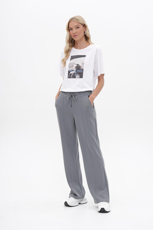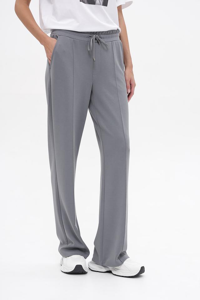 Брюки имеют свободный крой, обеспечивающий свободу движений, а пояс на кулиске позволяет регулировать посадку по фигуре. Классический серый цвет легко сочетается с различными элементами гардероба.