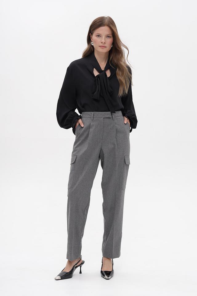 Дизайн брюк дополняют функциональные боковые карманы и аккуратные складки. Застежка на пуговицу и молнию обеспечивает надежную фиксацию. Данная модель идеально подойдет для создания как деловых, так и повседневных образов. Состав: 65% полиэстер, 32% вискоза, 3% эластан.
