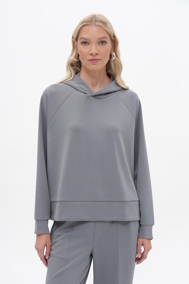 Серый пуловер Bugatti с капюшоном – это стильная и комфортная модель на каждый день. Изготовлен из мягкого модала с добавлением полиэстера и эластана, обеспечивающих удобную посадку и долговечность изделия. Состав: модал 65%, полиэстер 30%, эластан 5%
