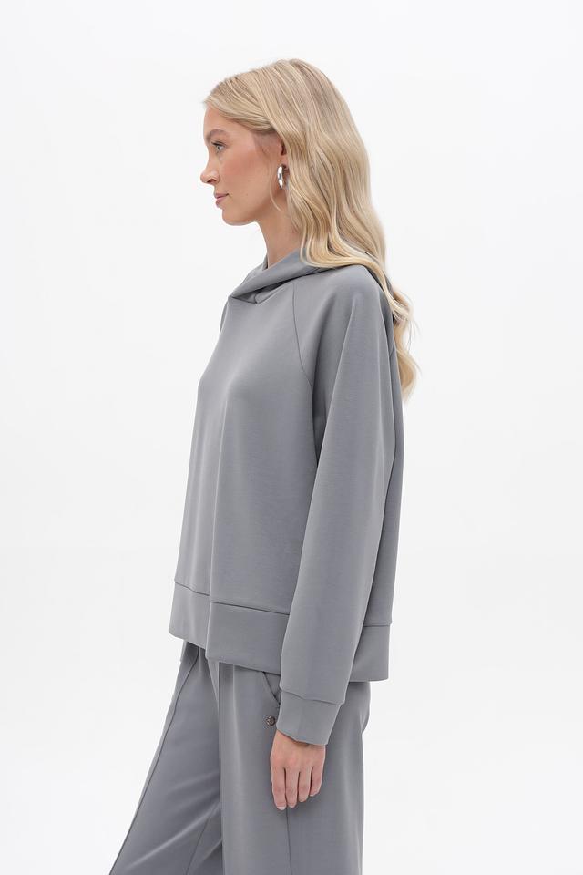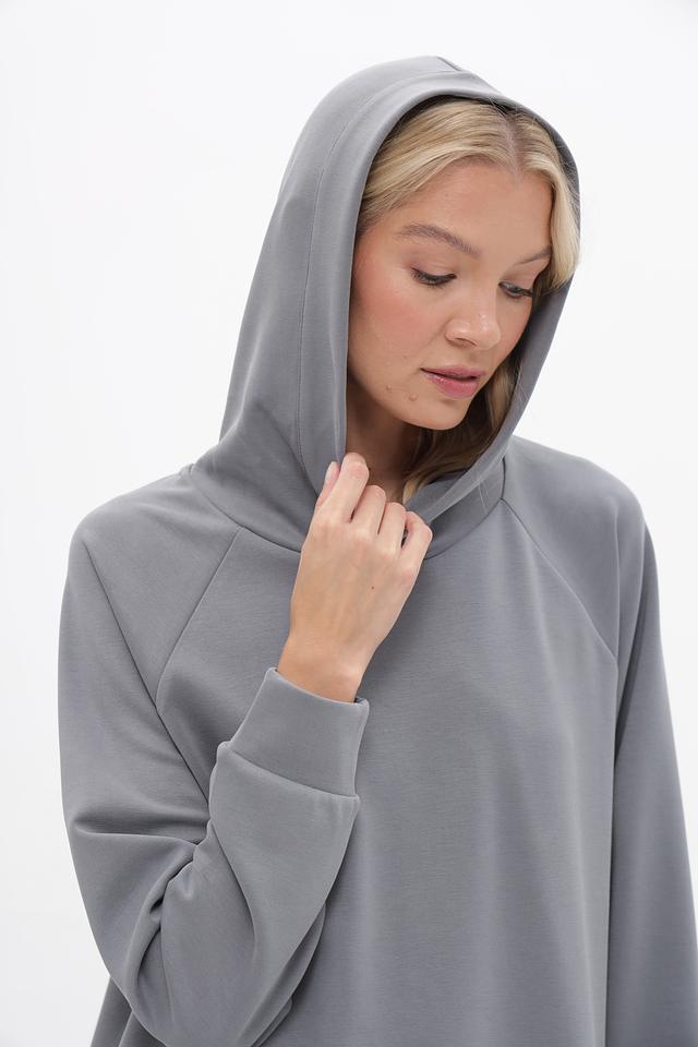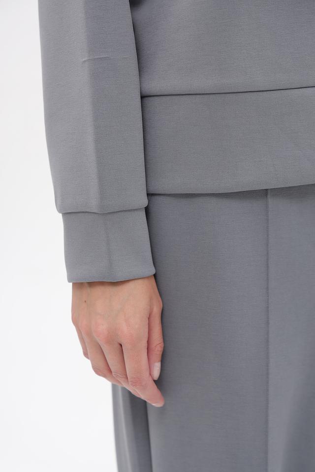 Состав ткани: 65% модал, 30% полиэстер, 5% эластан. Модал придает изделию мягкость и приятные тактильные ощущения, полиэстер обеспечивает износостойкость, а эластан – эластичность и хорошую посадку по фигуре. Пуловер прост в уходе и быстро сохнет.