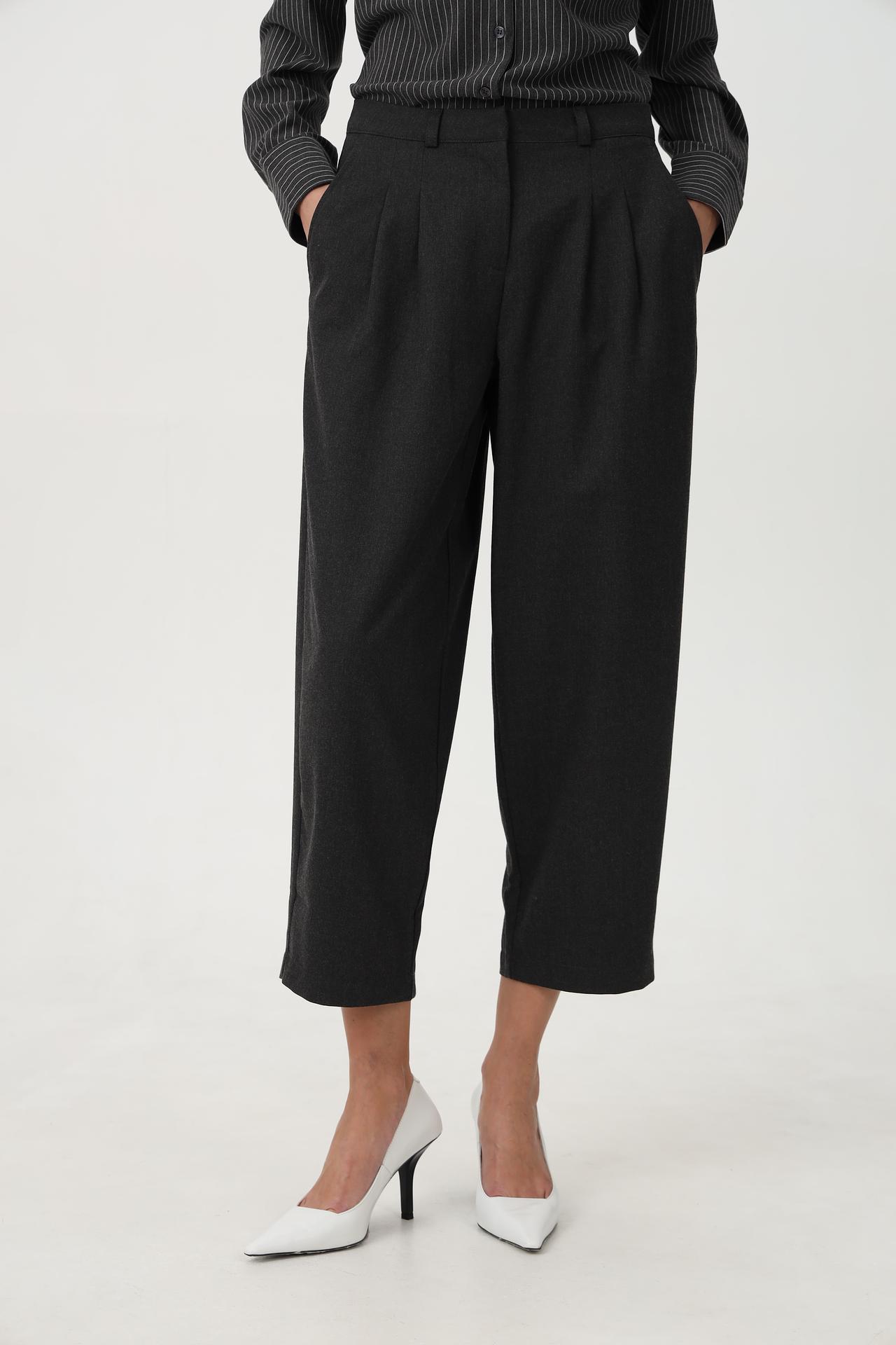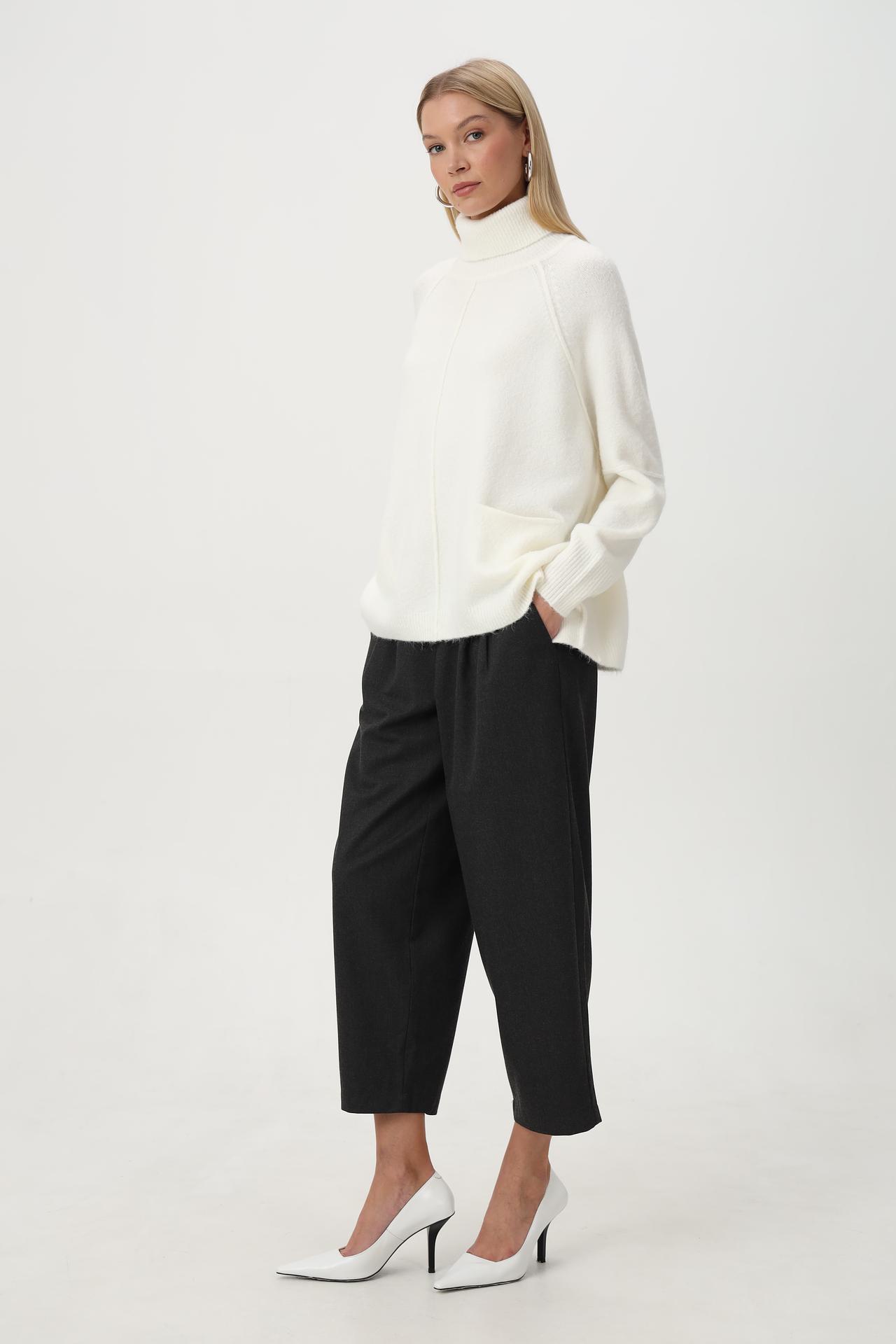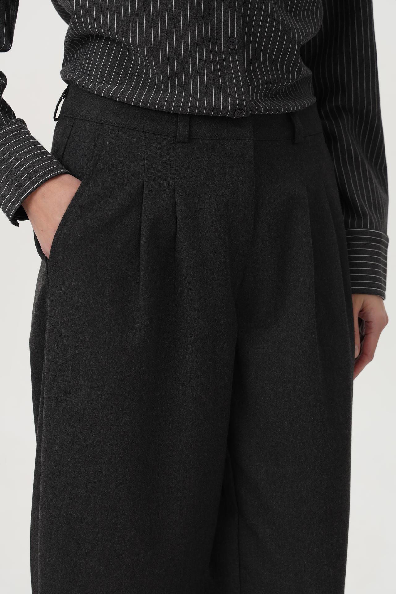 - Дизайн: Классический крой с завышенной талией и защипами, создающий элегантный силуэт. Брюки имеют удобные боковые карманы и пояс со шлевками для ремня.