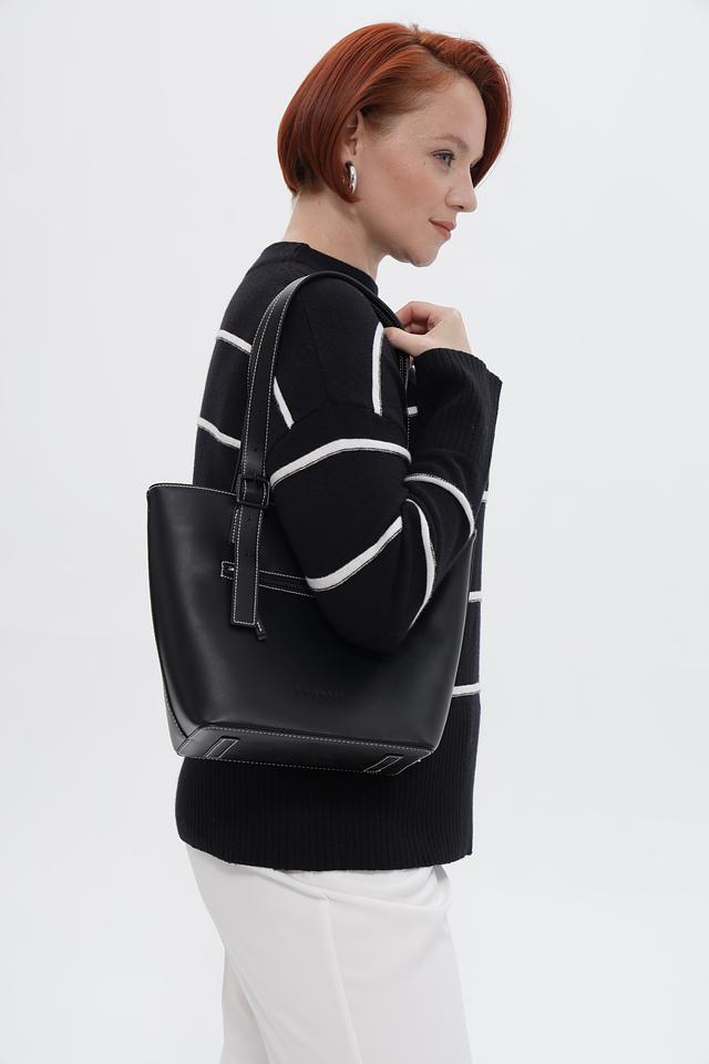 Сумка имеет лаконичный и стильный дизайн, который легко сочетается с различными образами. Удобные ручки обеспечивают комфортное ношение в руке, а прочный материал гарантирует долговечность изделия.