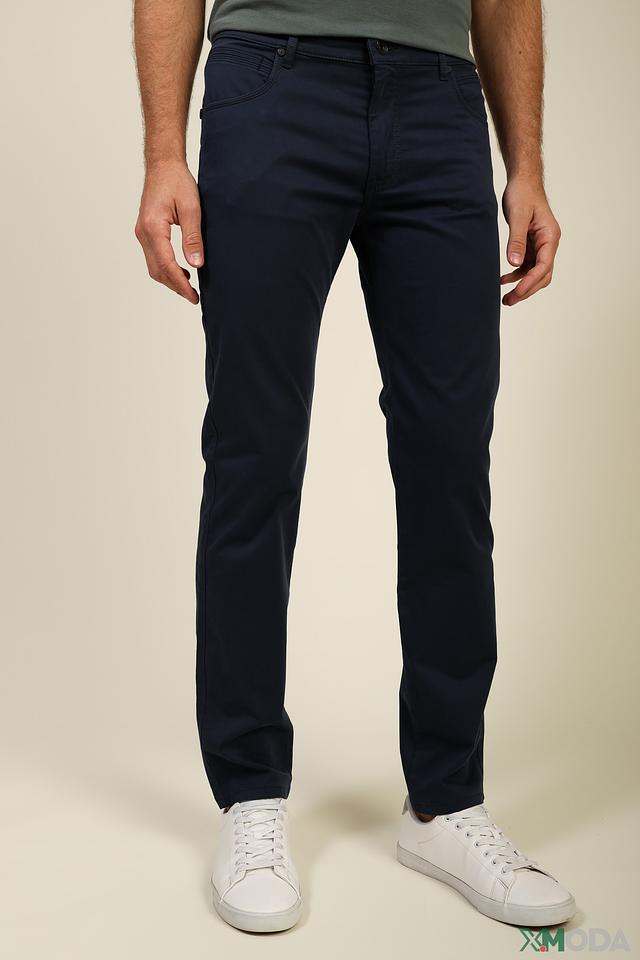 Брюки выполнены из высококачественного материала, состоящего из 89% хлопка, 7% эластомультиэстера и 4% эластана. Такое сочетание обеспечивает мягкость, эластичность и долговечность изделия. Цвет брюк – насыщенный темно-синий, что делает их универсальными и подходящими для различных образов.