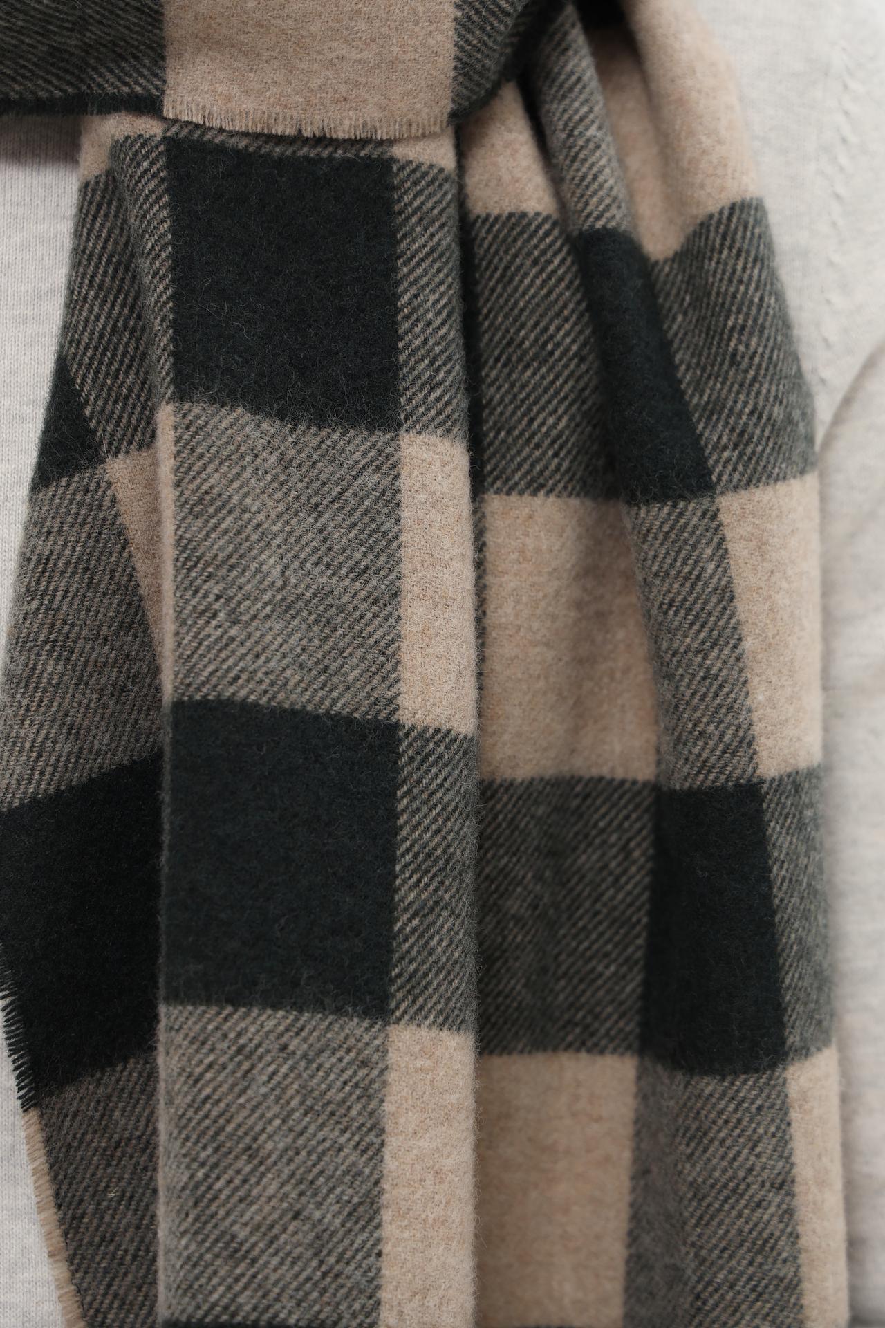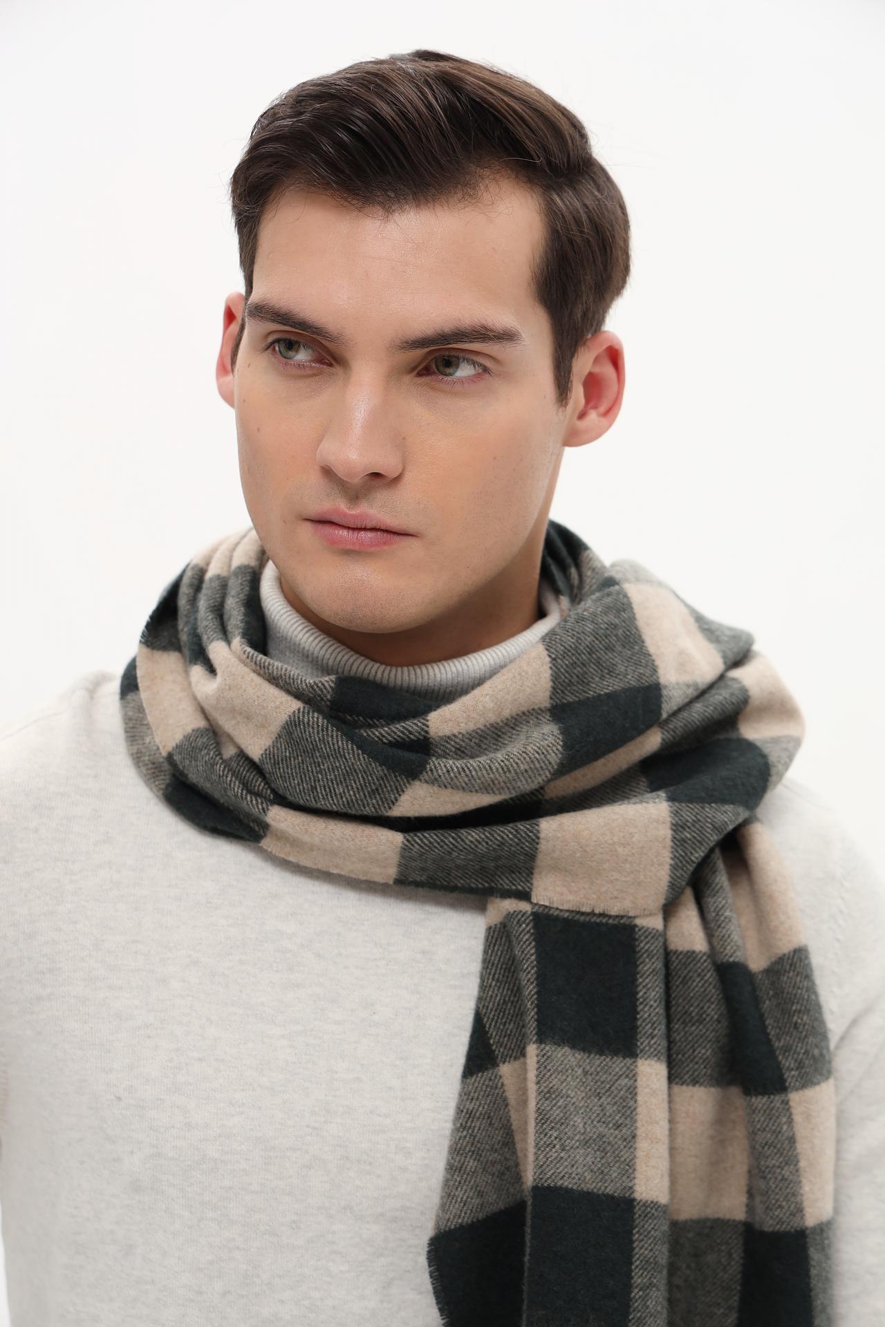 - Дизайн в клетку: Классический узор «шотландка» в контрастных оттенках зеленого и бежевого придает шарфу универсальность. Он легко сочетается с различными цветами верхней одежды, делая ваш образ стильным и завершенным.